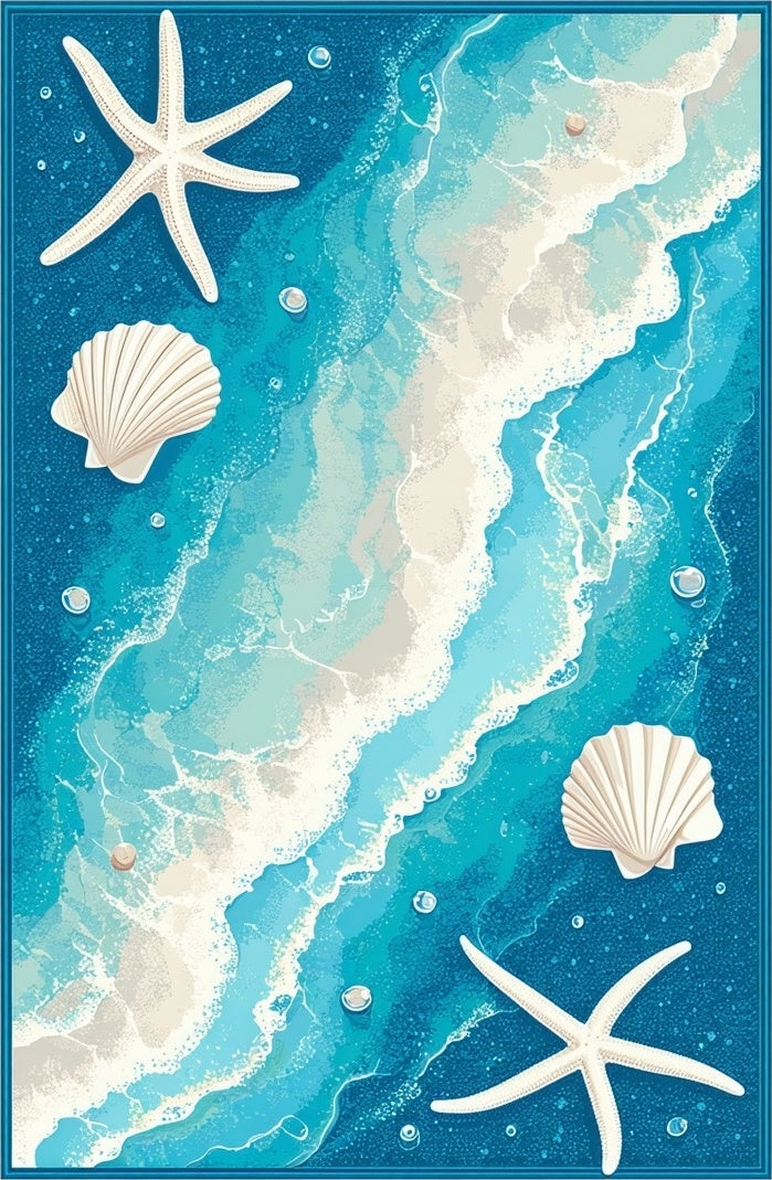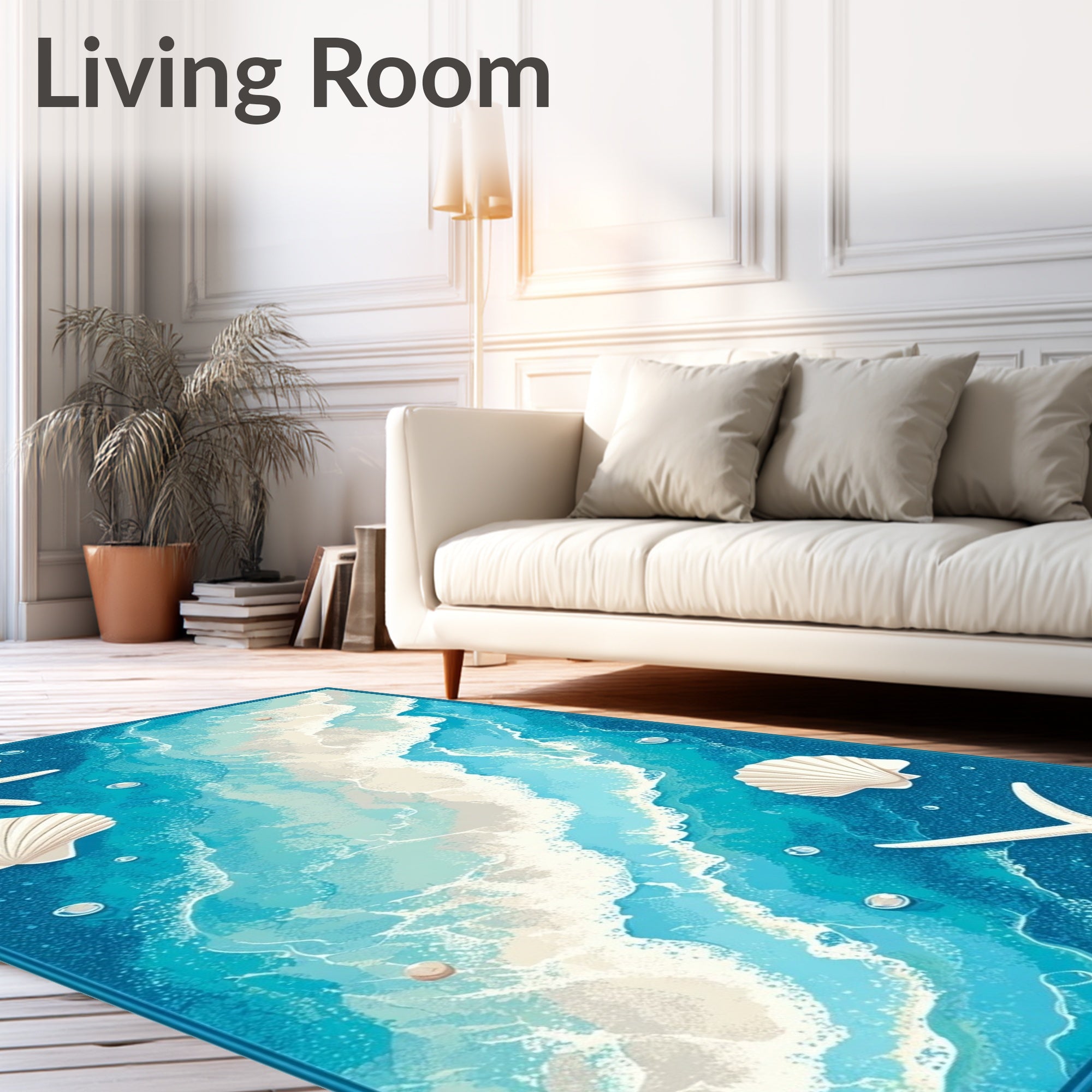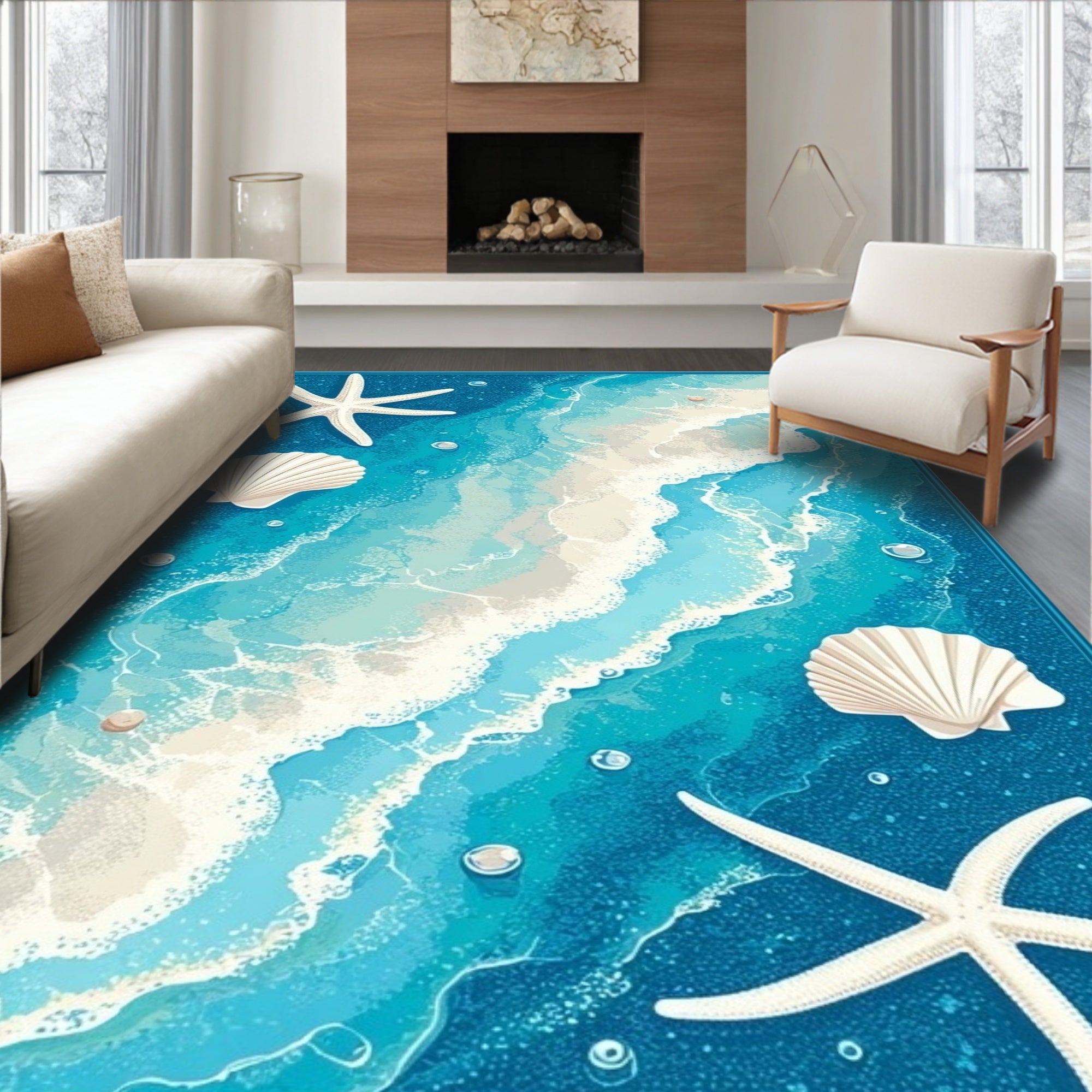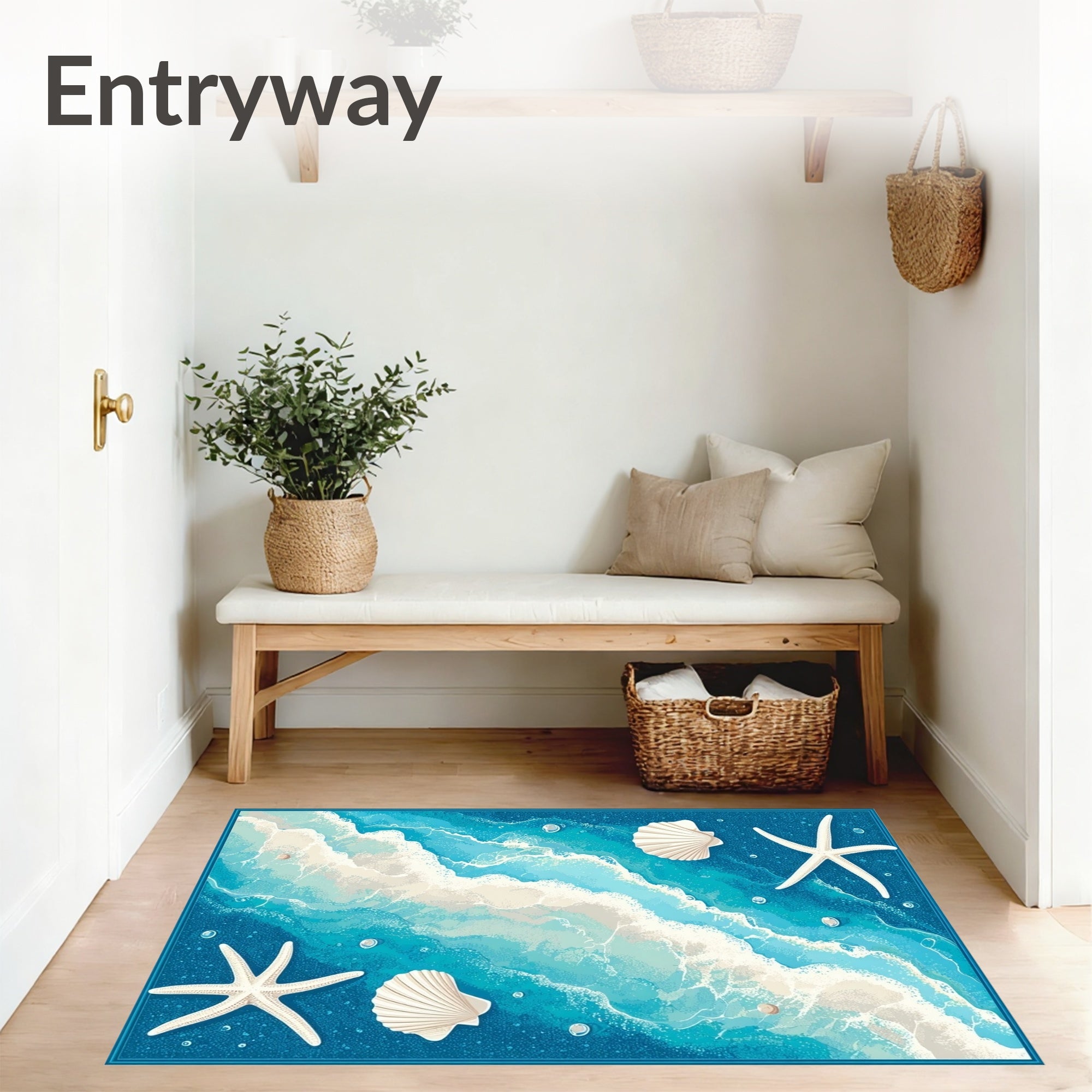Flatwoven High Traffic Area Rug, Sea Shell and Starfish with Design, Non Slip, Stain Resistant, Washable Area Rugs for Living Room, Bedroom (Blue) Overview: