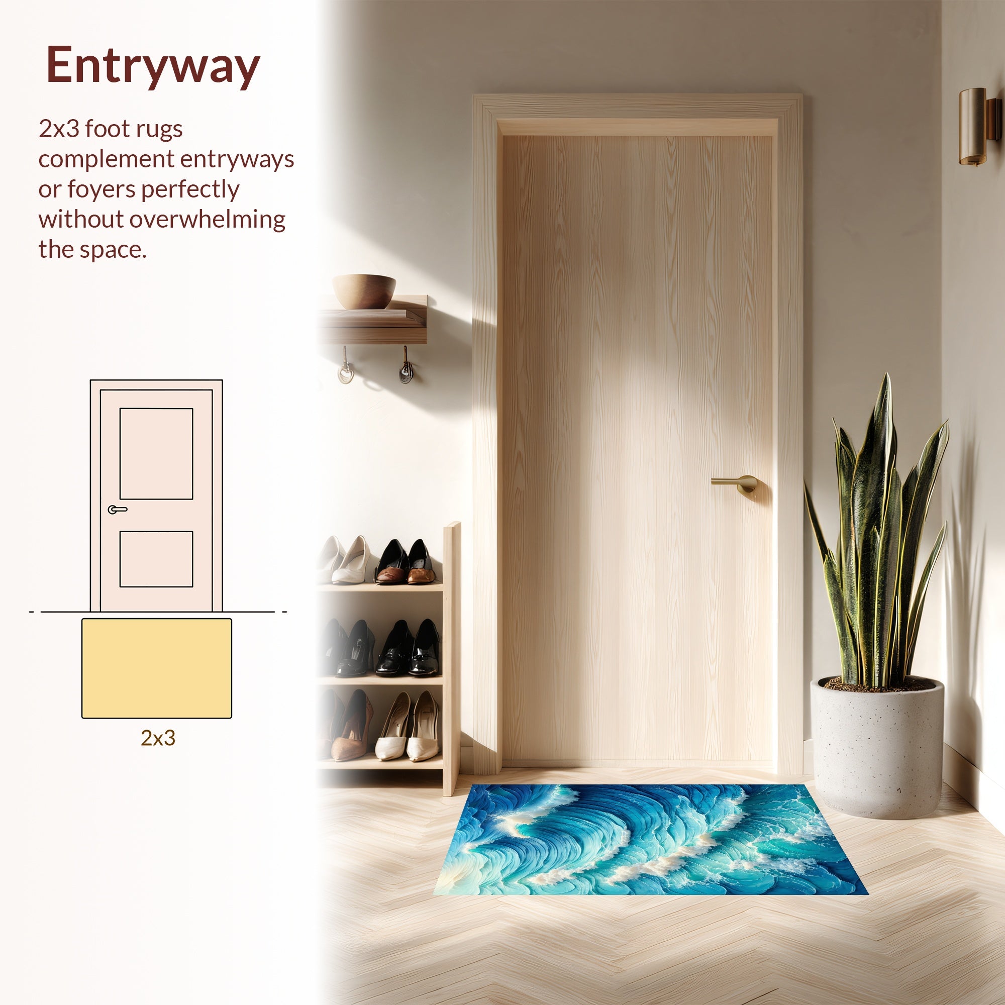 Flatwoven High Traffic Area Rug, Sea Wave Pastel for Relaxation Spaces, Non Slip, Stain Resistant, Washable Area Rugs for Living Room, Bedroom (Blue) Overview: