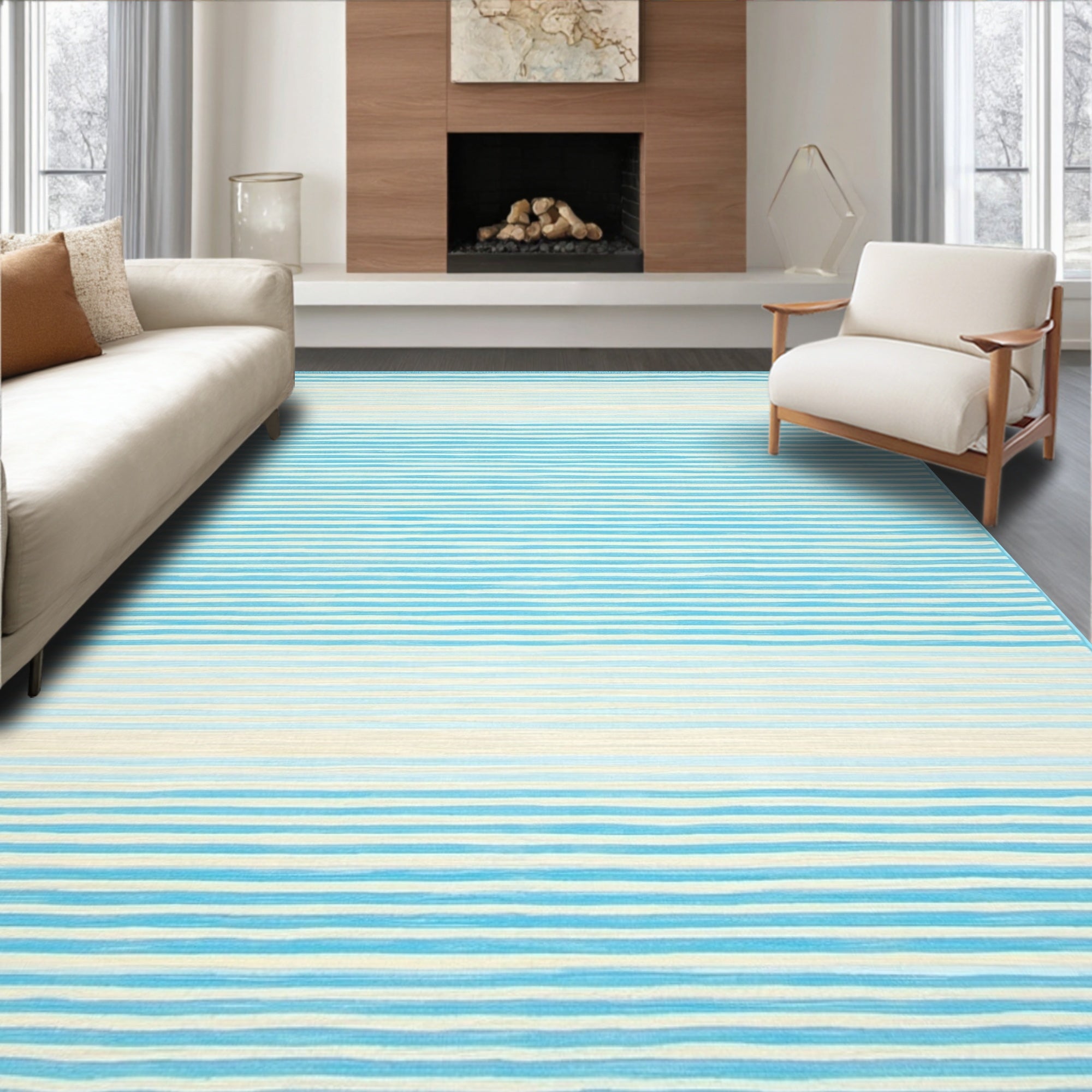Flatwoven High Traffic Area Rug, Seaside Breeze Woven Stripe Runner, Non Slip, Stain Resistant, Washable Area Rugs for Living Room, Bedroom (Blue) Overview: