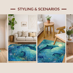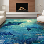 Ultra Soft Area Rug, Non Slip, Stain Resistant, Washable Area Rugs for Living Room, Bedroom, Seaside Creature Inspired with Oceanic Dolphin, Octopus, and Fish School(Blue) Overview: