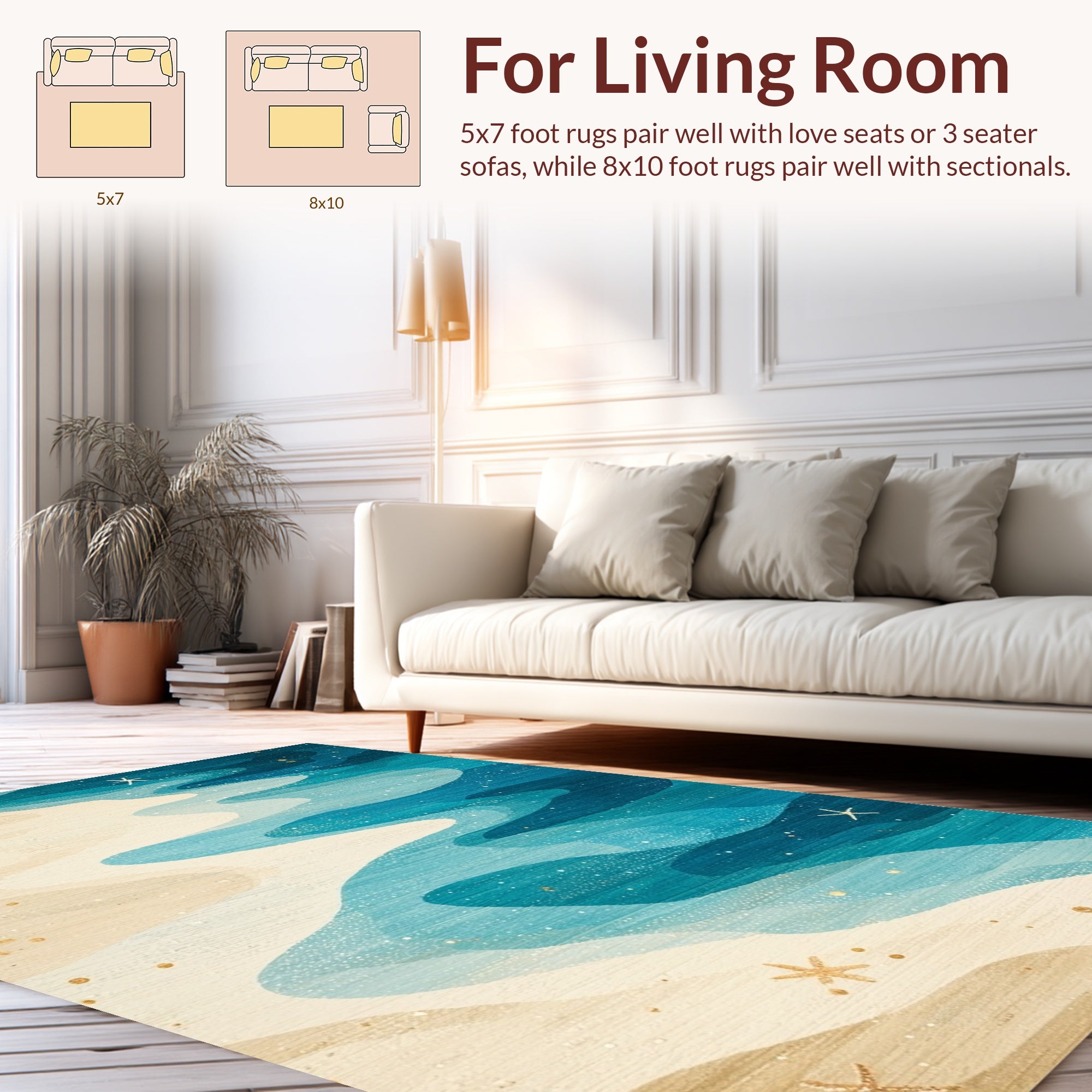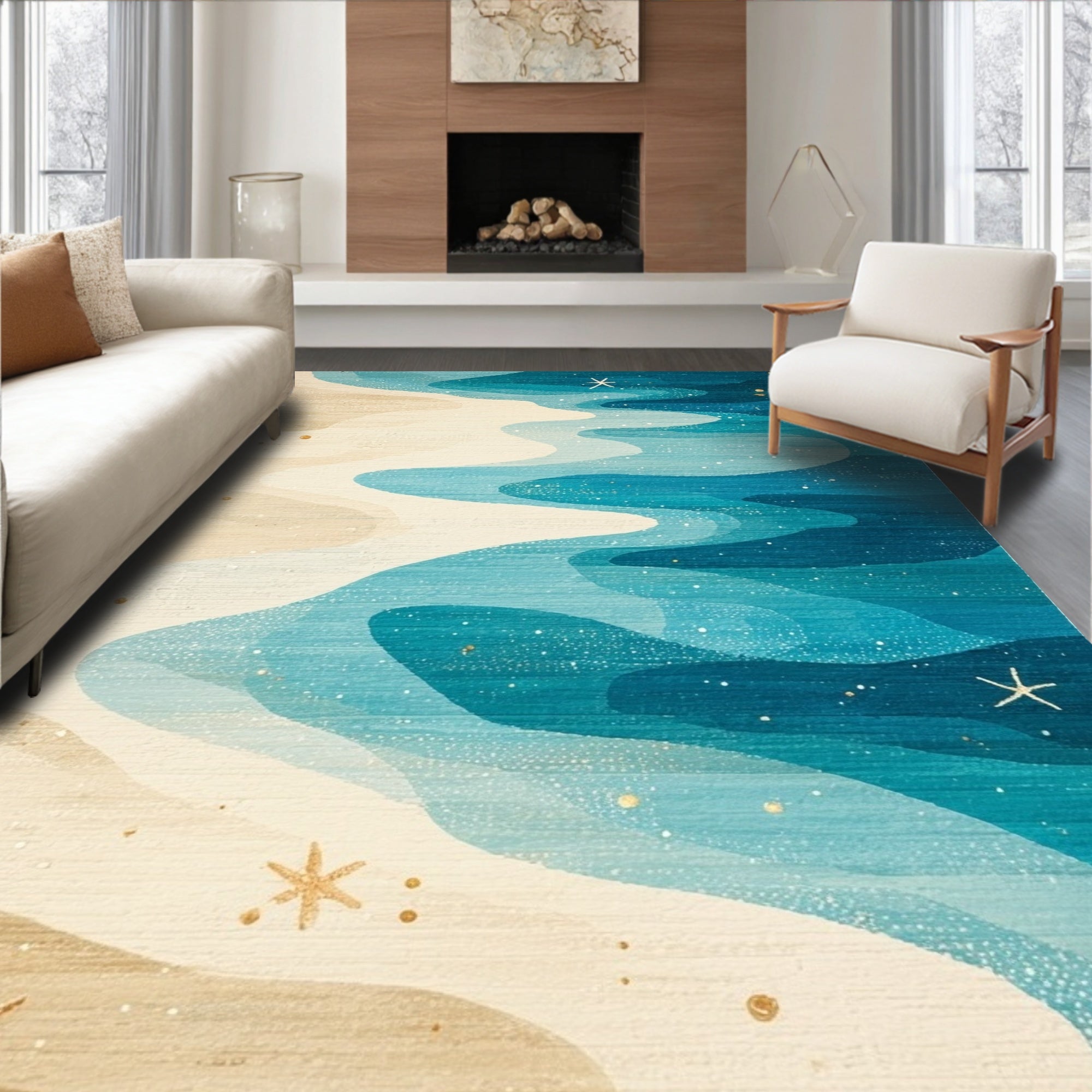 Flatwoven High Traffic Area Rug, Seaside Escape With Elegant Maritime Charm, Non Slip, Stain Resistant, Washable Area Rugs for Living Room, Bedroom (Blue) Overview: