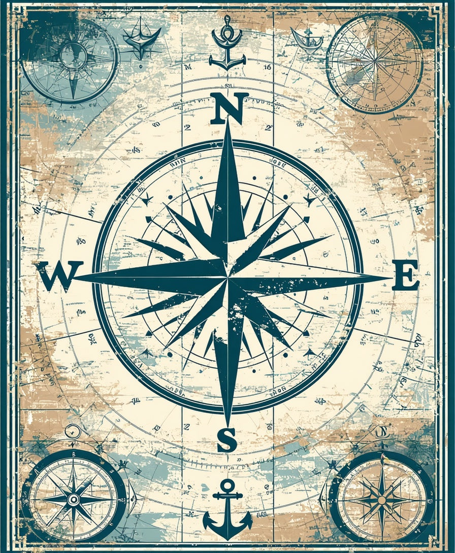 Seaside Retreat Runner With Vintage Mariner Compass Design(Blue)