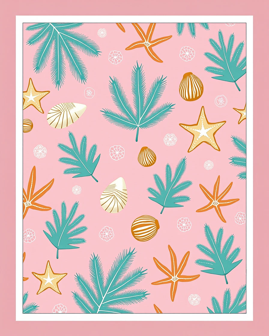 Seaside Shell Reef with Festive Pine Motifs and Starfish Accents(Pink)