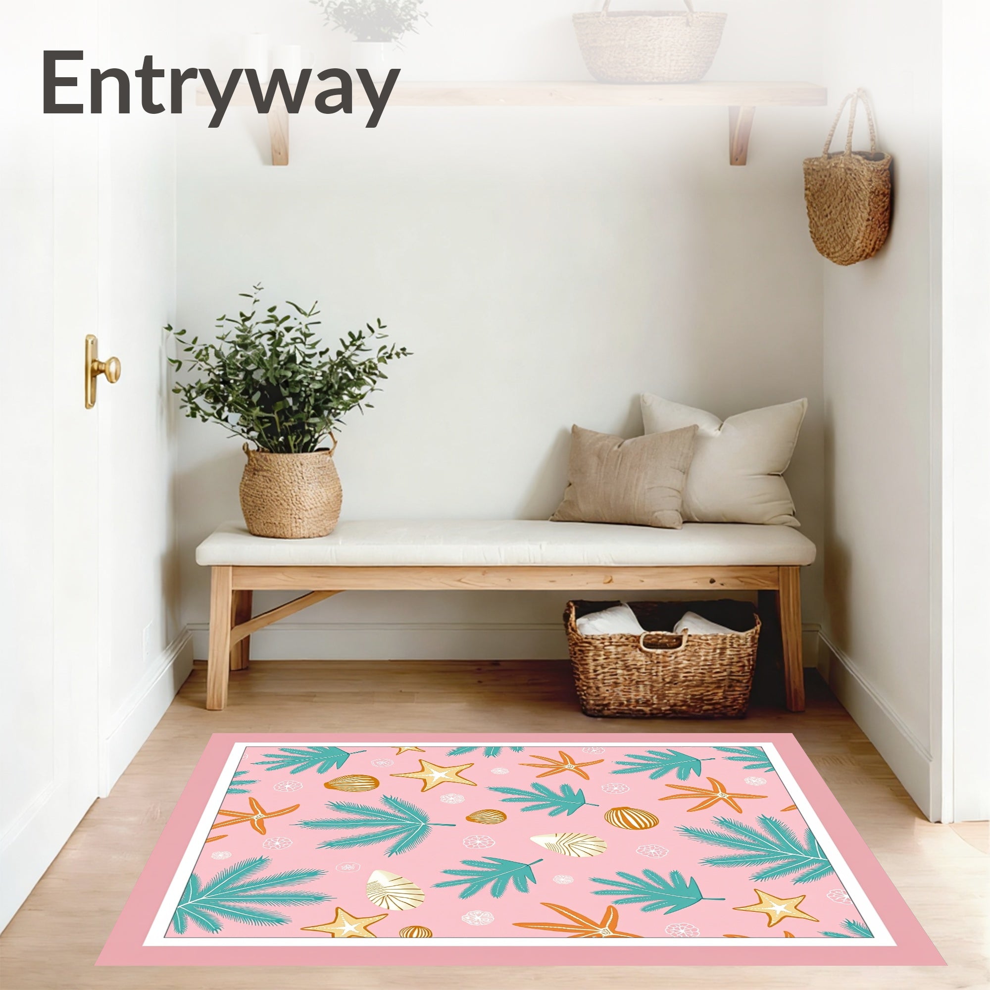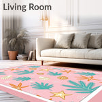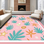 Ultra Soft Area Rug, Non Slip, Stain Resistant, Washable Area Rugs for Living Room, Bedroom, Seaside Shell Reef with Festive Pine Motifs and Starfish Accents(Pink) Overview: