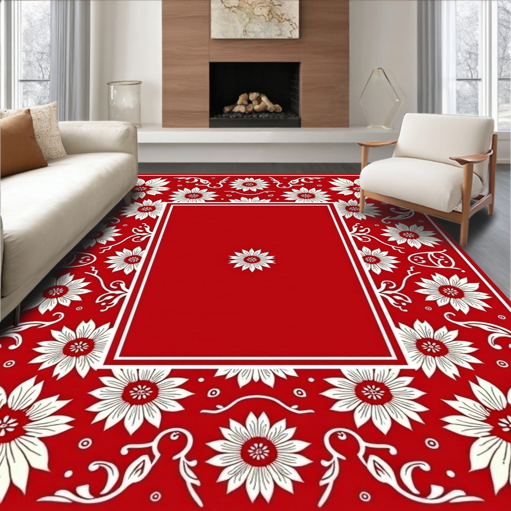 Ultra Soft Area Rug, Non Slip, Stain Resistant, Washable Area Rugs for Living Room, Bedroom, Seasonal Deluxe Ultrasoft Velvet Decorative Flooring(Red) Overview: