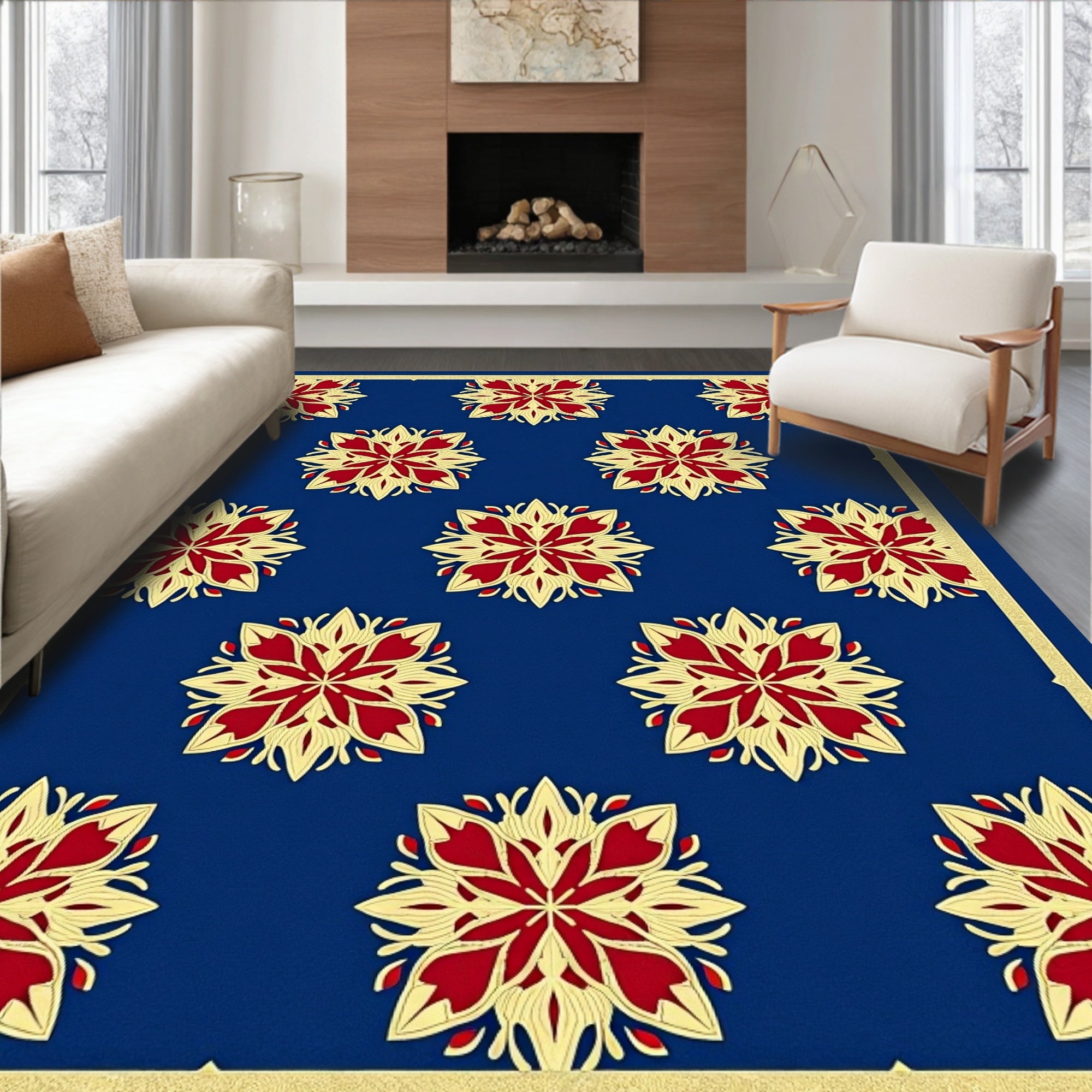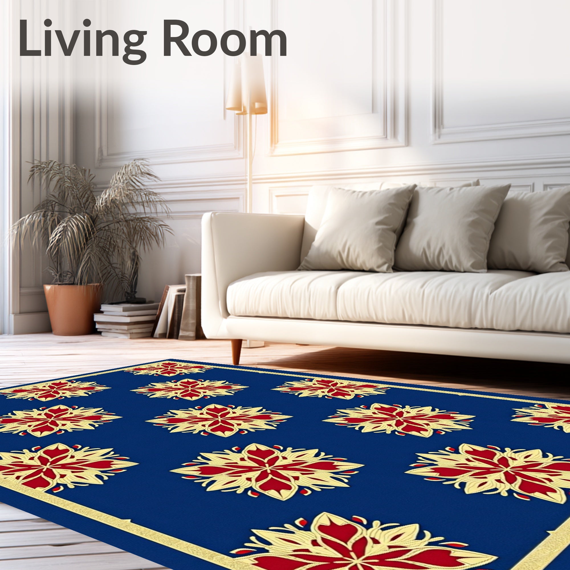 Ultra Soft Area Rug, Non Slip, Stain Resistant, Washable Area Rugs for Living Room, Bedroom, Seasonal Medallion Design Area with Baroque(Blue) Overview: