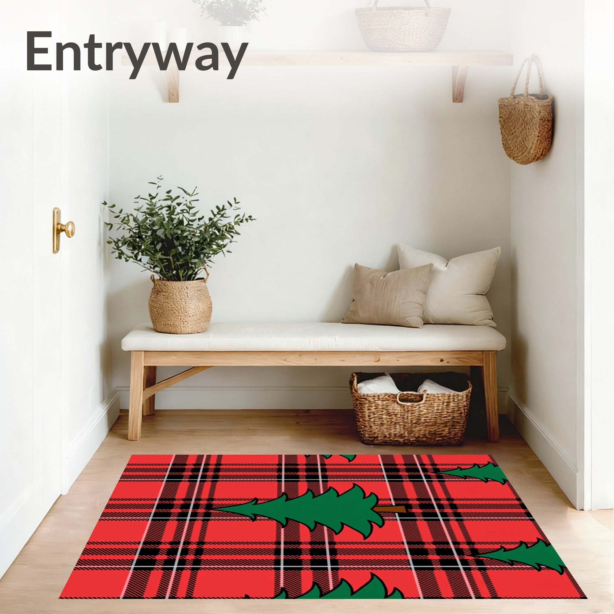 Ultra Soft Area Rug, Non Slip, Stain Resistant, Washable Area Rugs for Living Room, Bedroom, Seasonal Spruce Buffalo Check Accent Tapestry(Red) Overview: