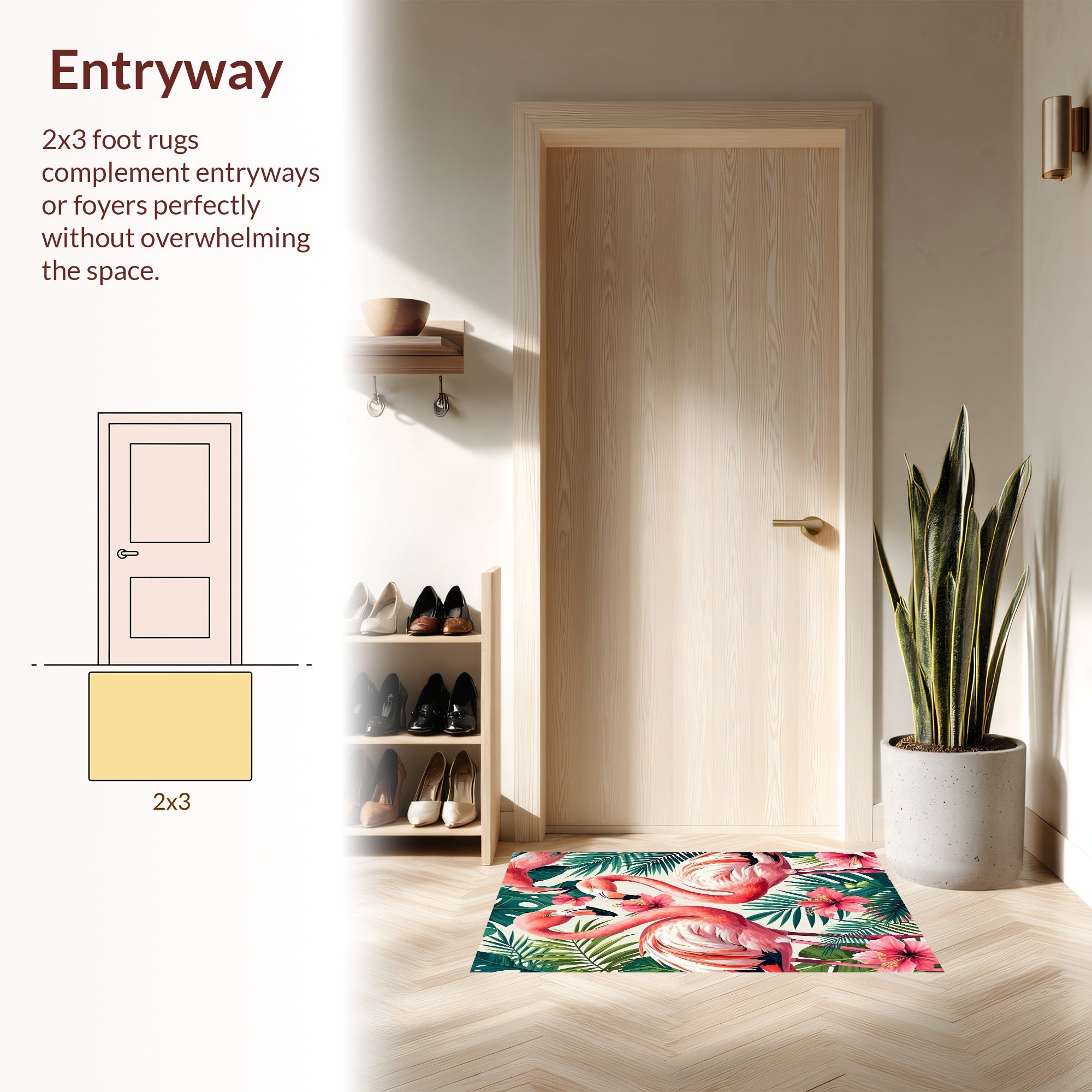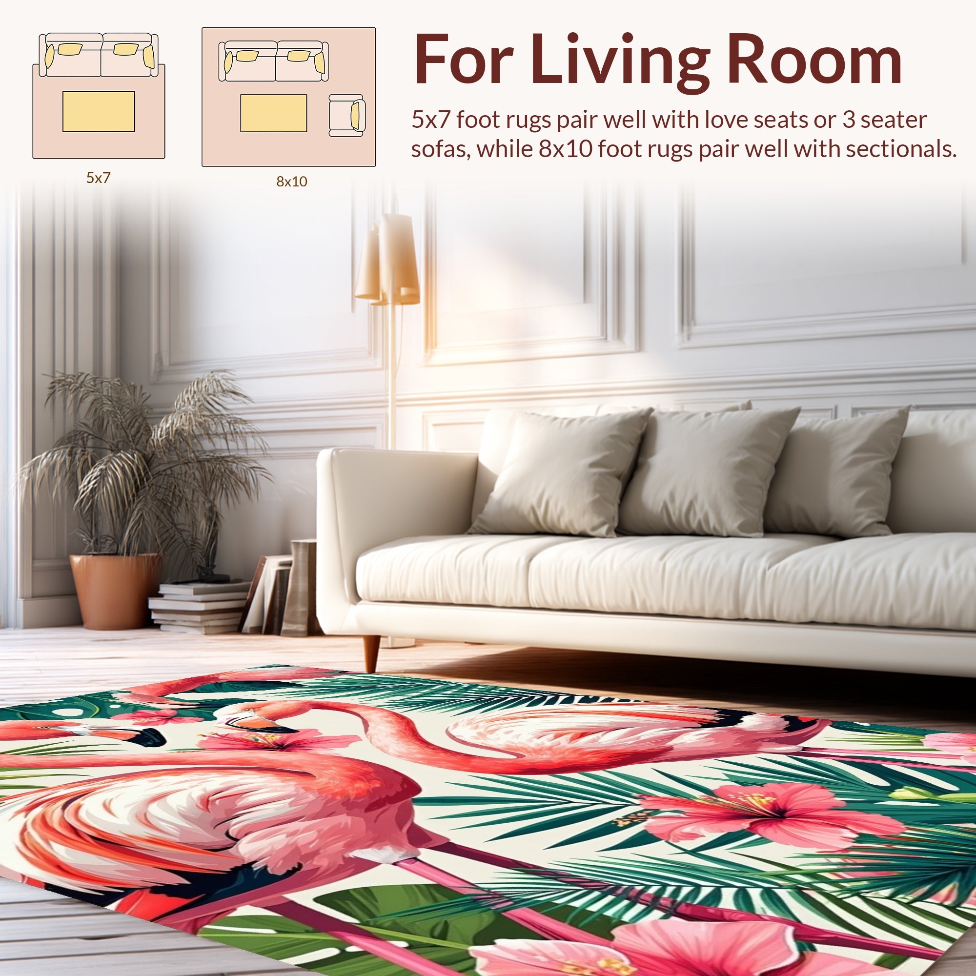 Flatwoven High Traffic Area Rug, Seasonal Summer Botanical Visuals, Non Slip, Stain Resistant, Washable Area Rugs for Living Room, Bedroom (Pink) Overview: