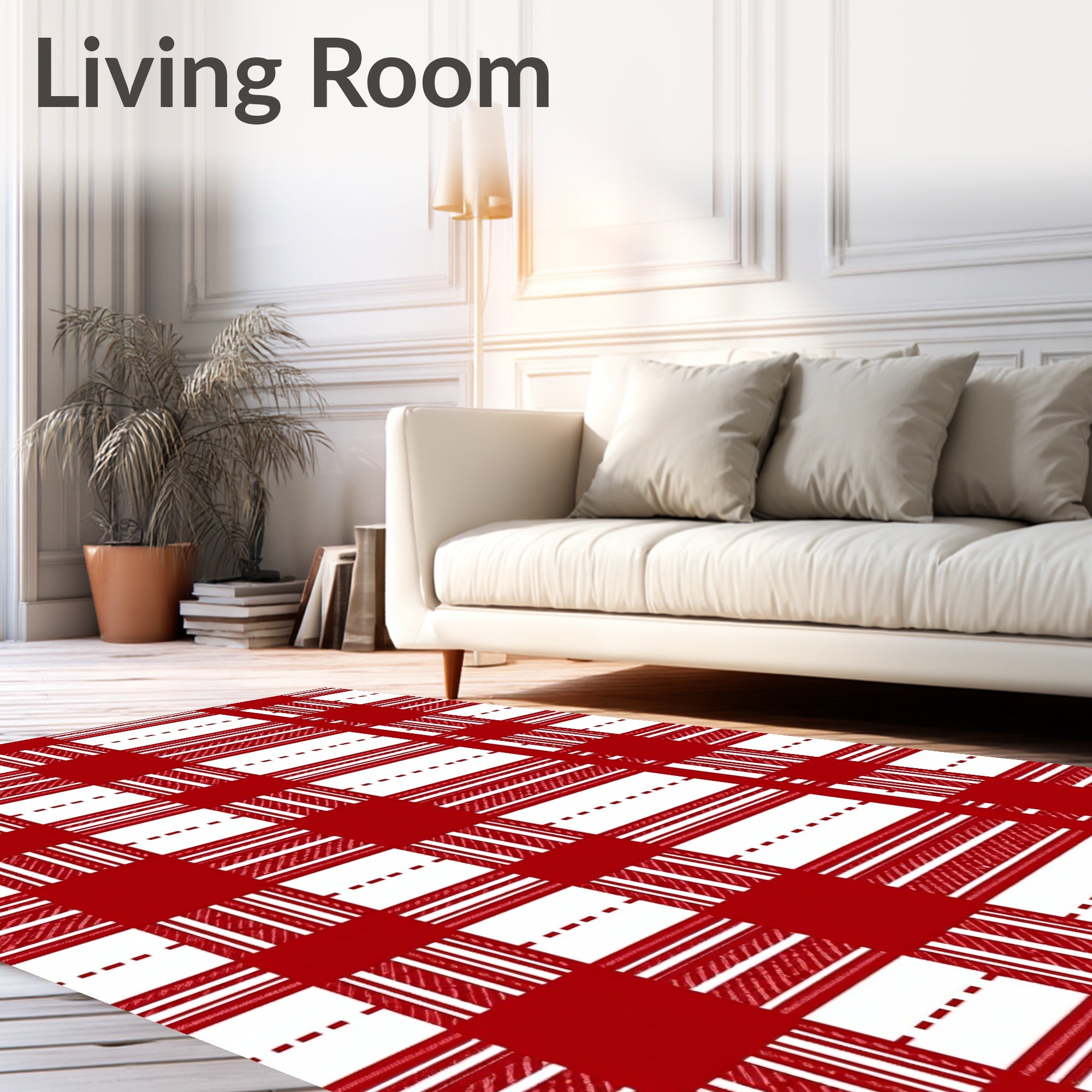 Ultra Soft Area Rug, Non Slip, Stain Resistant, Washable Area Rugs for Living Room, Bedroom, Seasonal Tartan Inspired Grid with Festive Color Coordination(Red) Overview:
