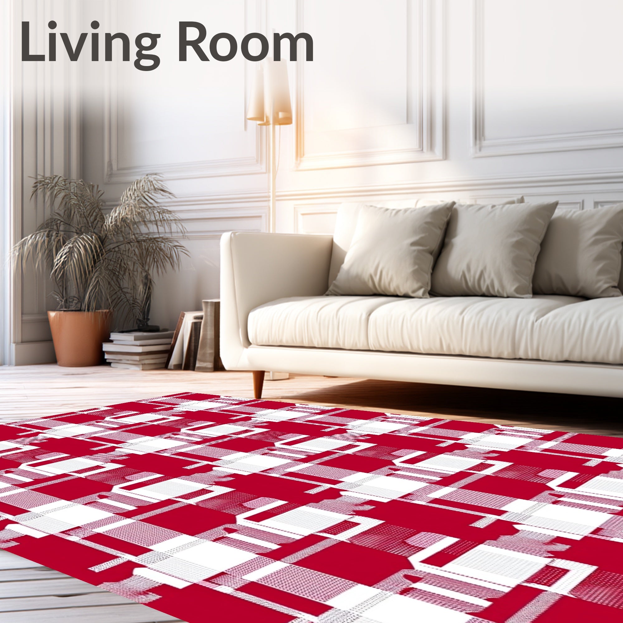 Ultra Soft Area Rug, Non Slip, Stain Resistant, Washable Area Rugs for Living Room, Bedroom, Seasonal Tartan Inspired with Check Design(Red) Overview: