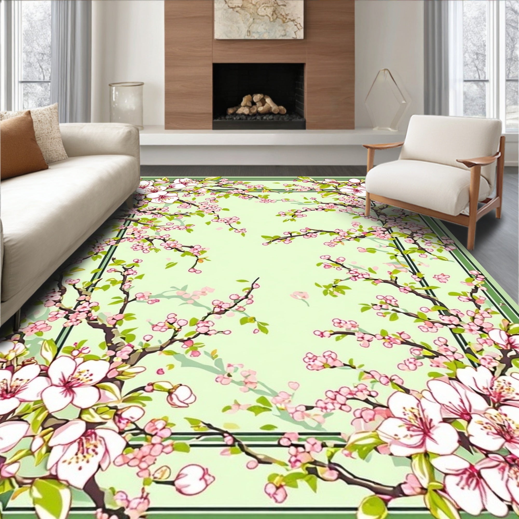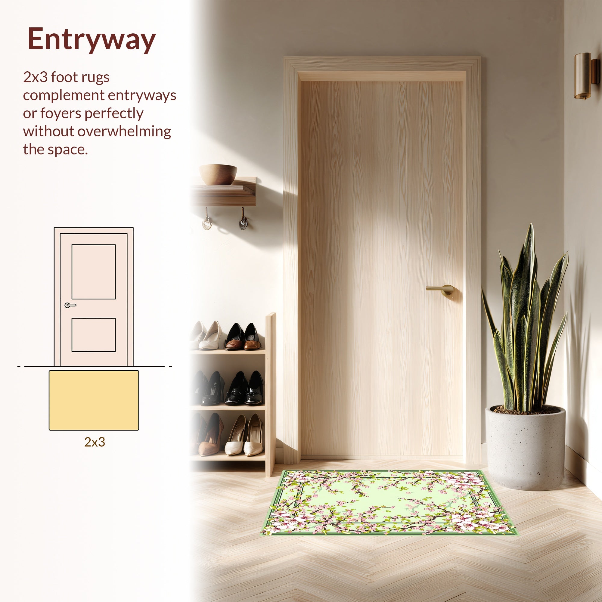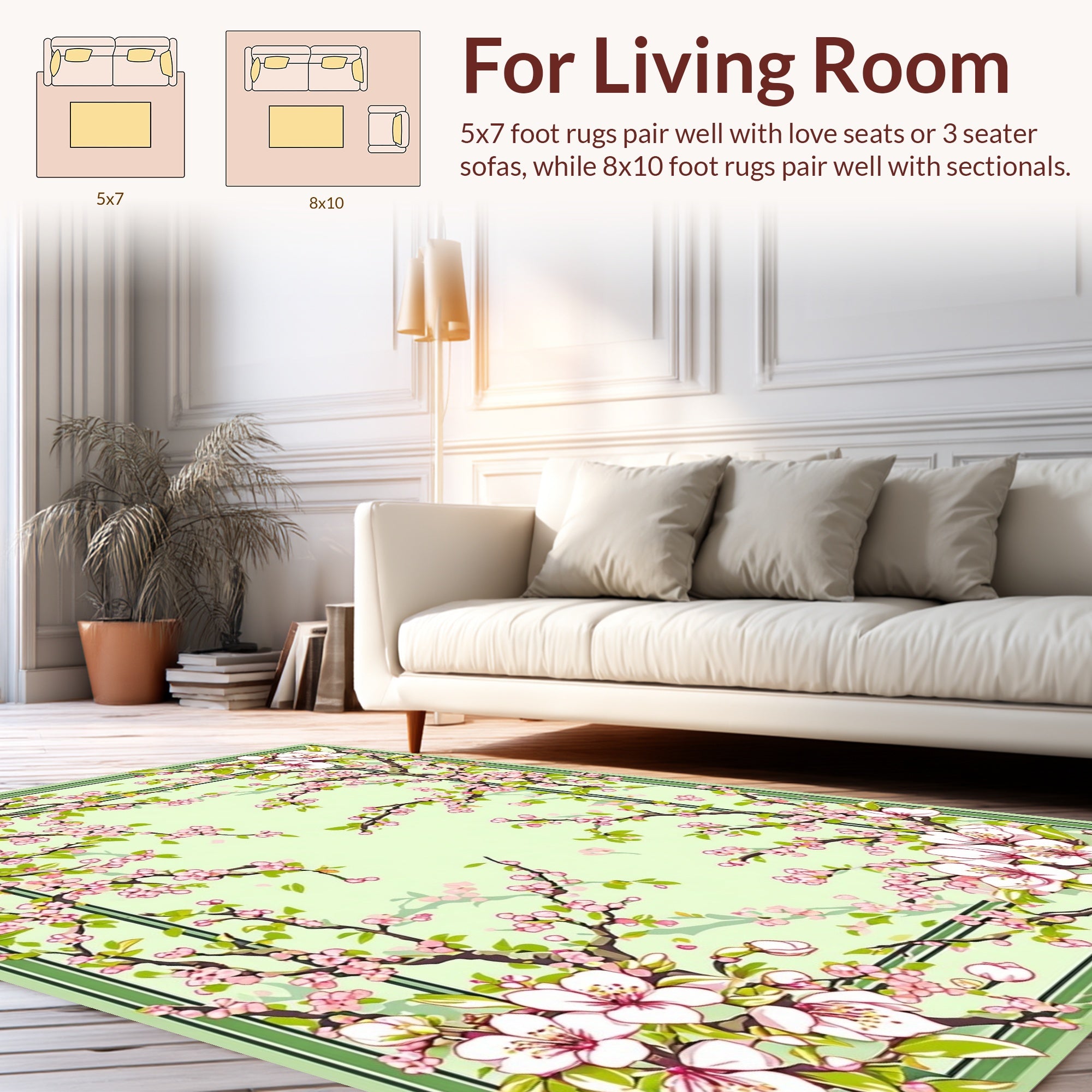 Flatwoven High Traffic Area Rug, Serene Botanical Composition, Non Slip, Stain Resistant, Washable Area Rugs for Living Room, Bedroom (Beige) Overview: