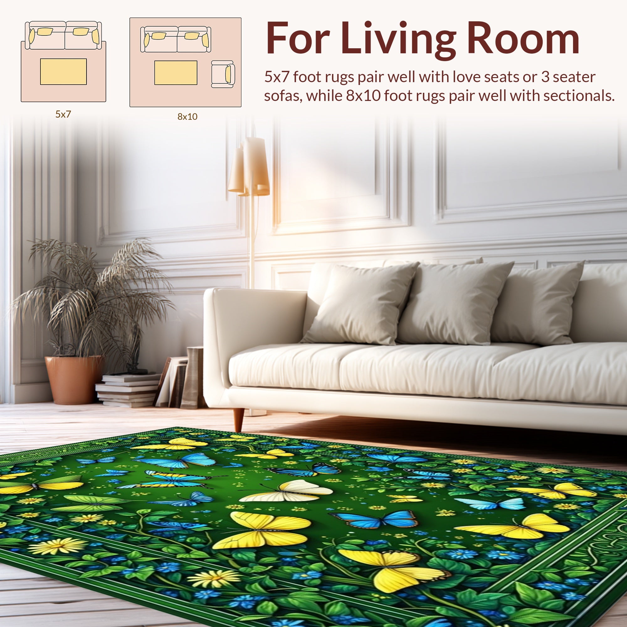 Flatwoven High Traffic Area Rug, Serene Naturalistic Bug, Non Slip, Stain Resistant, Washable Area Rugs for Living Room, Bedroom (Green) Overview: