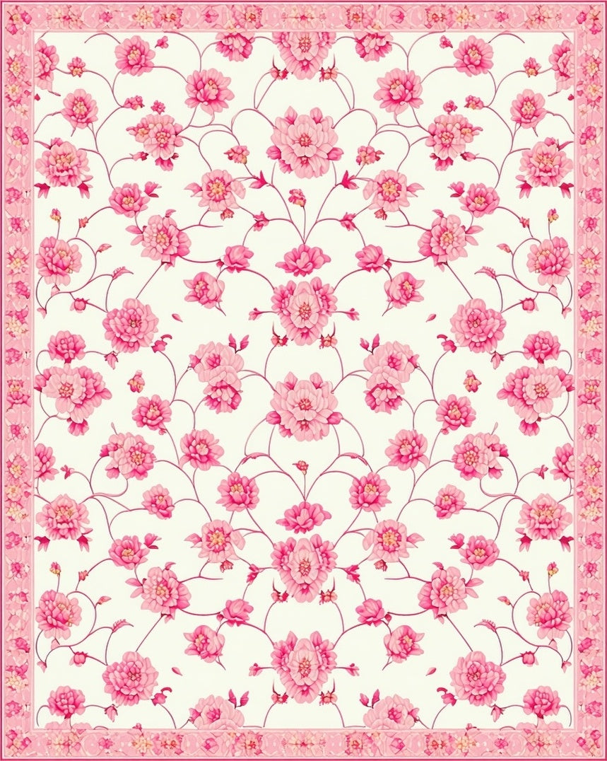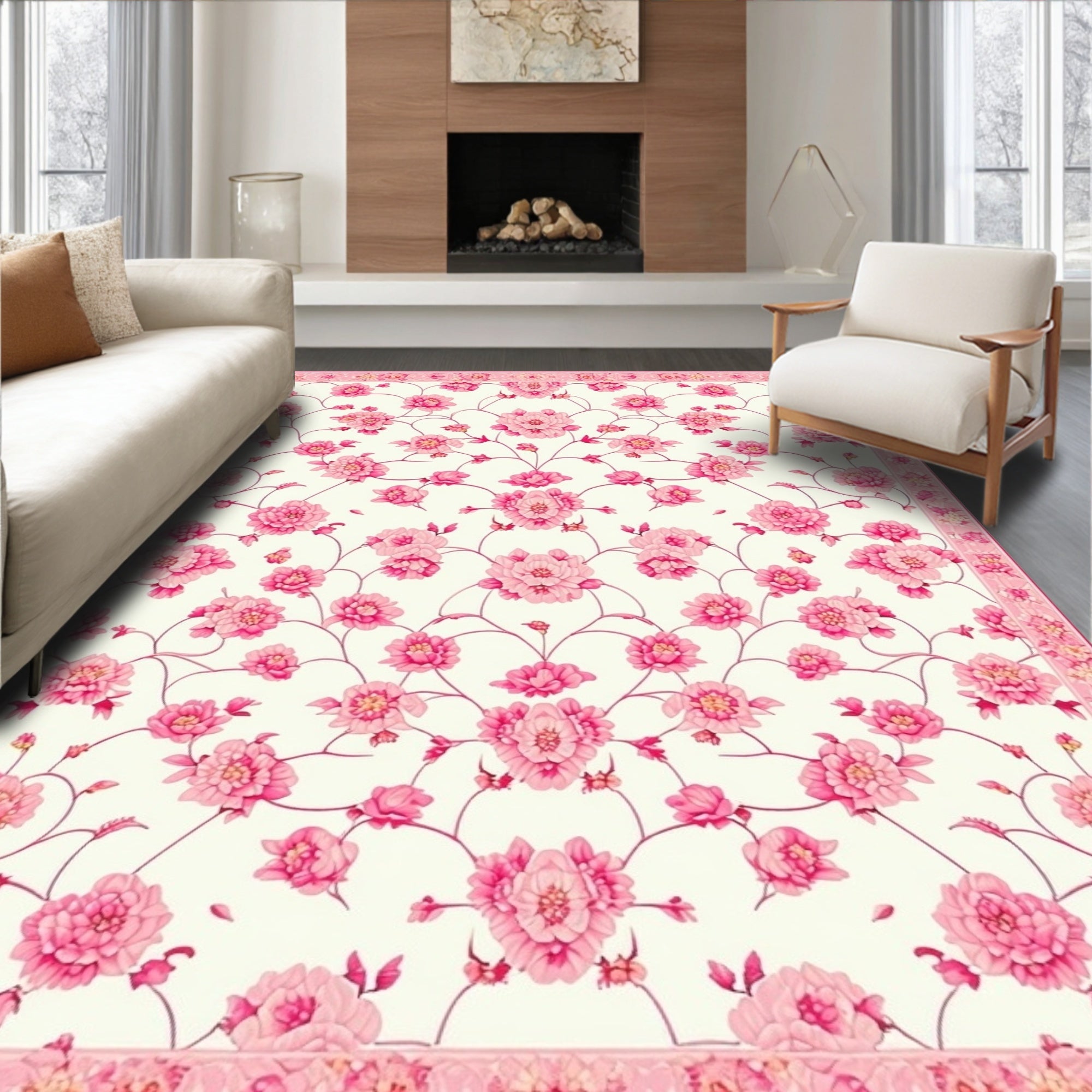 Flatwoven High Traffic Area Rug, Serene Playful Flower Embellishments, Non Slip, Stain Resistant, Washable Area Rugs for Living Room, Bedroom (White) Overview: