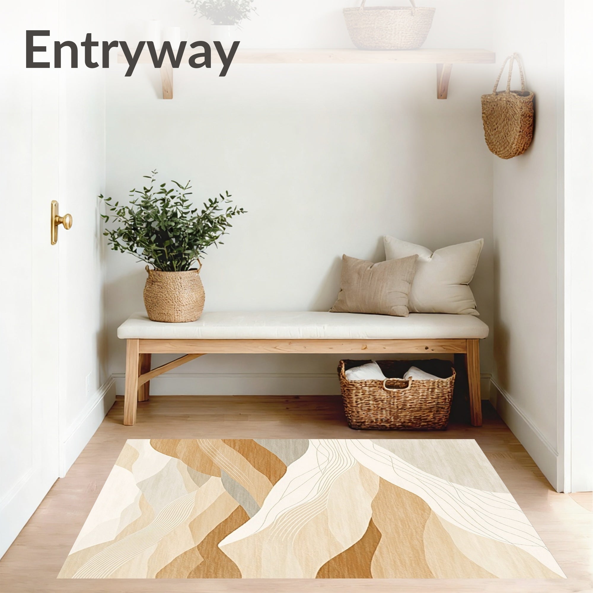 Flatwoven High Traffic Area Rug, Serene Sandscape Absorbent Shower Neutral Hues, Non Slip, Stain Resistant, Washable Area Rugs for Living Room, Bedroom (Beige) Overview: