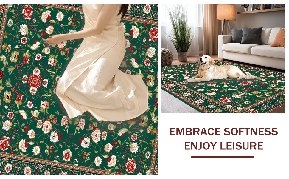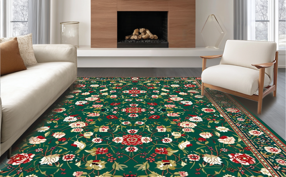 Ultra Soft Area Rug, Non Slip, Stain Resistant, Washable Area Rugs for Living Room, Bedroom, Serene Soft Green Organic Texture(Green) Overview: