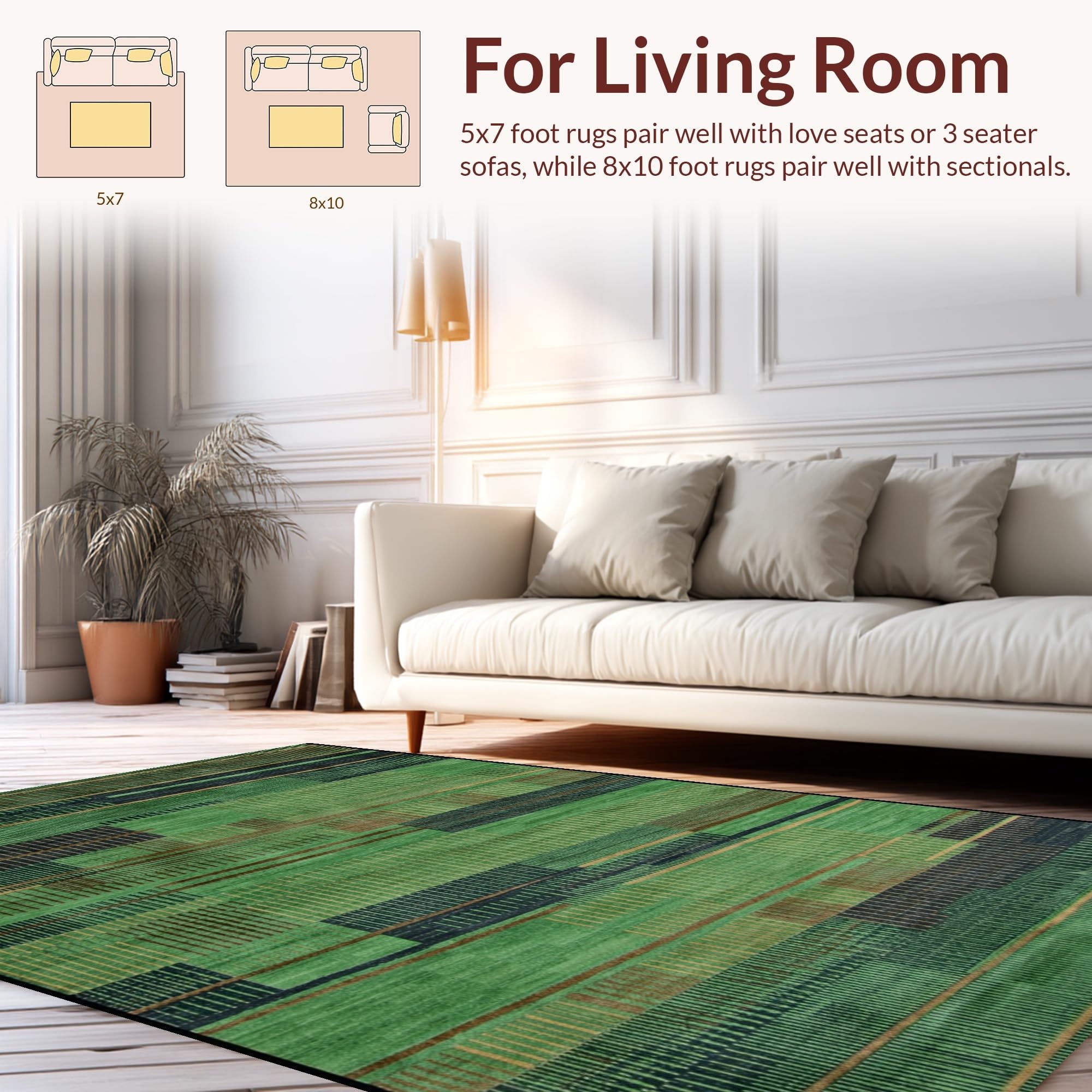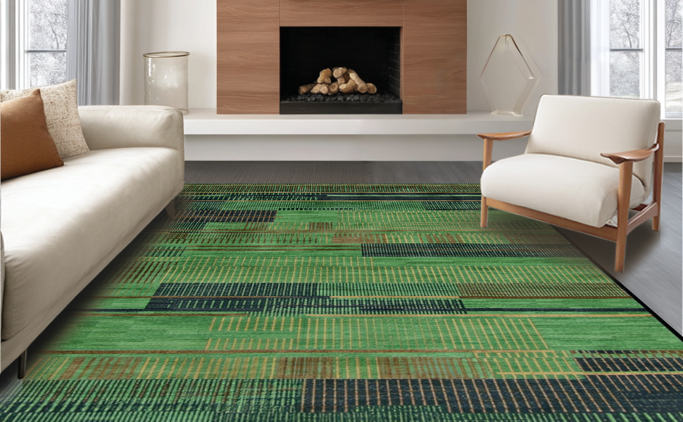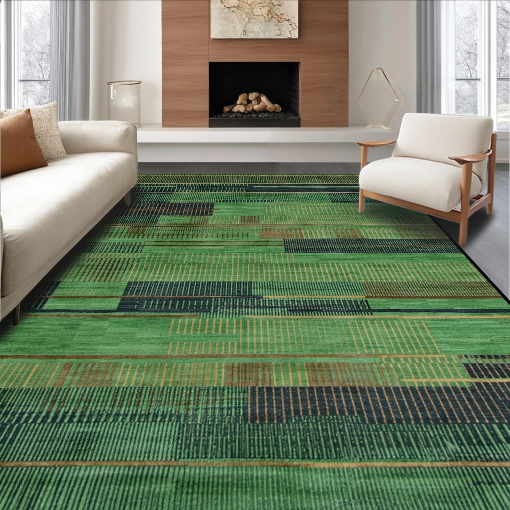 Ultra Soft Area Rug, Non Slip, Stain Resistant, Washable Area Rugs for Living Room, Bedroom, Sleek Low-Pile Geometric Appeal(Green) Overview: