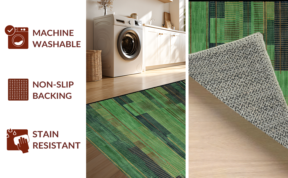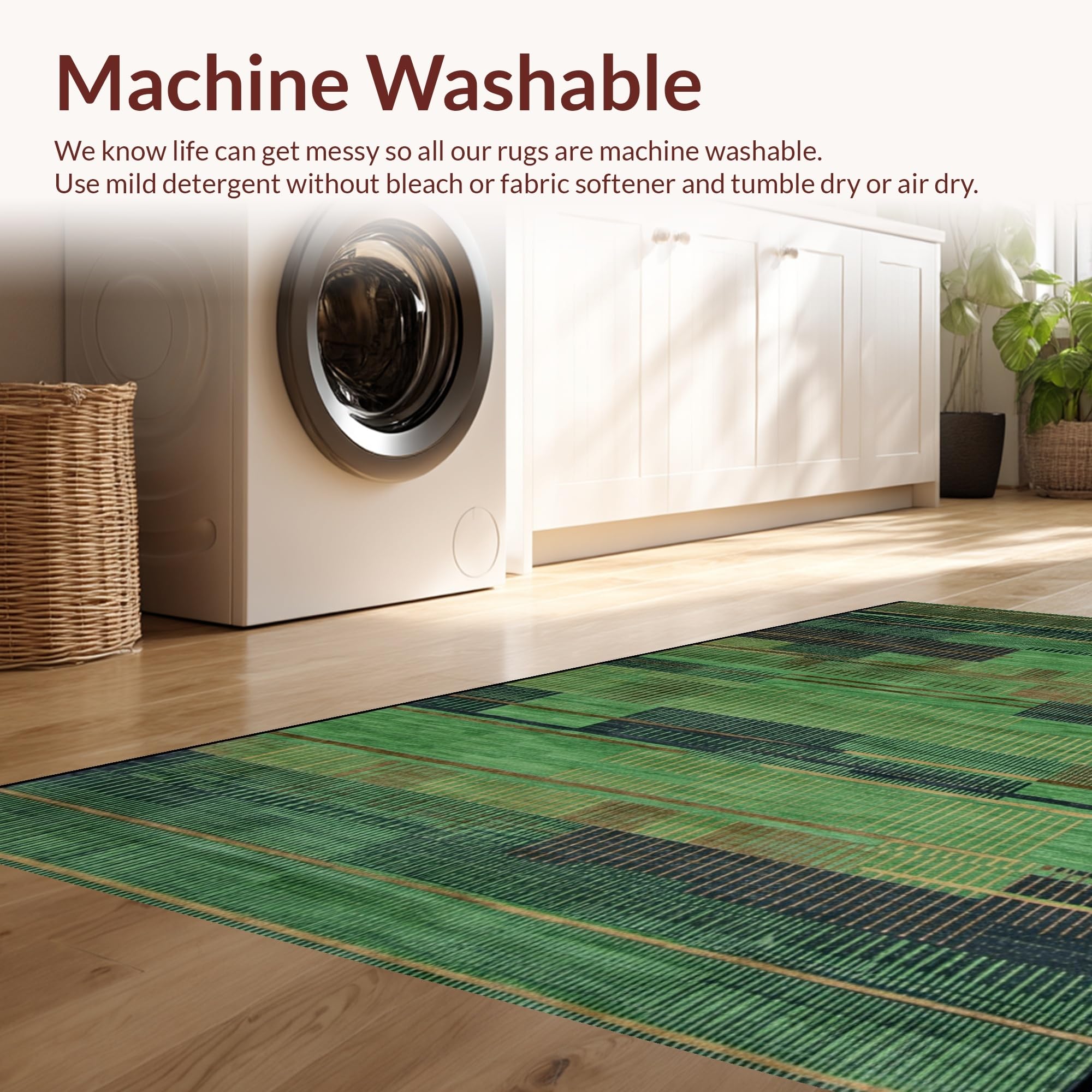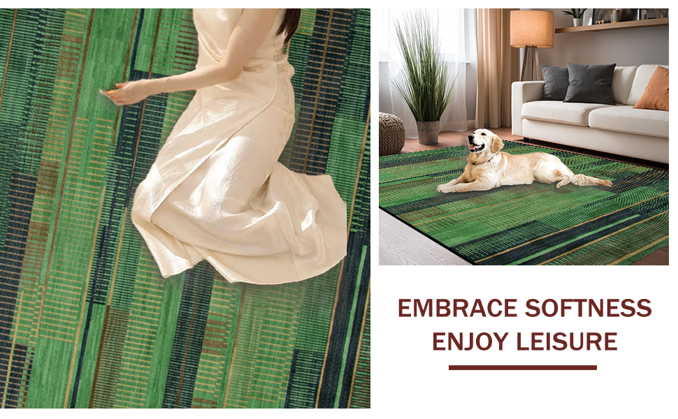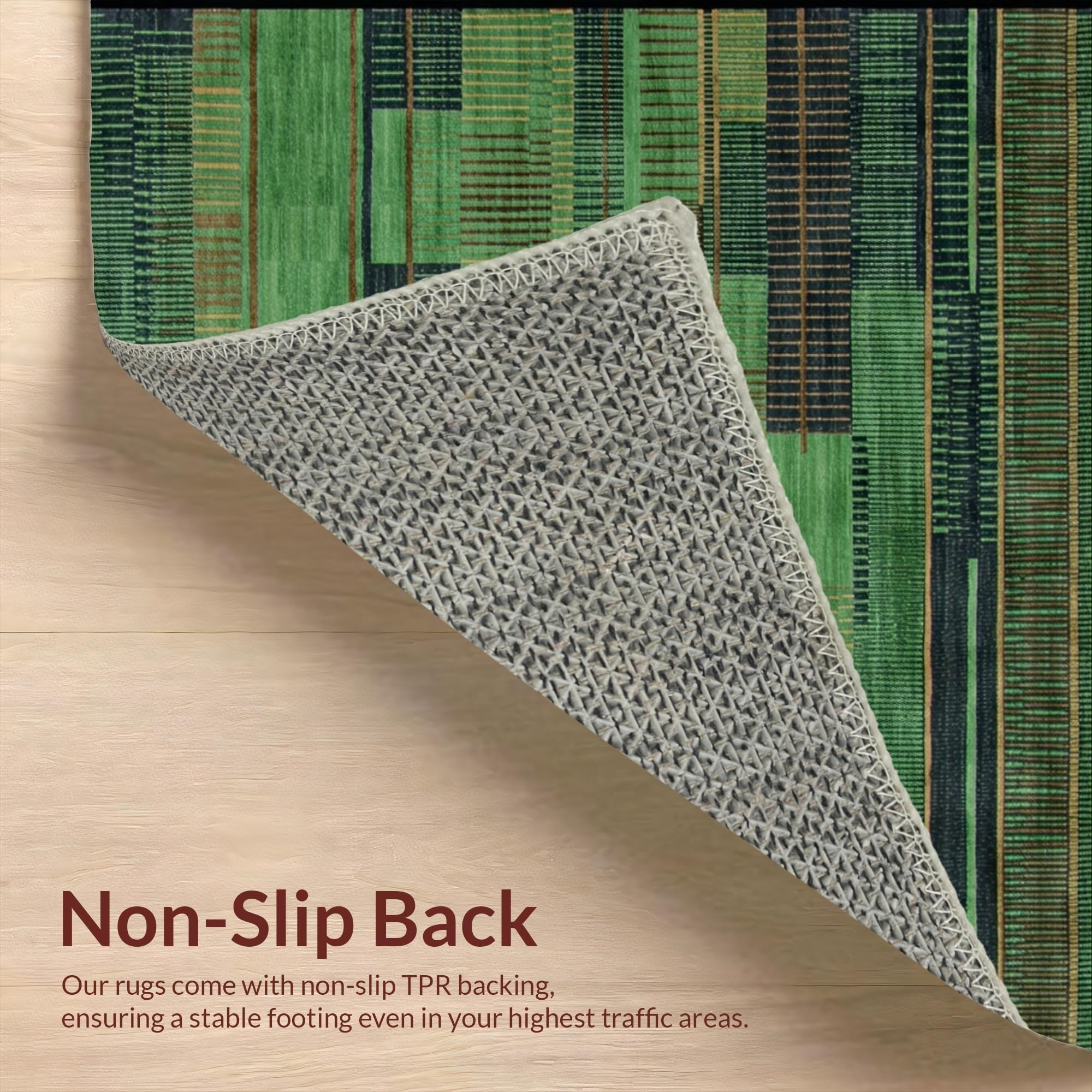 Ultra Soft Area Rug, Non Slip, Stain Resistant, Washable Area Rugs for Living Room, Bedroom, Sleek Low-Pile Geometric Appeal(Green) Overview: