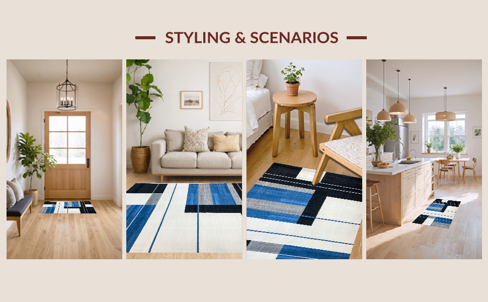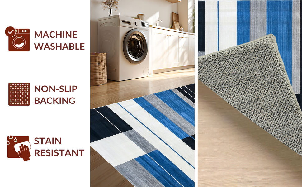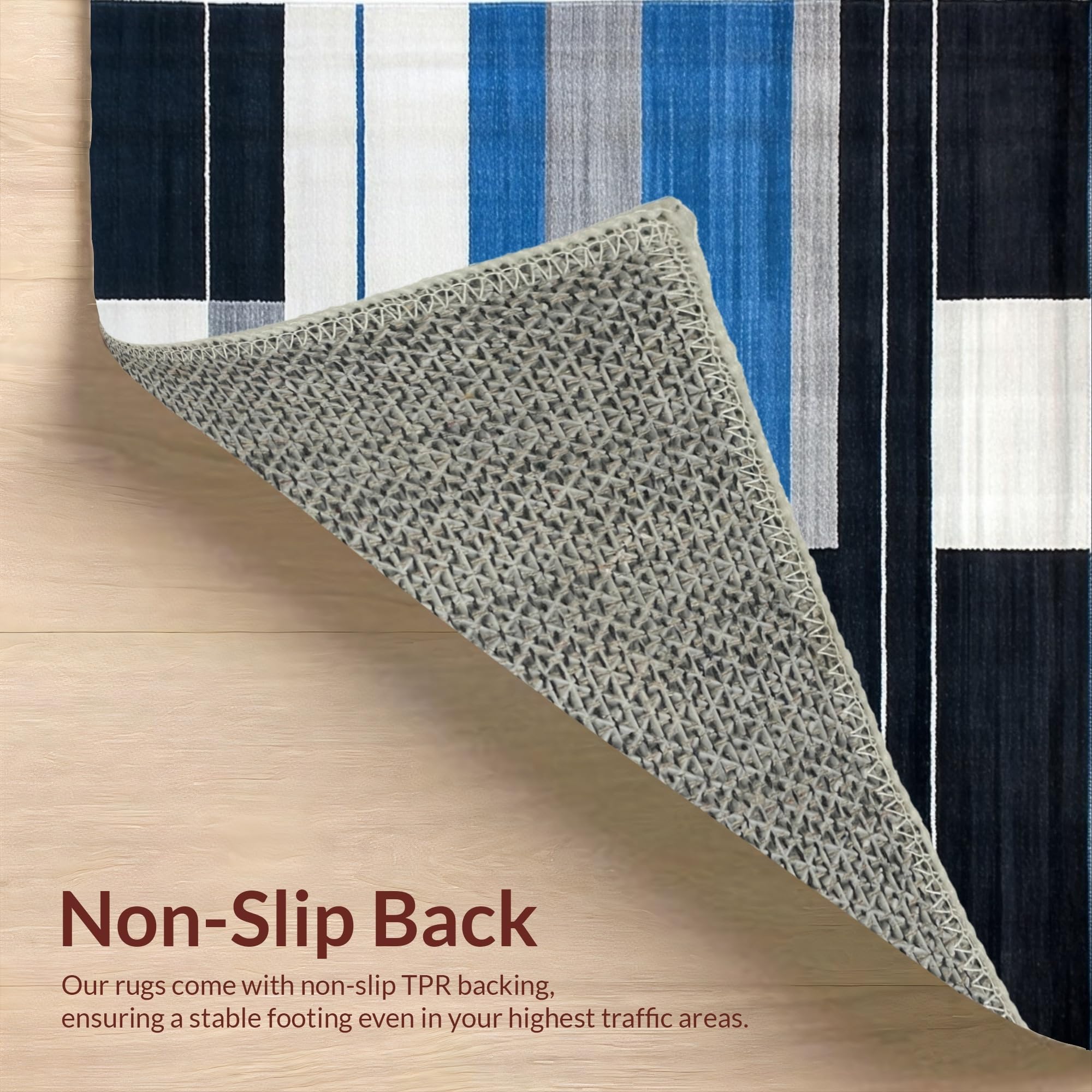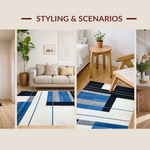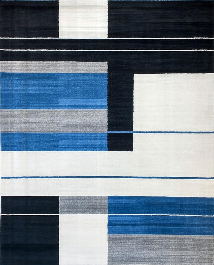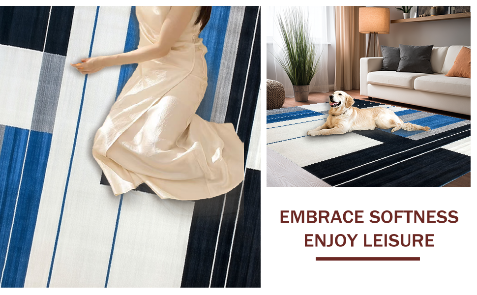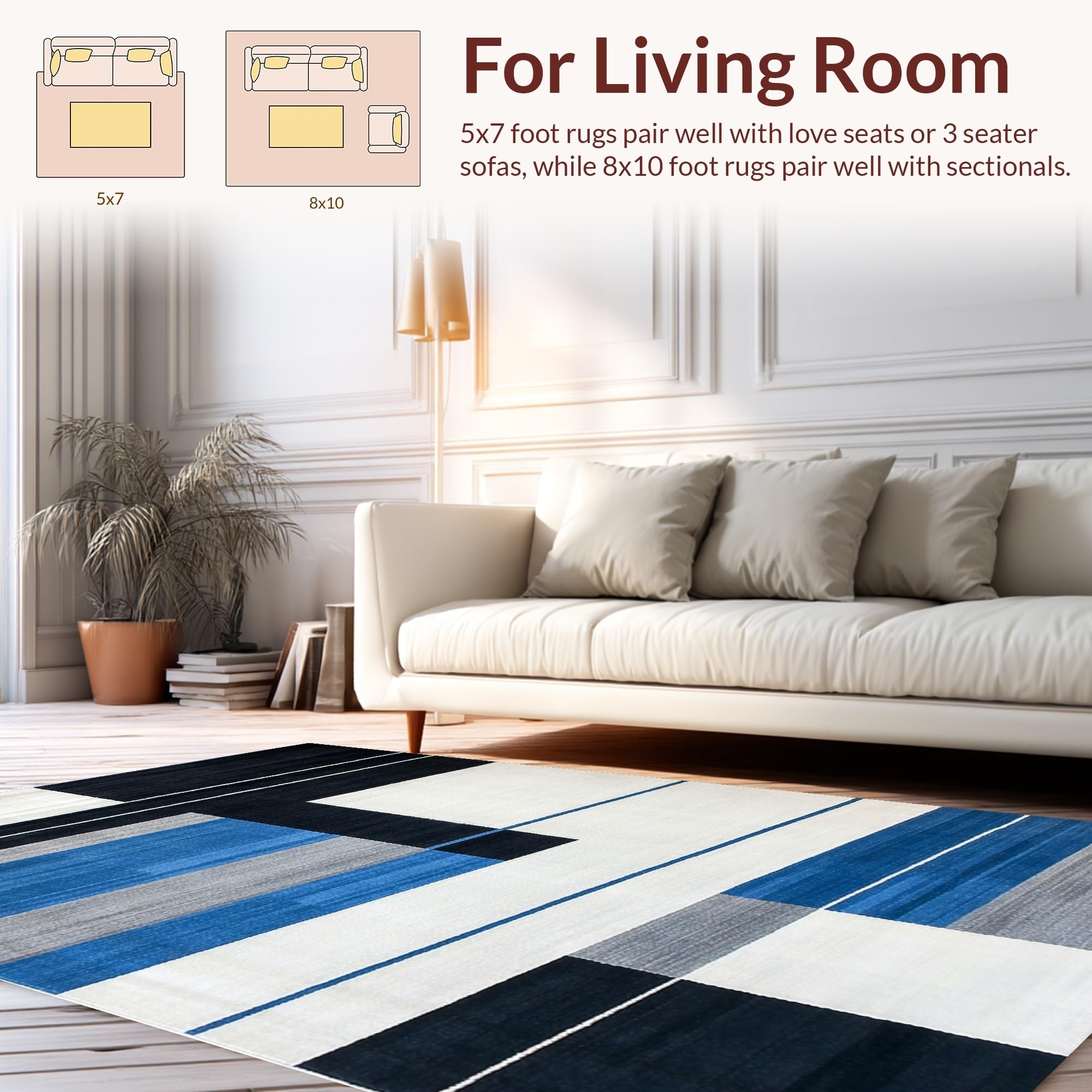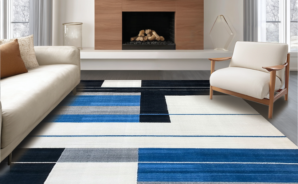 Ultra Soft Area Rug, Non Slip, Stain Resistant, Washable Area Rugs for Living Room, Bedroom, Sleek Modern Angular Aesthetics(Blue) Overview: