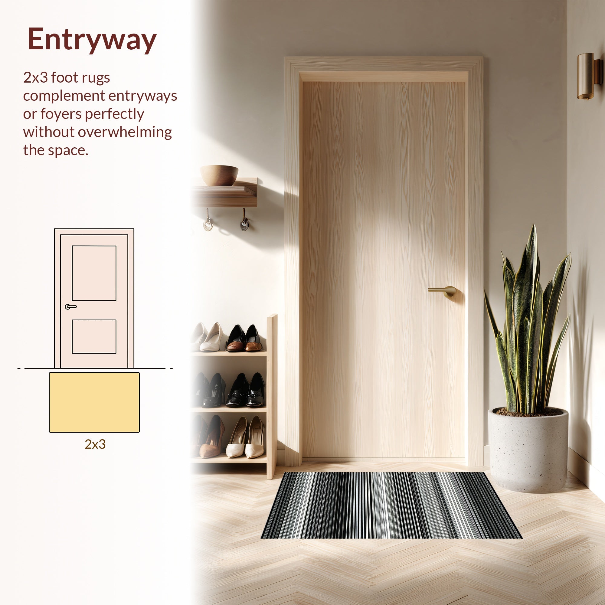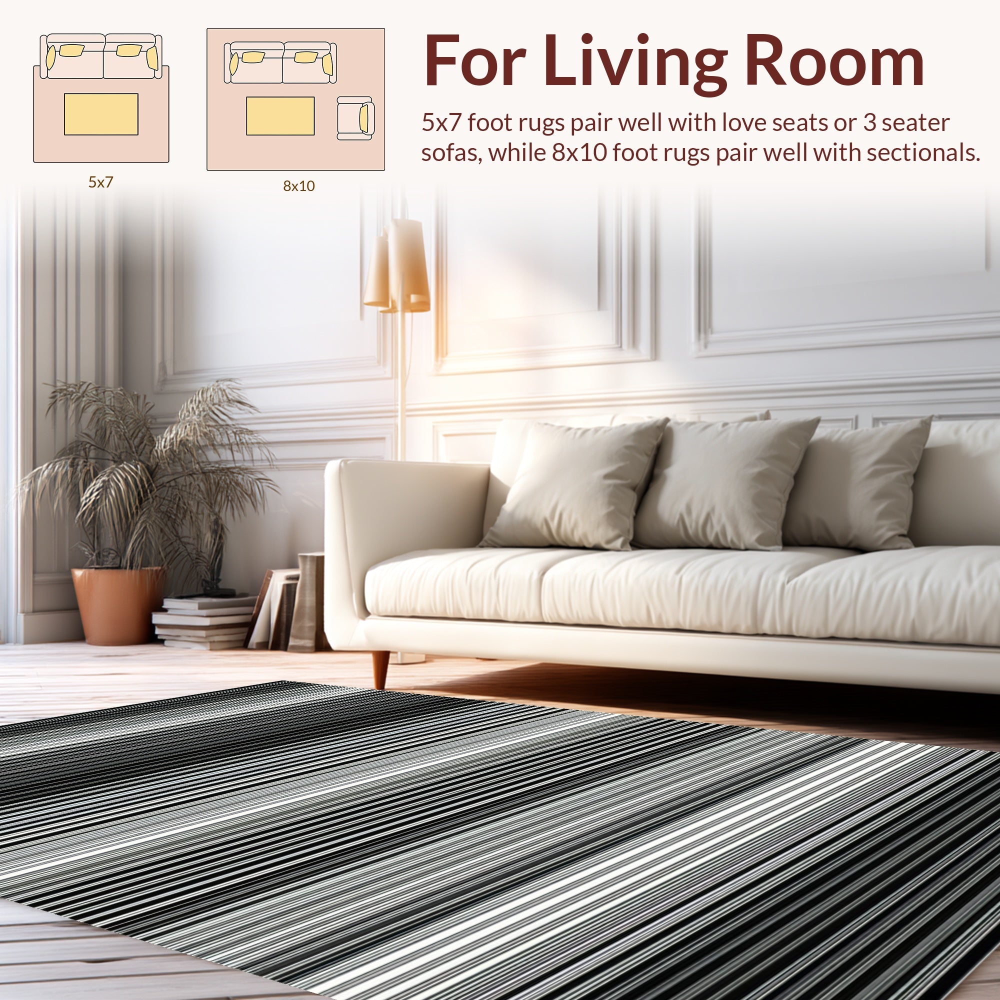 Flatwoven High Traffic Area Rug, Sleek Modernist Monochrome Waves, Non Slip, Stain Resistant, Washable Area Rugs for Living Room, Bedroom (Black) Overview: