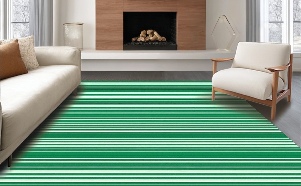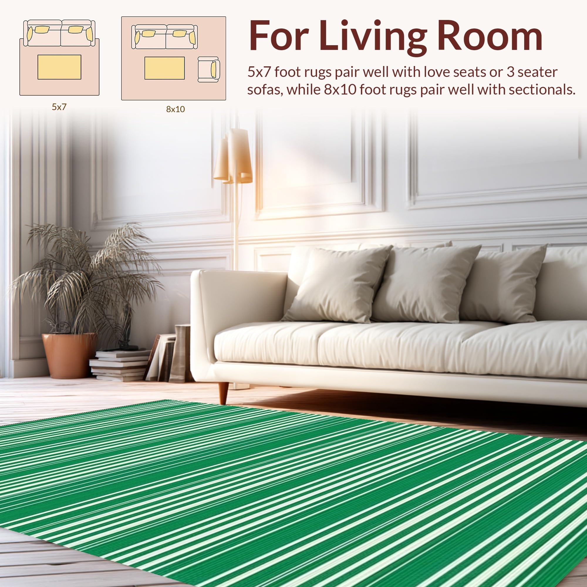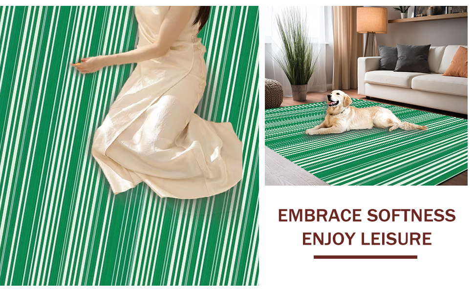 Ultra Soft Area Rug, Non Slip, Stain Resistant, Washable Area Rugs for Living Room, Bedroom, Sleek Modernist Striped Appeal(Green) Overview: