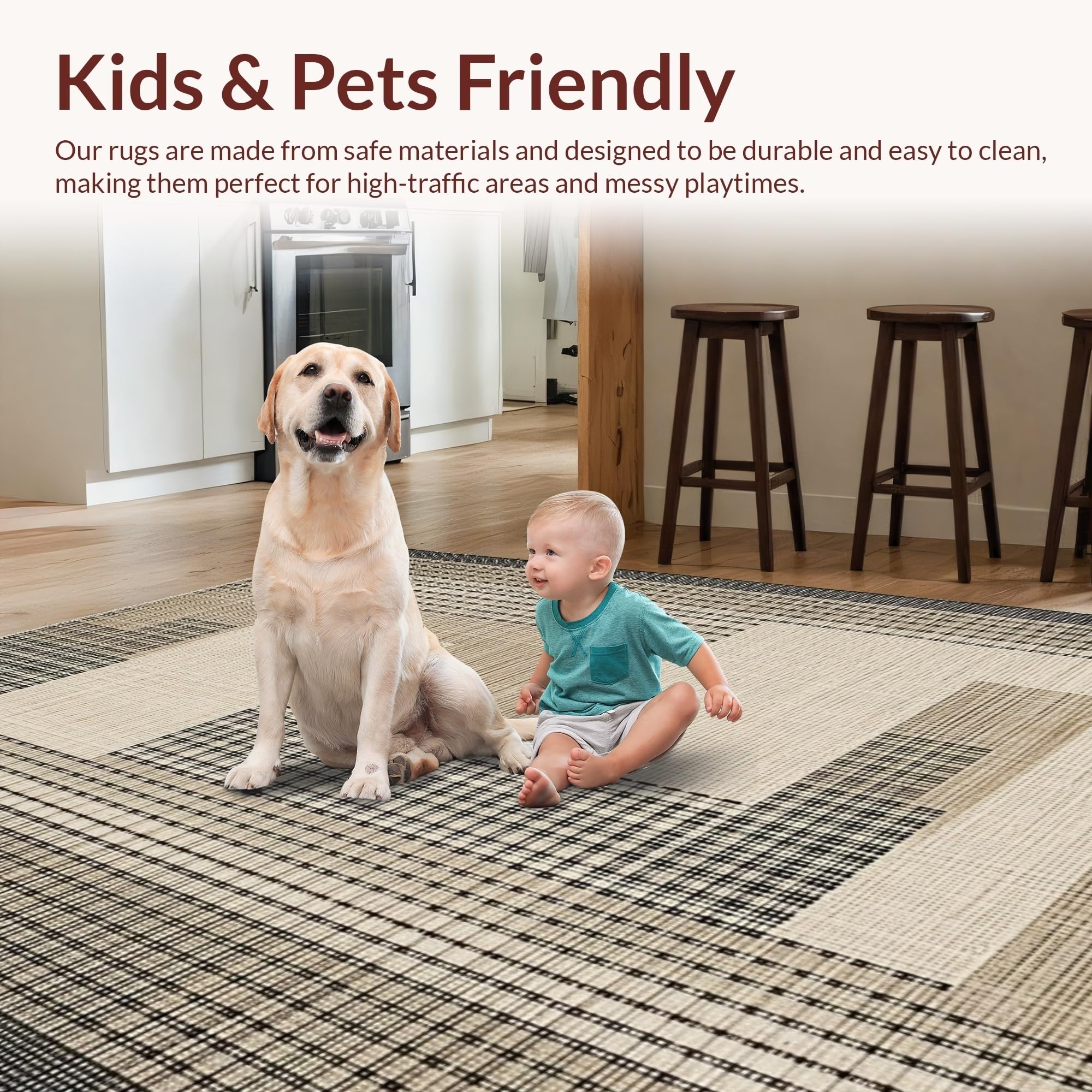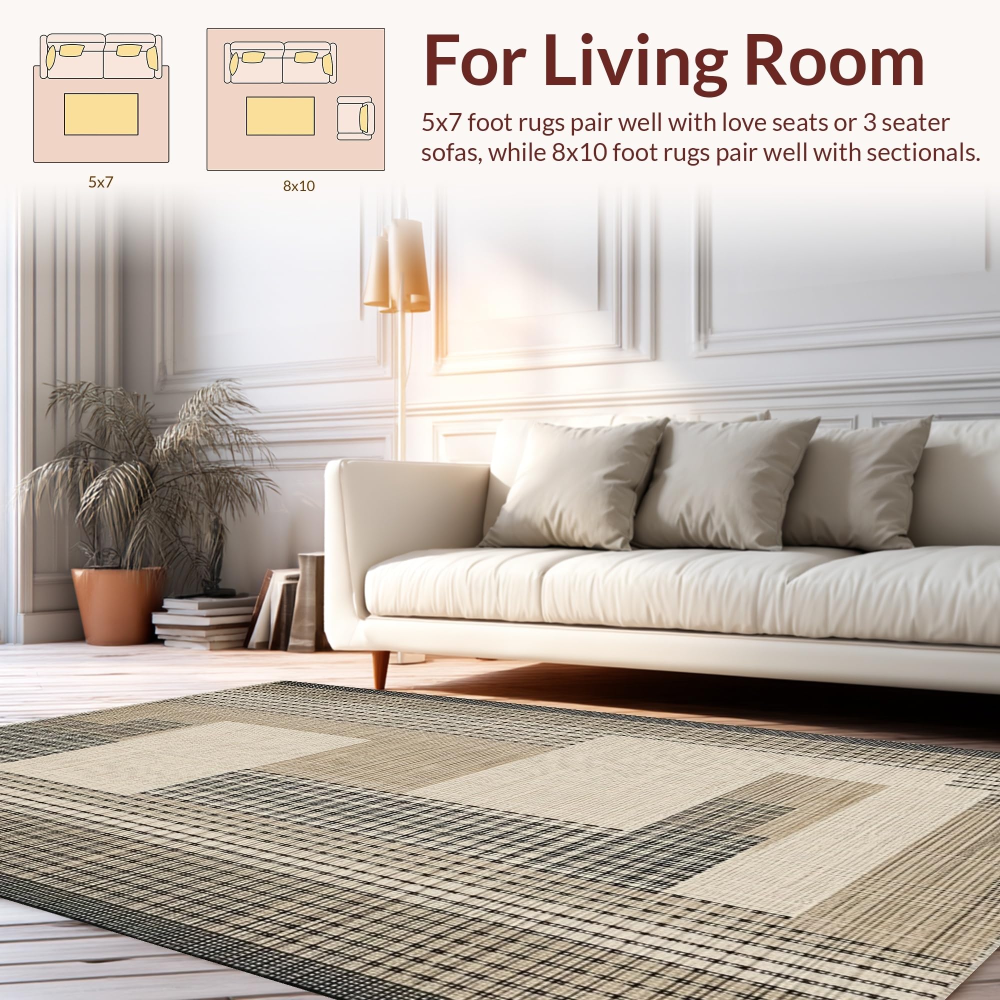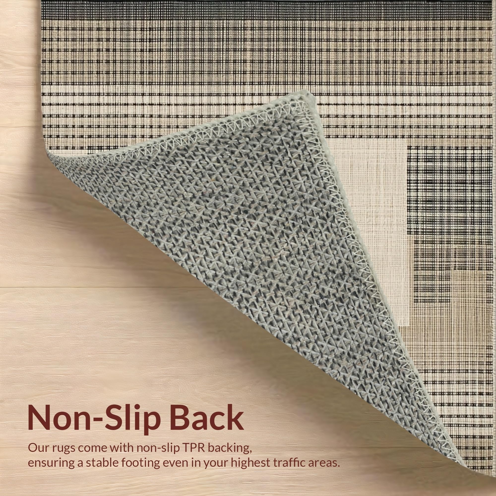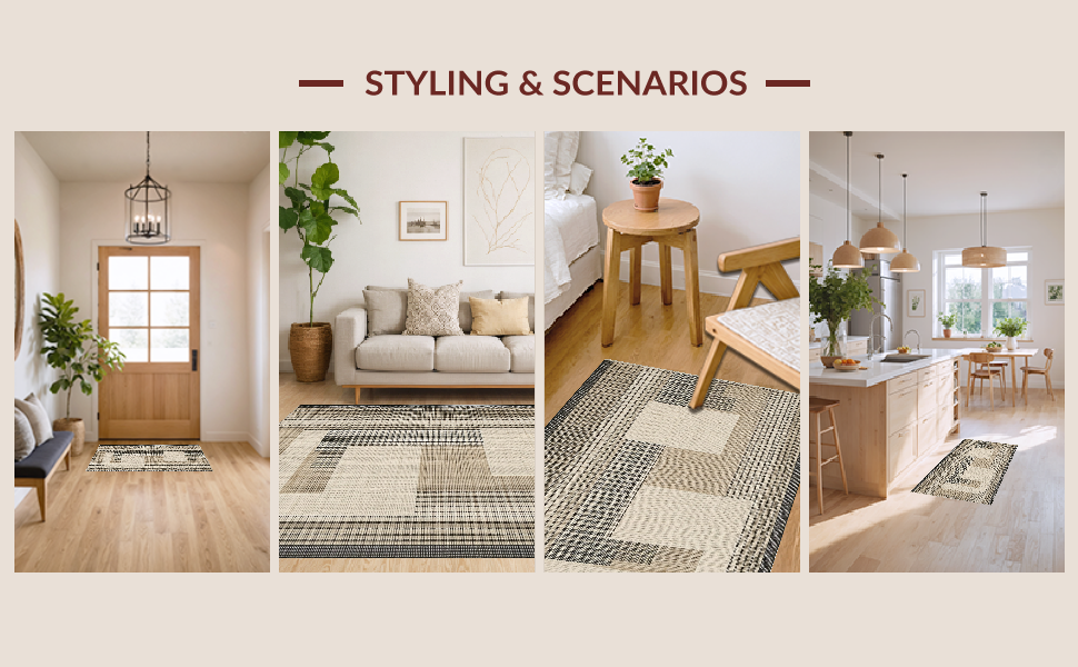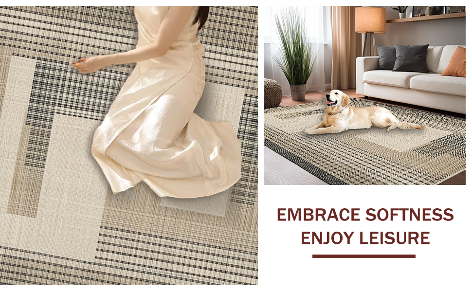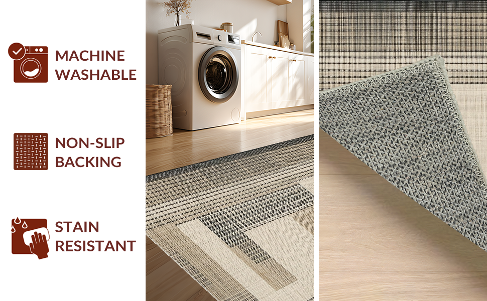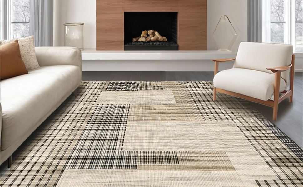 Ultra Soft Area Rug, Non Slip, Stain Resistant, Washable Area Rugs for Living Room, Bedroom, Sleek Transitional Geometric Arrangement(Beige) Overview: