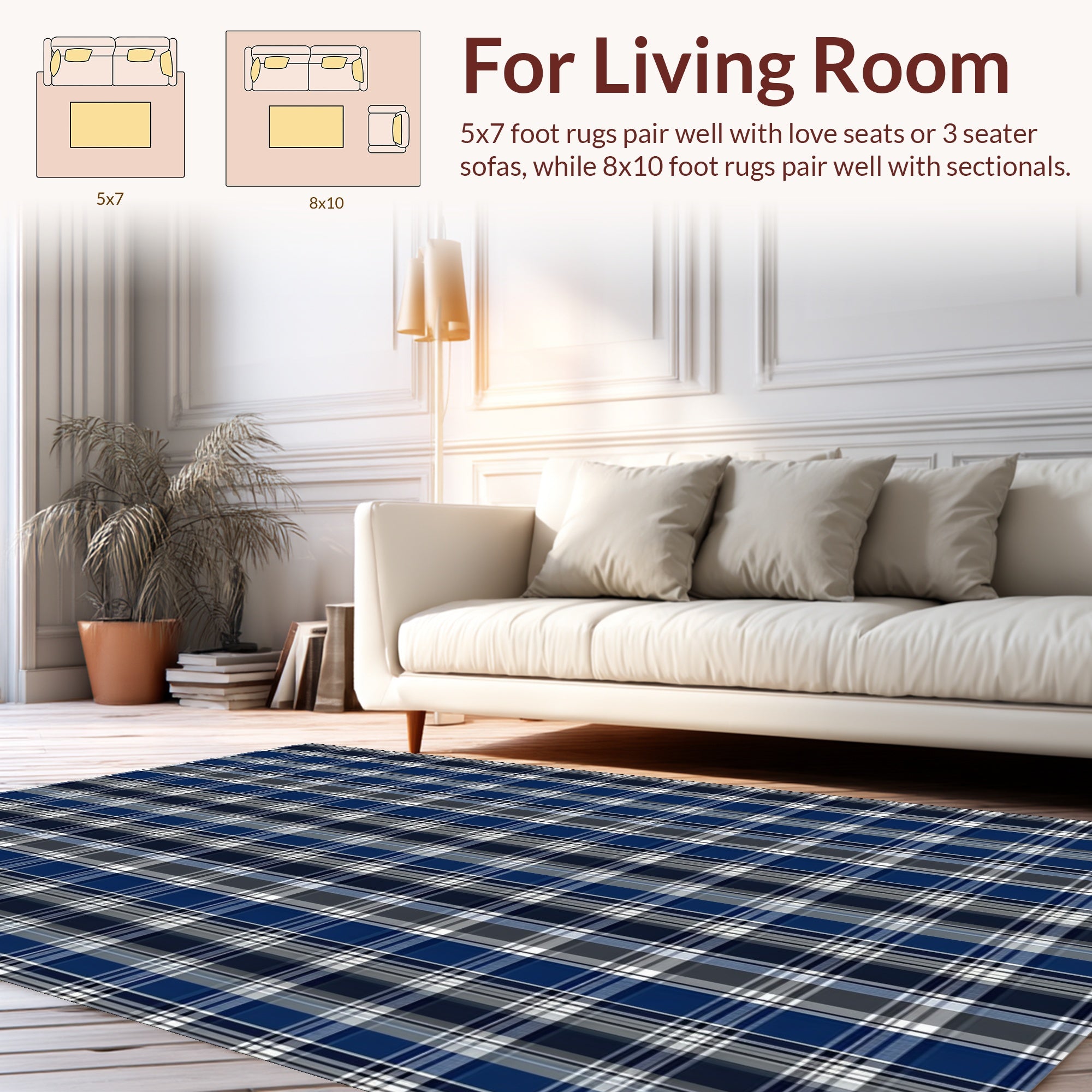 Flatwoven High Traffic Area Rug, Sleek Transitional Grid Design, Non Slip, Stain Resistant, Washable Area Rugs for Living Room, Bedroom (Blue) Overview: