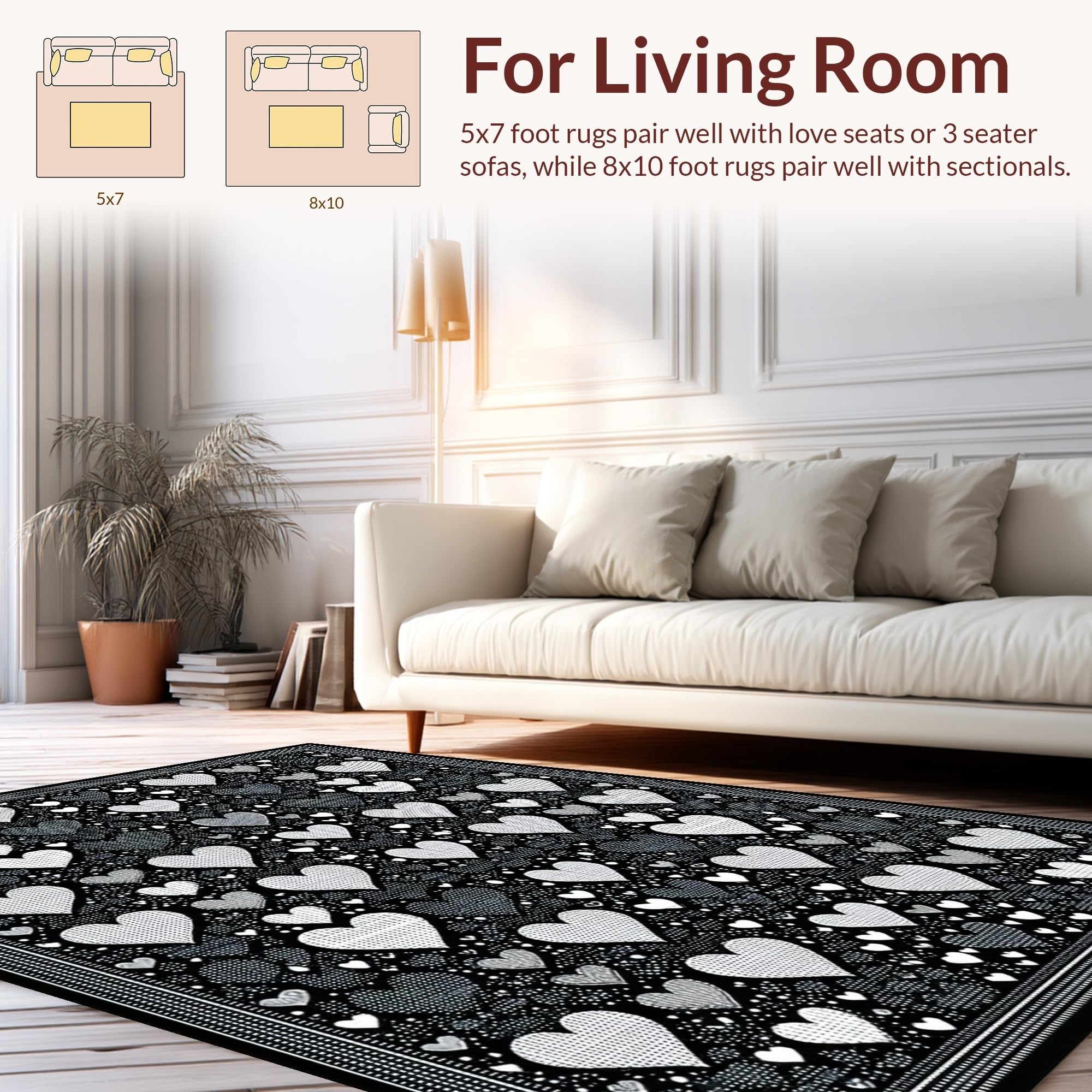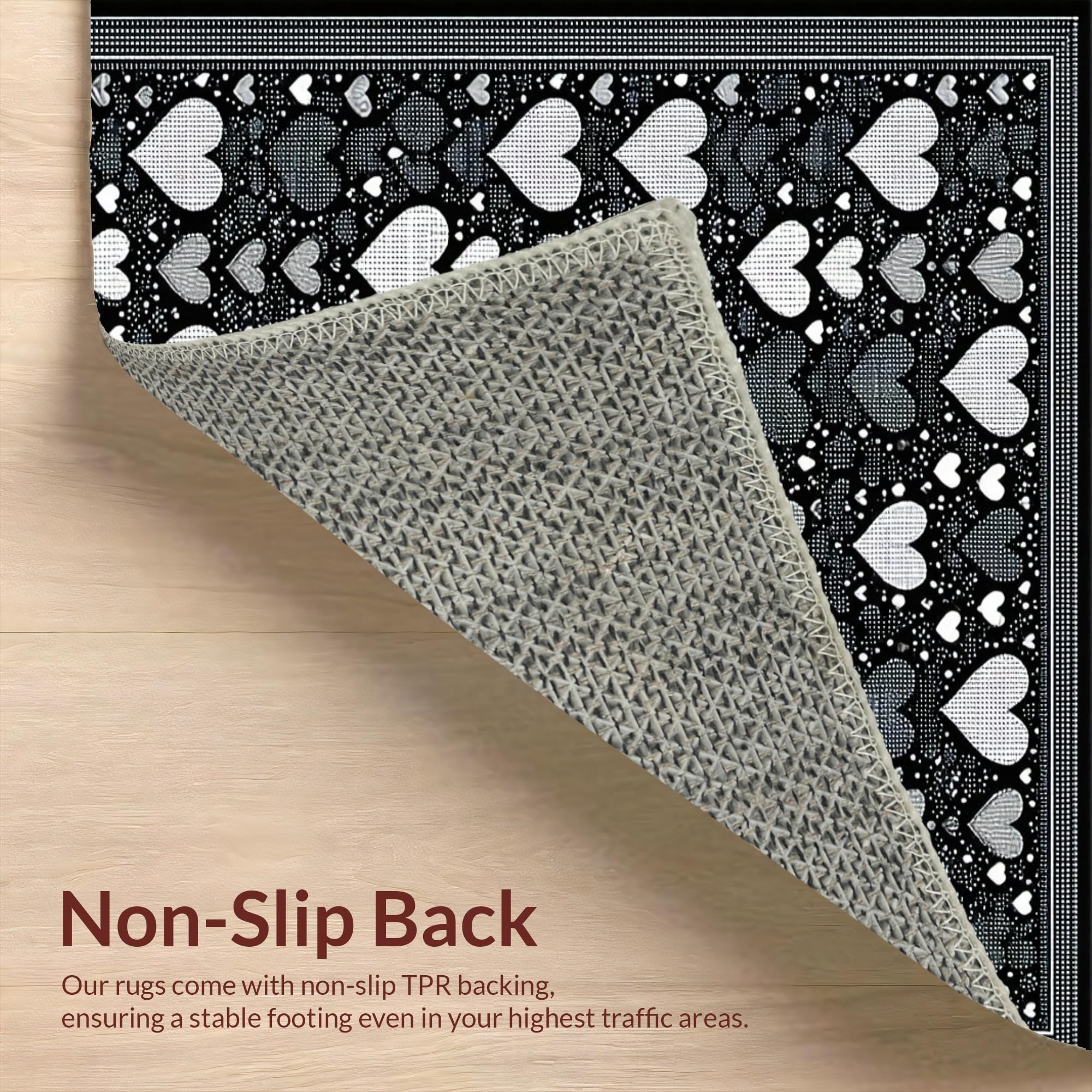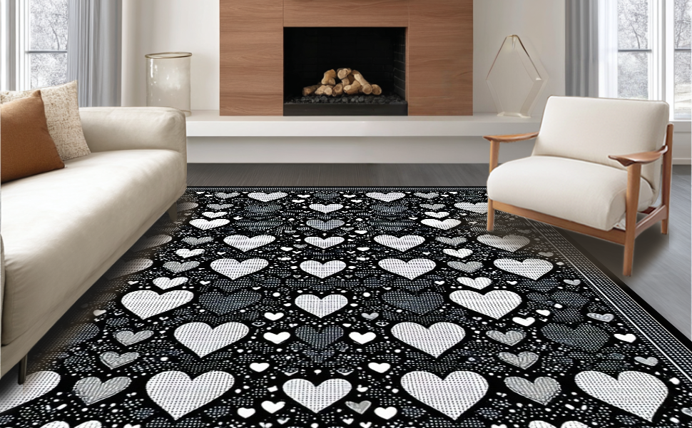 Ultra Soft Area Rug, Non Slip, Stain Resistant, Washable Area Rugs for Living Room, Bedroom, Sleek Urban Heart Form(Black) Overview: