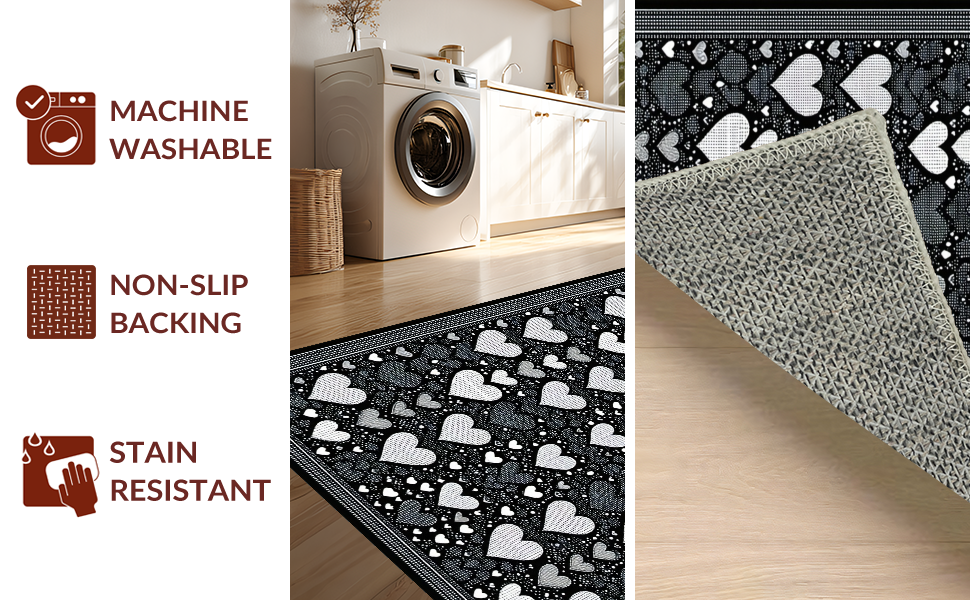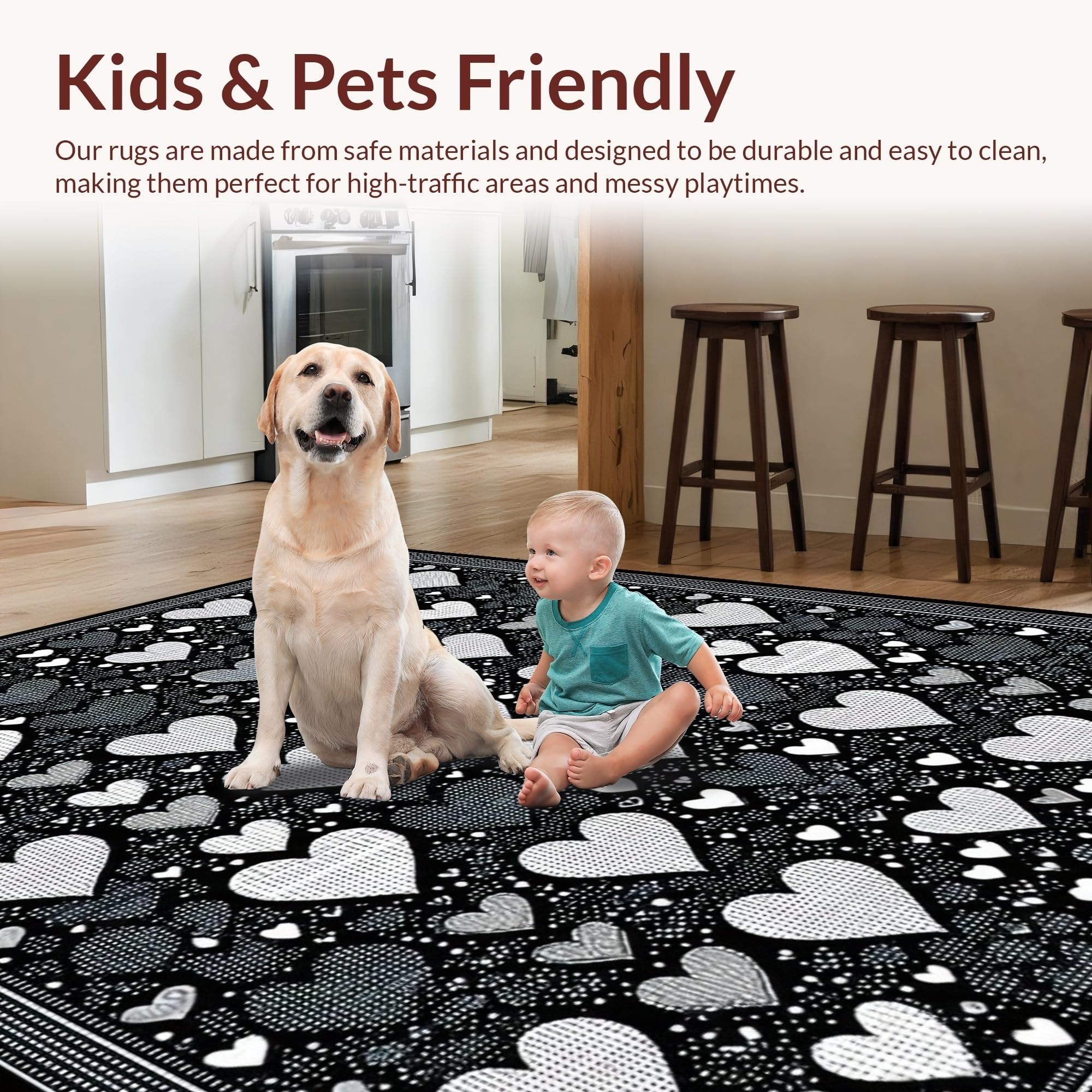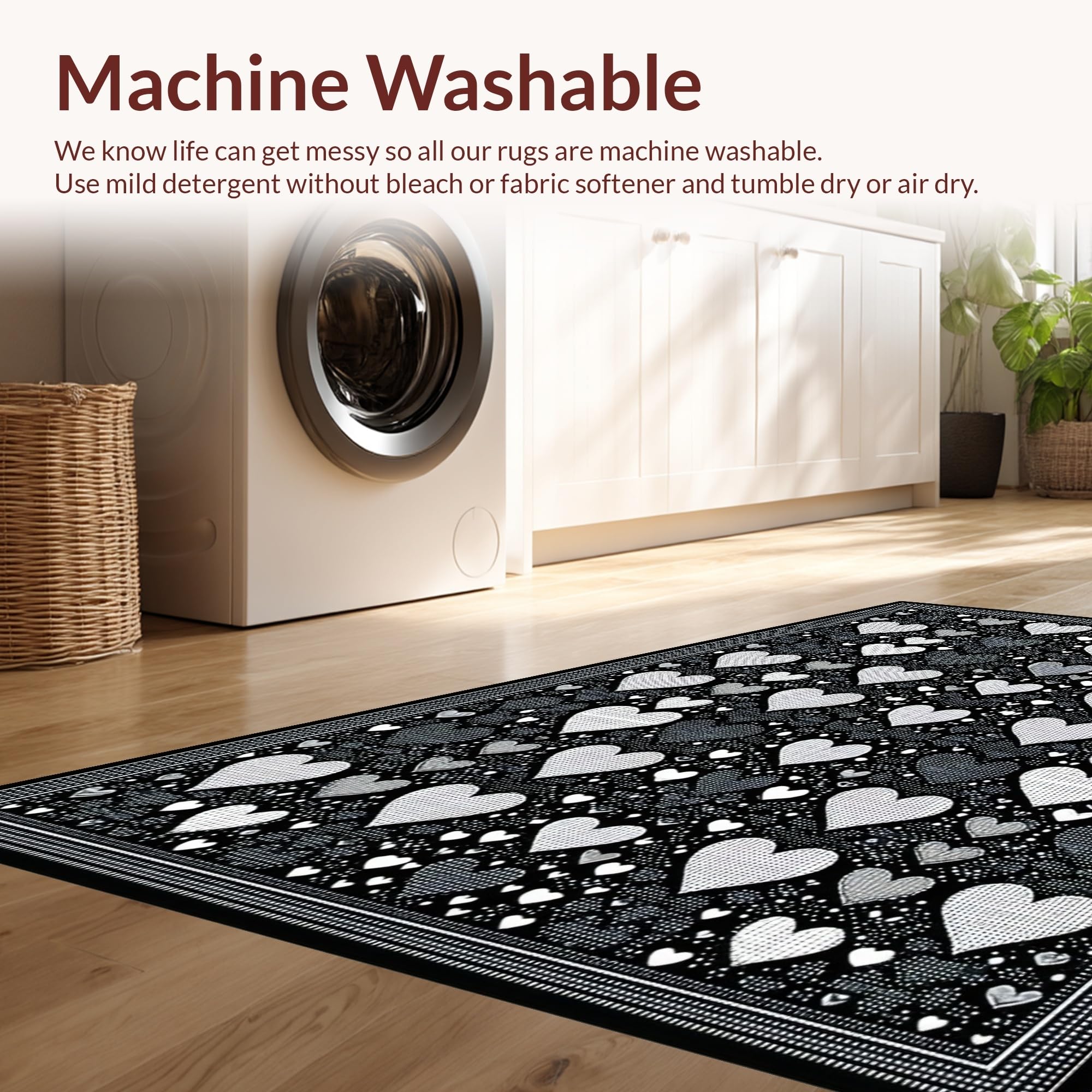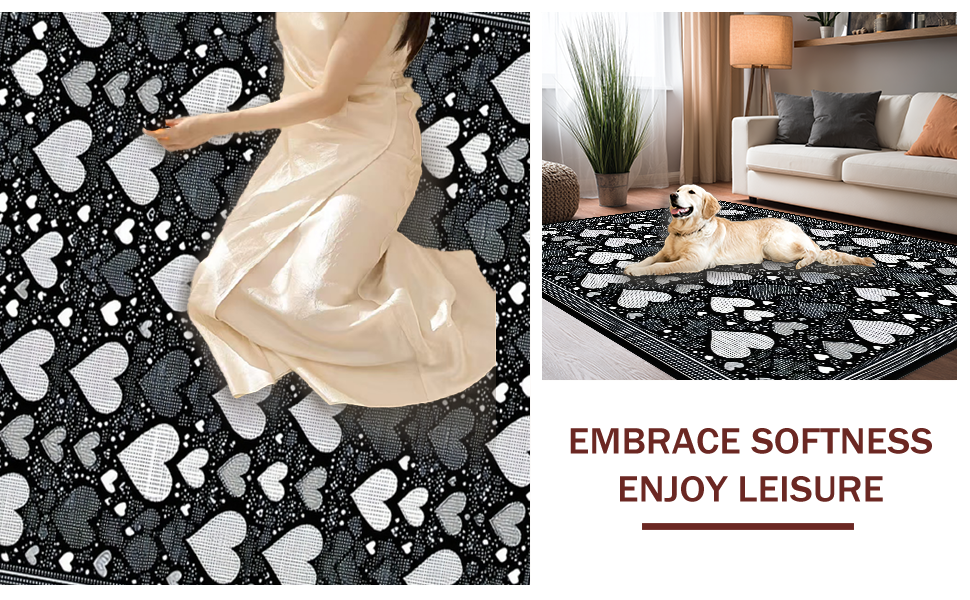 Ultra Soft Area Rug, Non Slip, Stain Resistant, Washable Area Rugs for Living Room, Bedroom, Sleek Urban Heart Form(Black) Overview: