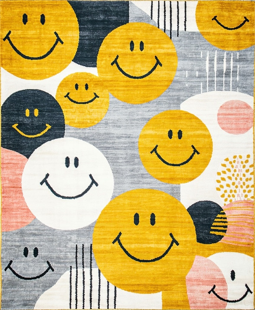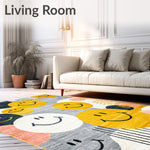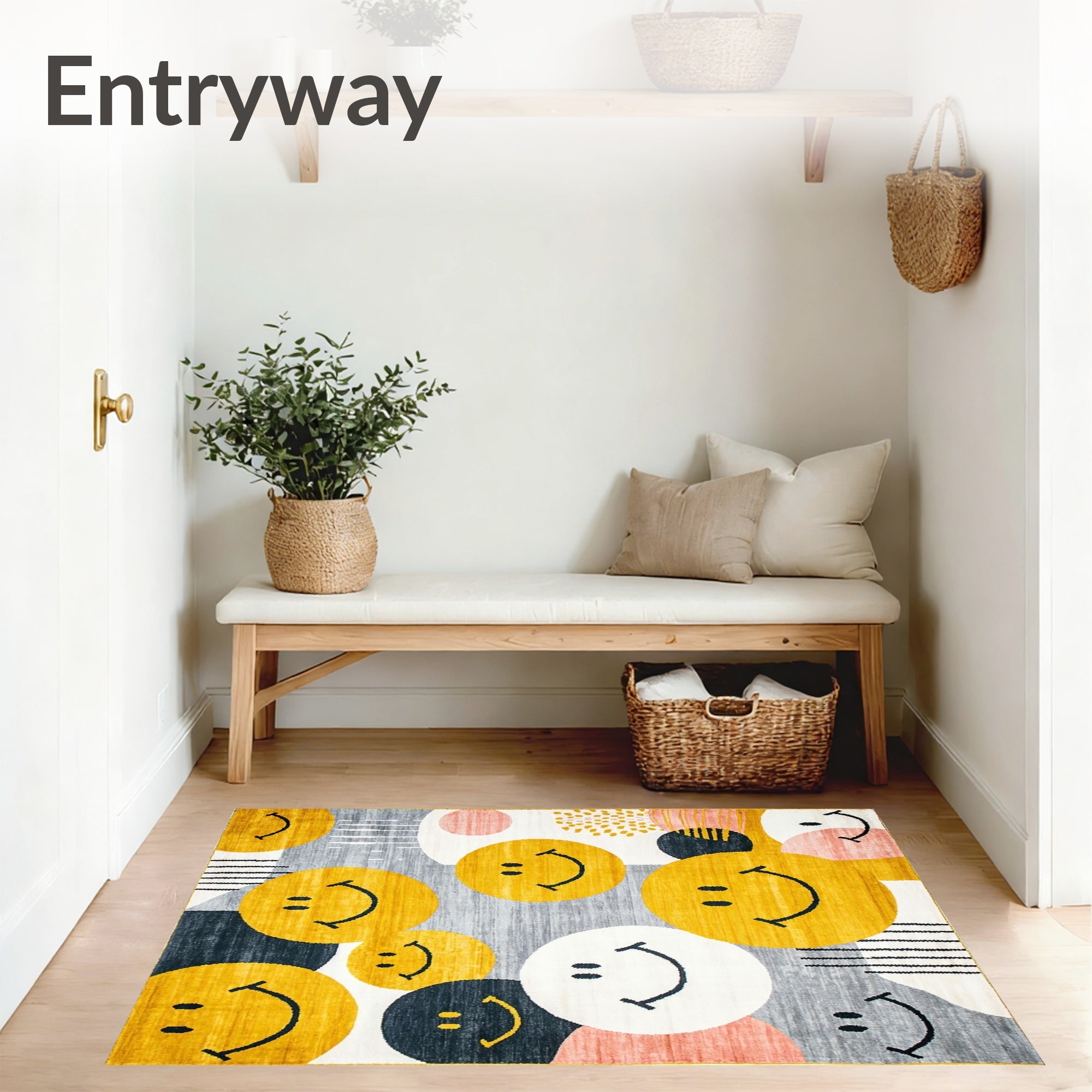 Flatwoven High Traffic Area Rug, Smiley Face Hippie, Non Slip, Stain Resistant, Washable Area Rugs for Living Room, Bedroom (Yellow) Overview: