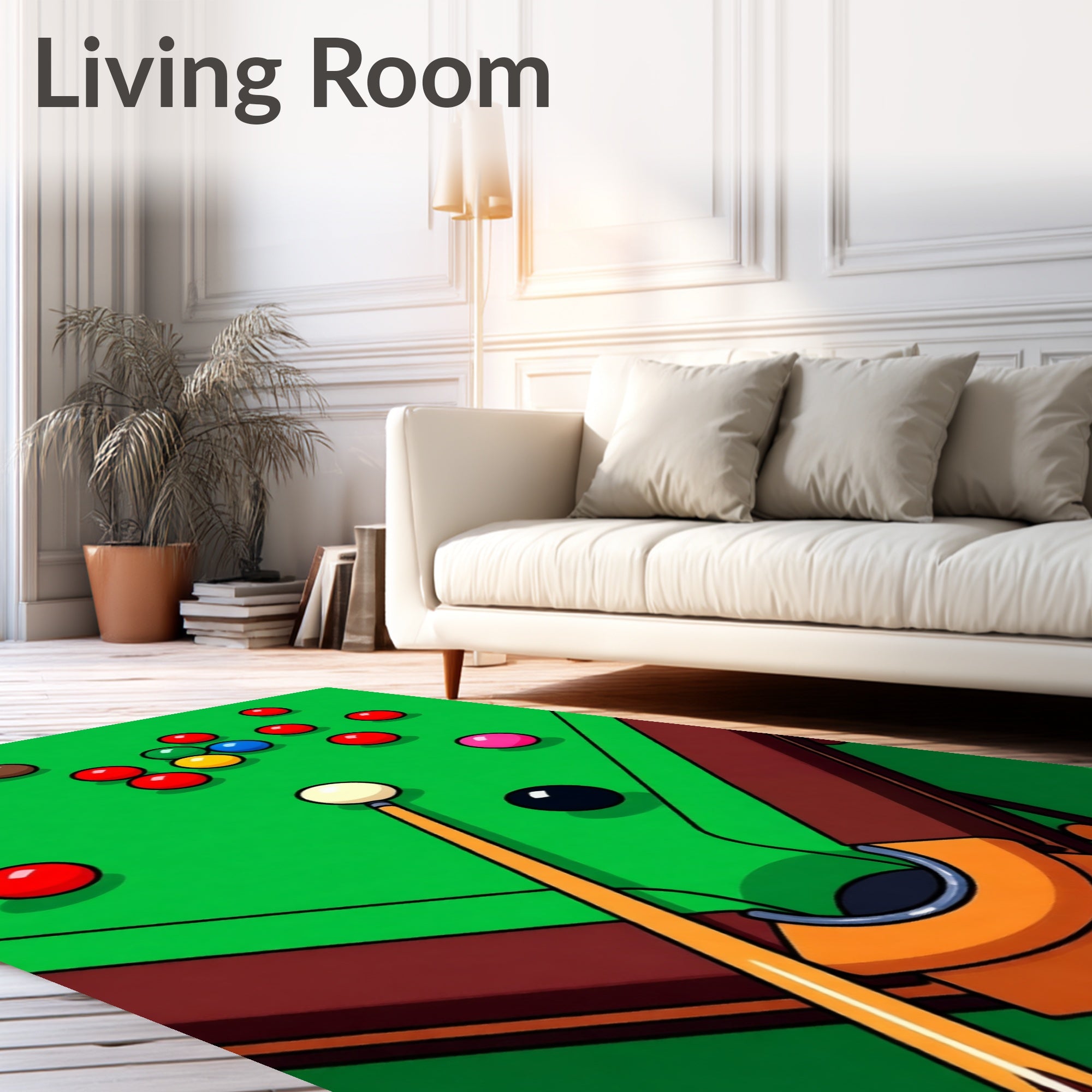 Ultra Soft Area Rug, Non Slip, Stain Resistant, Washable Area Rugs for Living Room, Bedroom, Snooker Table Balls Cue Stick Motif(green) Overview: