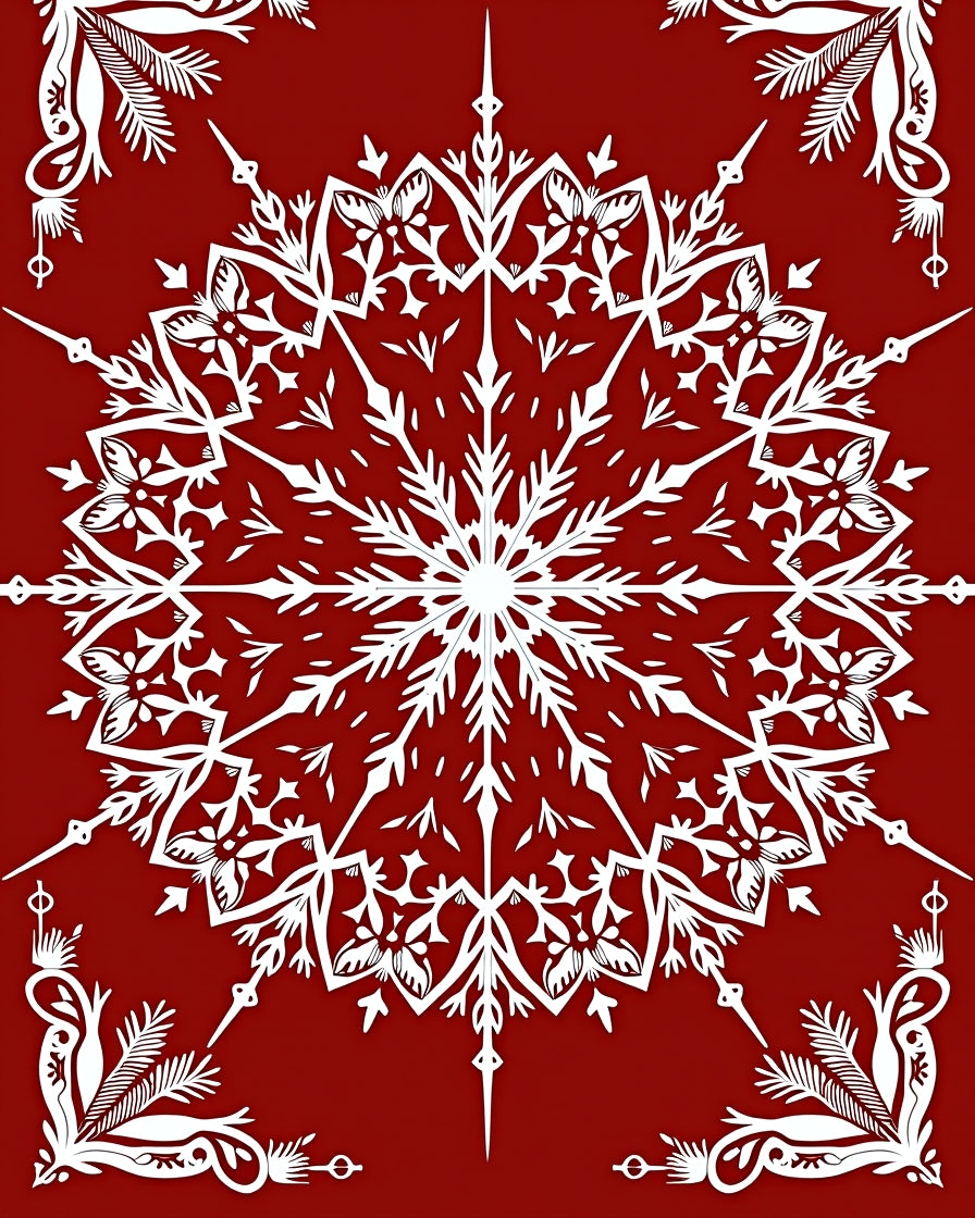 Snowflake Area with Intricate Winter Motifs(Red)