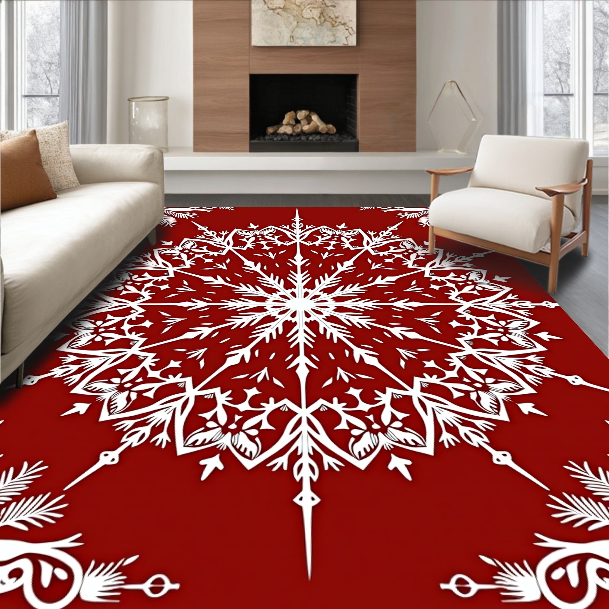 Ultra Soft Area Rug, Non Slip, Stain Resistant, Washable Area Rugs for Living Room, Bedroom, Snowflake Area with Intricate Winter Motifs(Red) Overview: