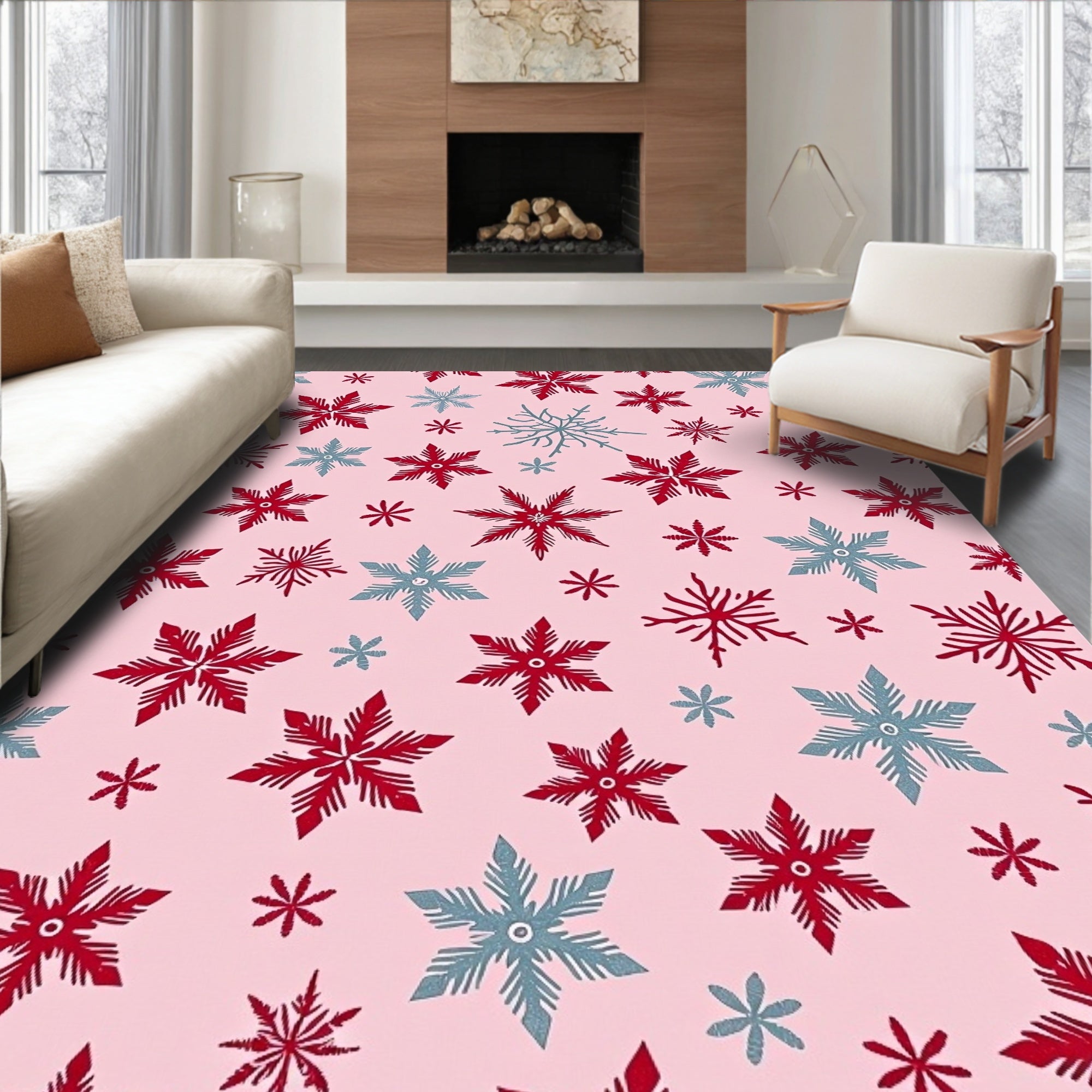 Ultra Soft Area Rug, Non Slip, Stain Resistant, Washable Area Rugs for Living Room, Bedroom, Snowflake Crystalline Winter Holiday Festive Area(Pink) Overview:
