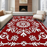 Ultra Soft Area Rug, Non Slip, Stain Resistant, Washable Area Rugs for Living Room, Bedroom, Snowflake Holiday Festive Low Pile Boho Design(Red) Overview: