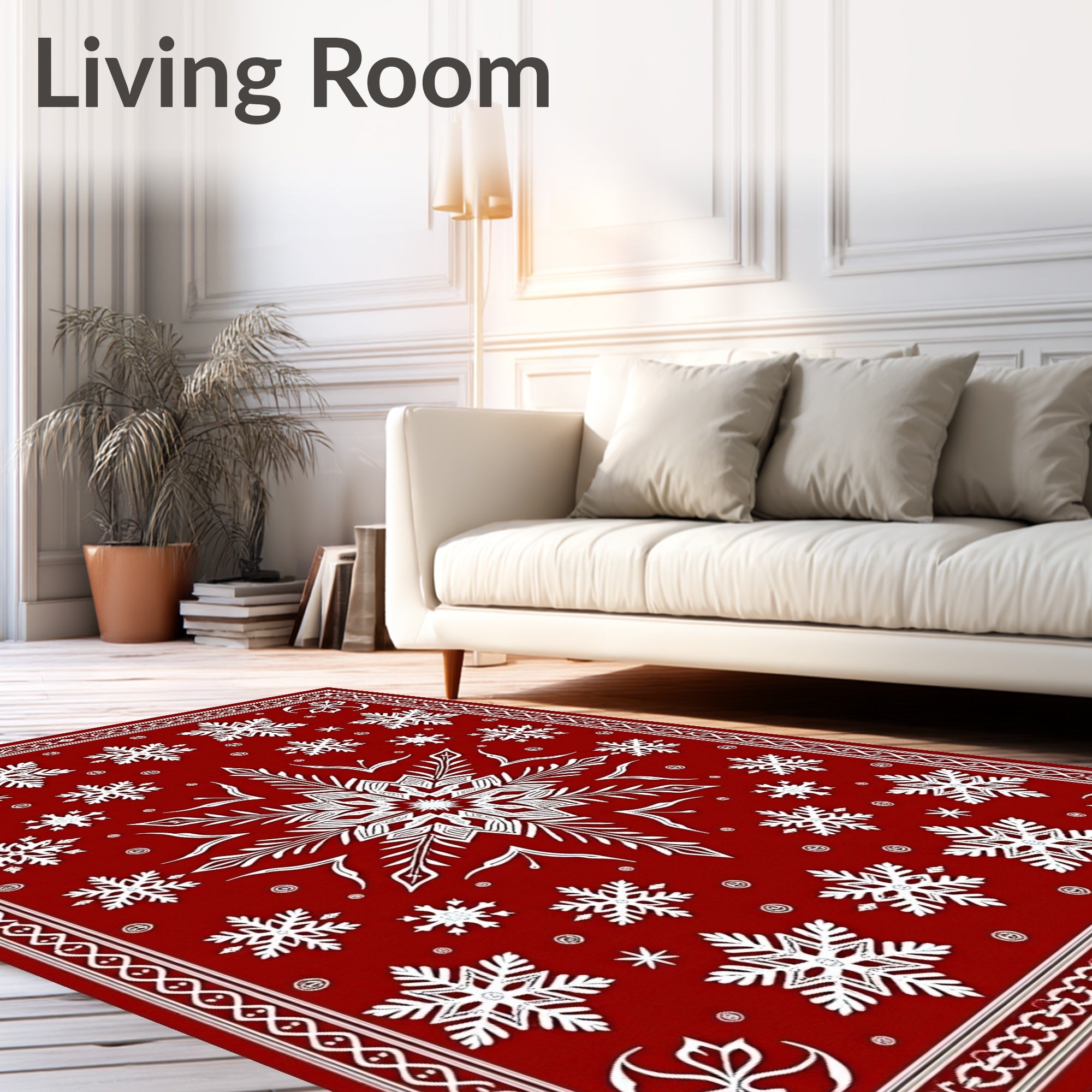 Ultra Soft Area Rug, Non Slip, Stain Resistant, Washable Area Rugs for Living Room, Bedroom, Snowflake Medallion Design Anti Slip Holiday Modern Style(Red) Overview: