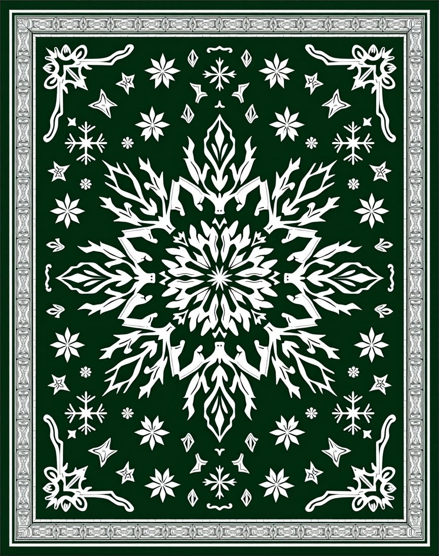 Snowflake Medallion Design Plush Floor Covering with Winter Crystalline(Green)