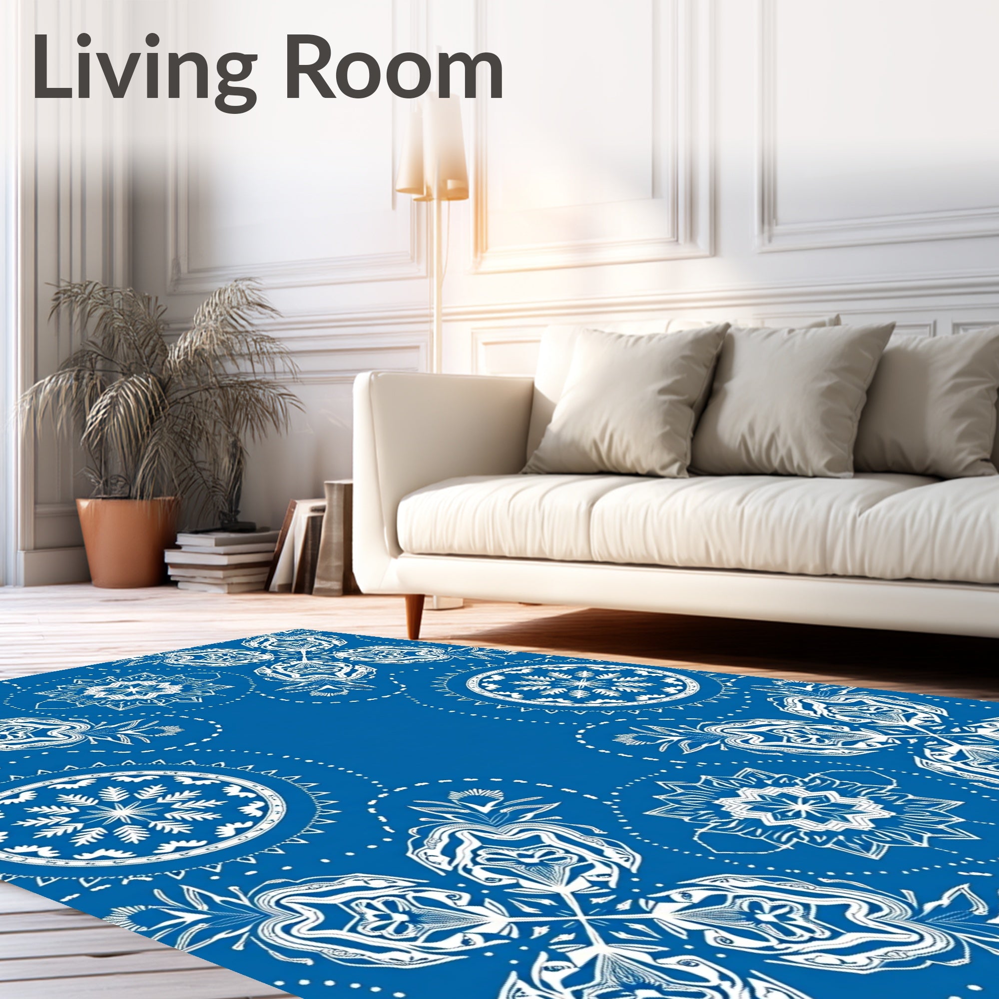 Ultra Soft Area Rug, Non Slip, Stain Resistant, Washable Area Rugs for Living Room, Bedroom, Snowflake Medallion Winter Wonderland Decorative(Blue) Overview: