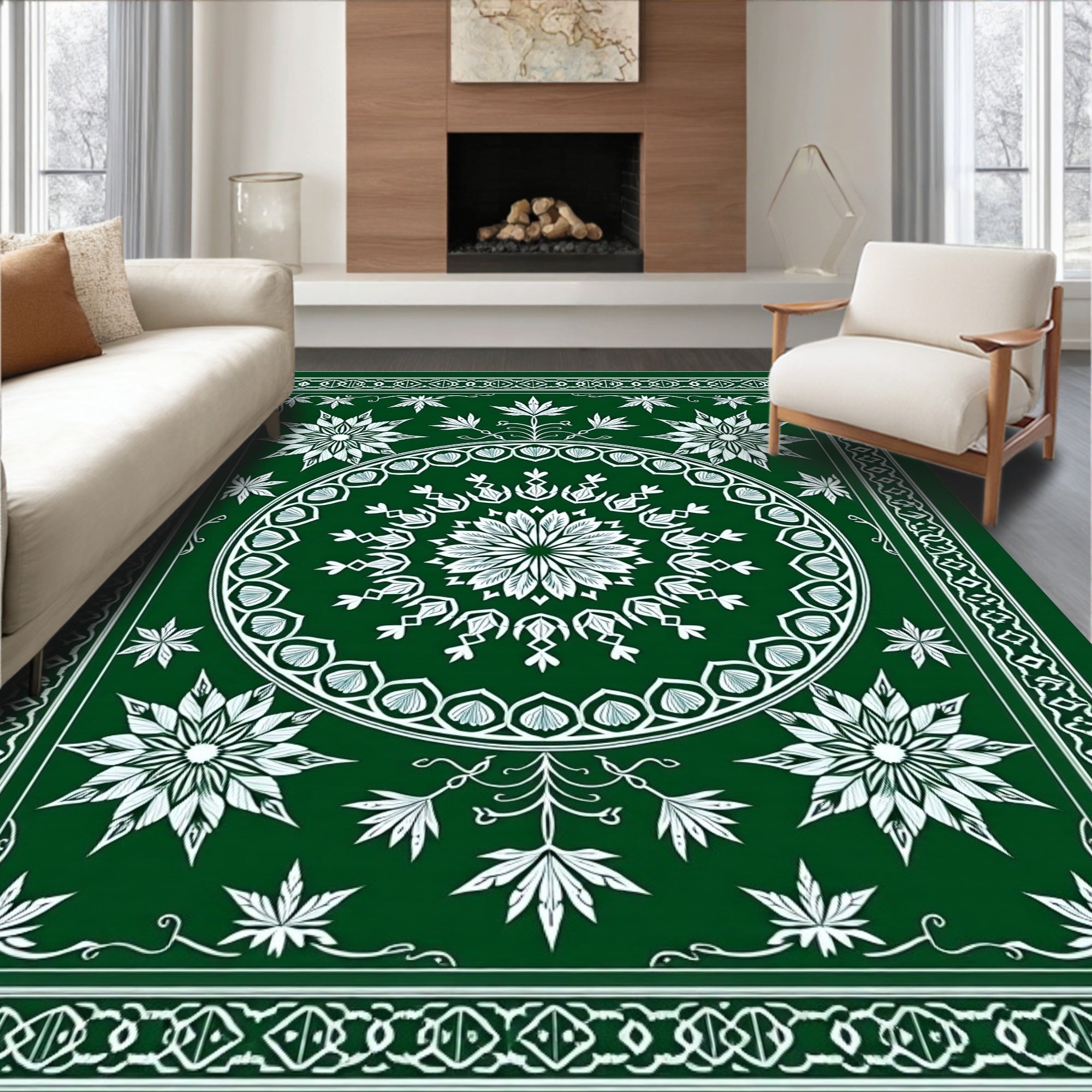 Ultra Soft Area Rug, Non Slip, Stain Resistant, Washable Area Rugs for Living Room, Bedroom, Snowflake Winter Wonderland Seasonal Area(Green) Overview: