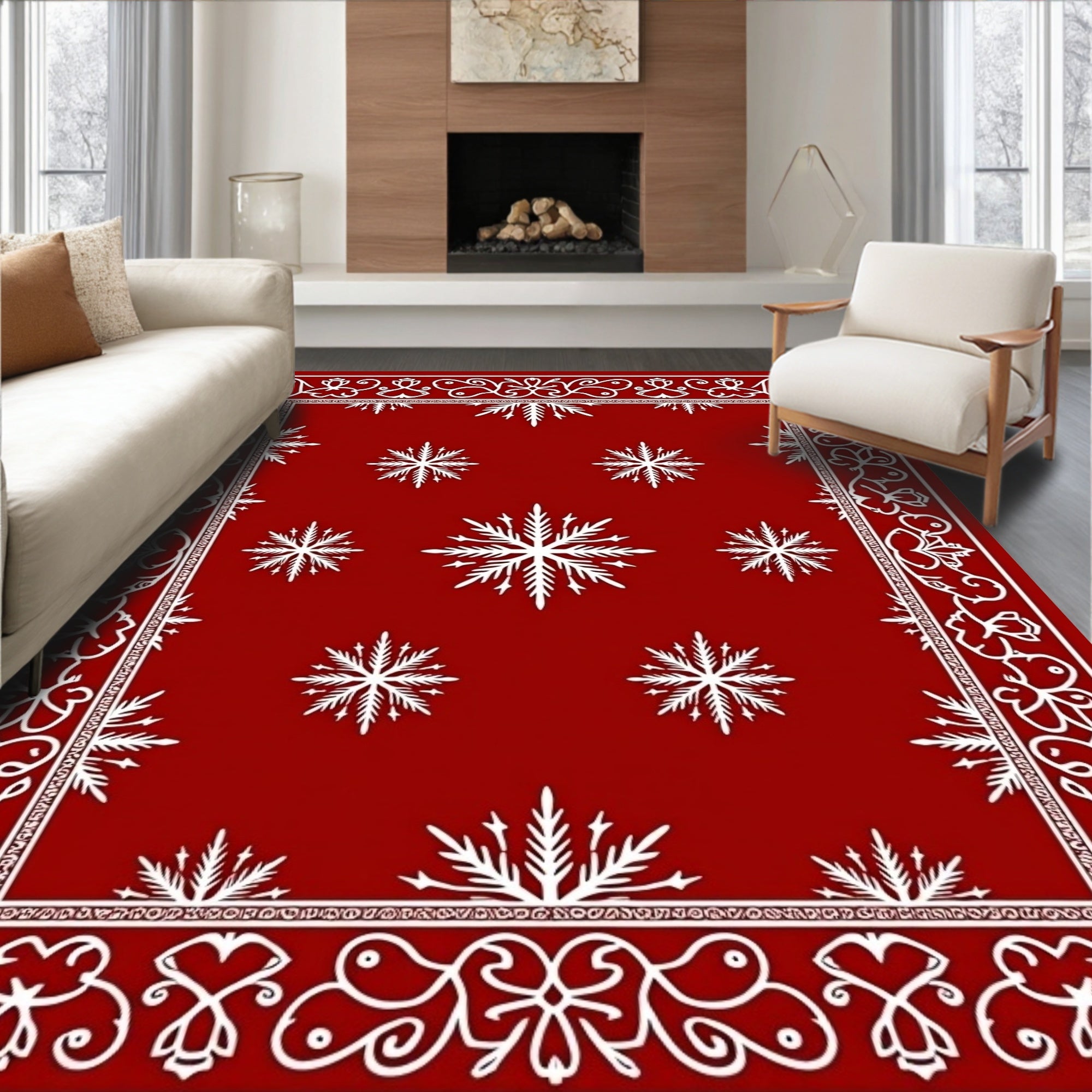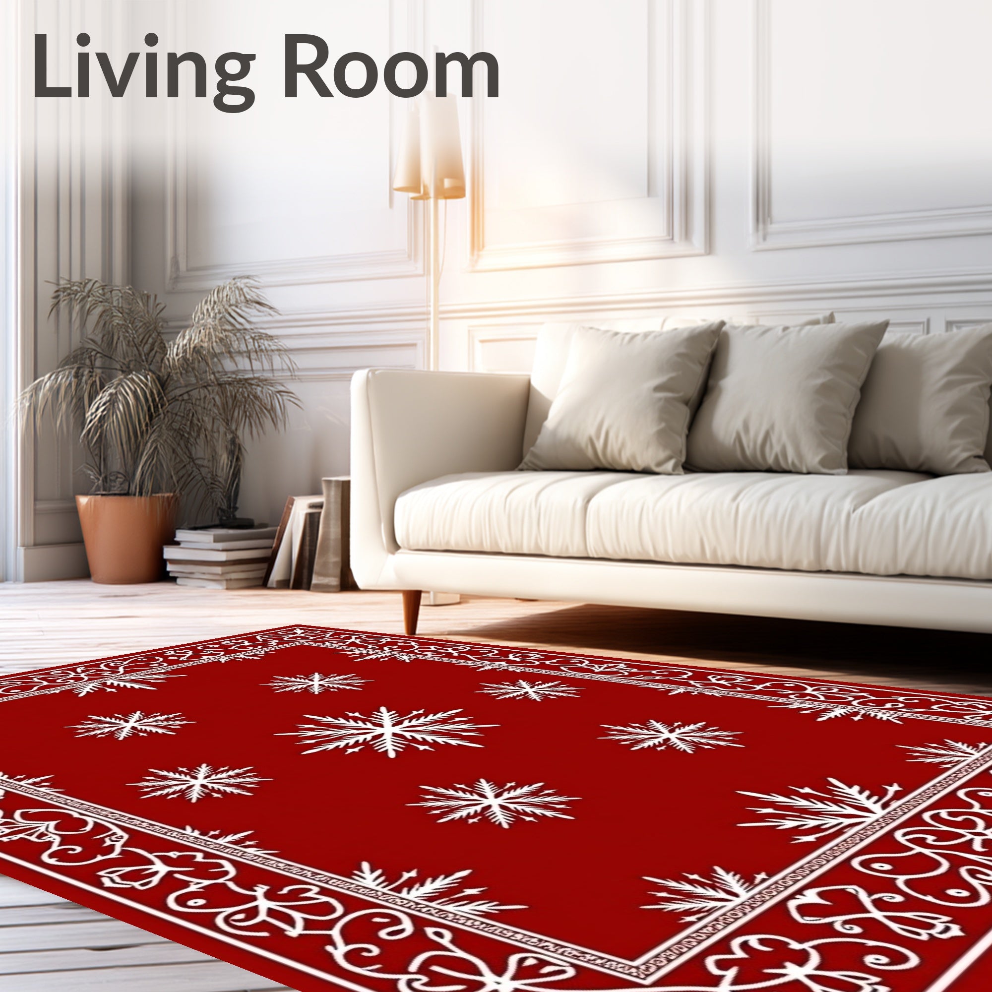 Ultra Soft Area Rug, Non Slip, Stain Resistant, Washable Area Rugs for Living Room, Bedroom, Snowy Jubilation Splendid Luxurious Sophisticated Touch(Red) Overview: