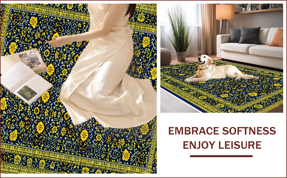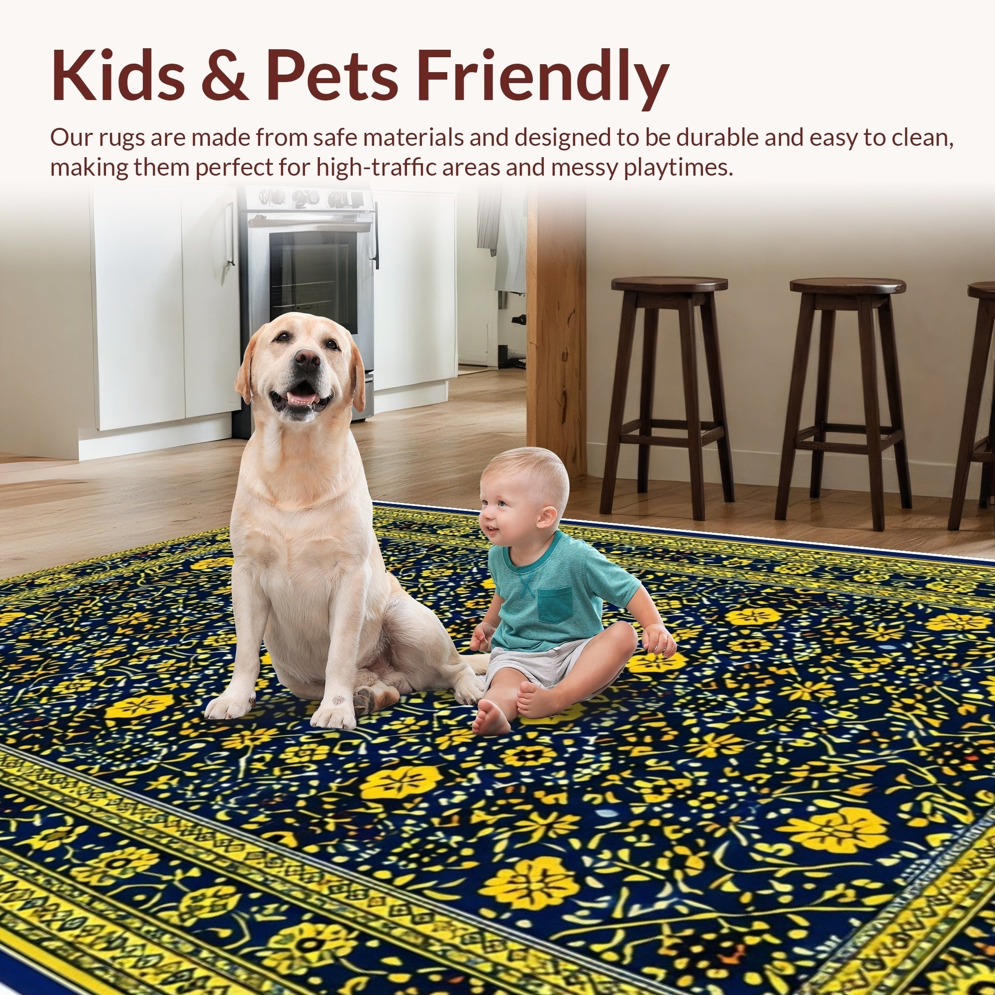 Ultra Soft Area Rug, Non Slip, Stain Resistant, Washable Area Rugs for Living Room, Bedroom, Sofia Collection Floral(Blue) Overview: