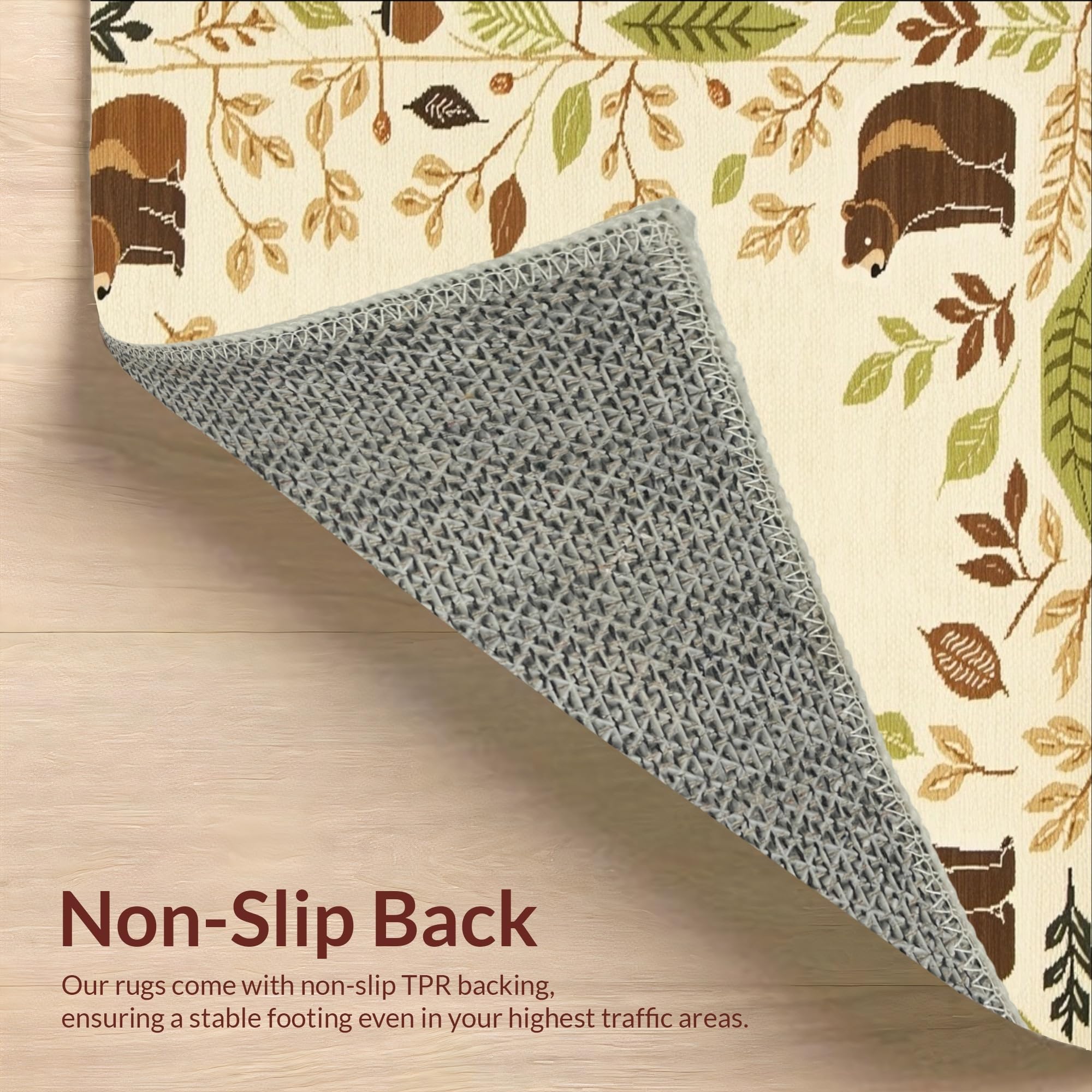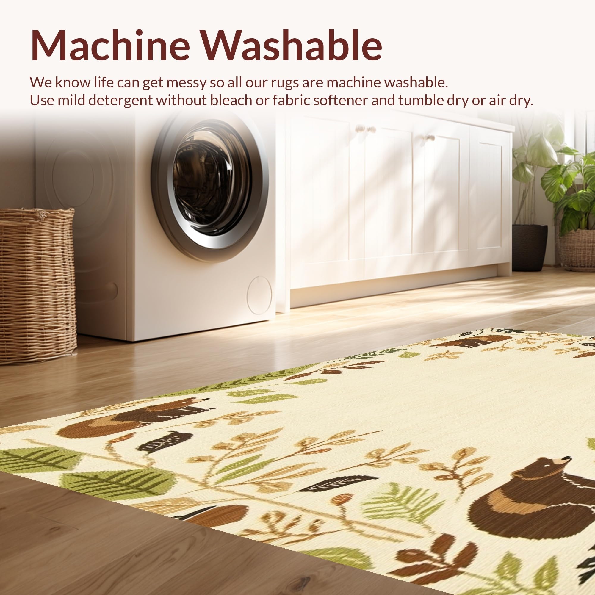 Ultra Soft Area Rug, Non Slip, Stain Resistant, Washable Area Rugs for Living Room, Bedroom, Soft Beige Nursery Rug Highlighting Playful Bear and Woodland Iconography(Beige) Overview: