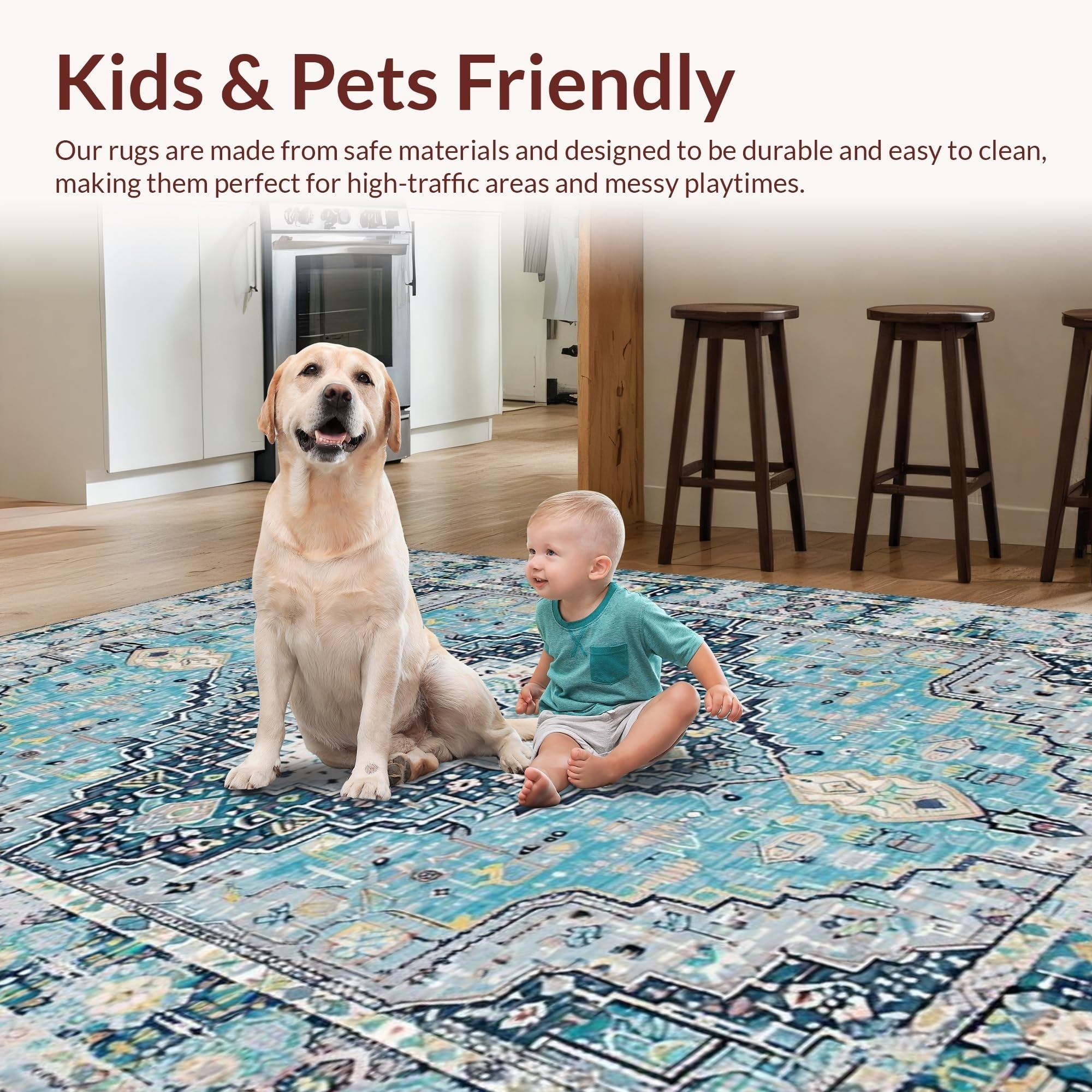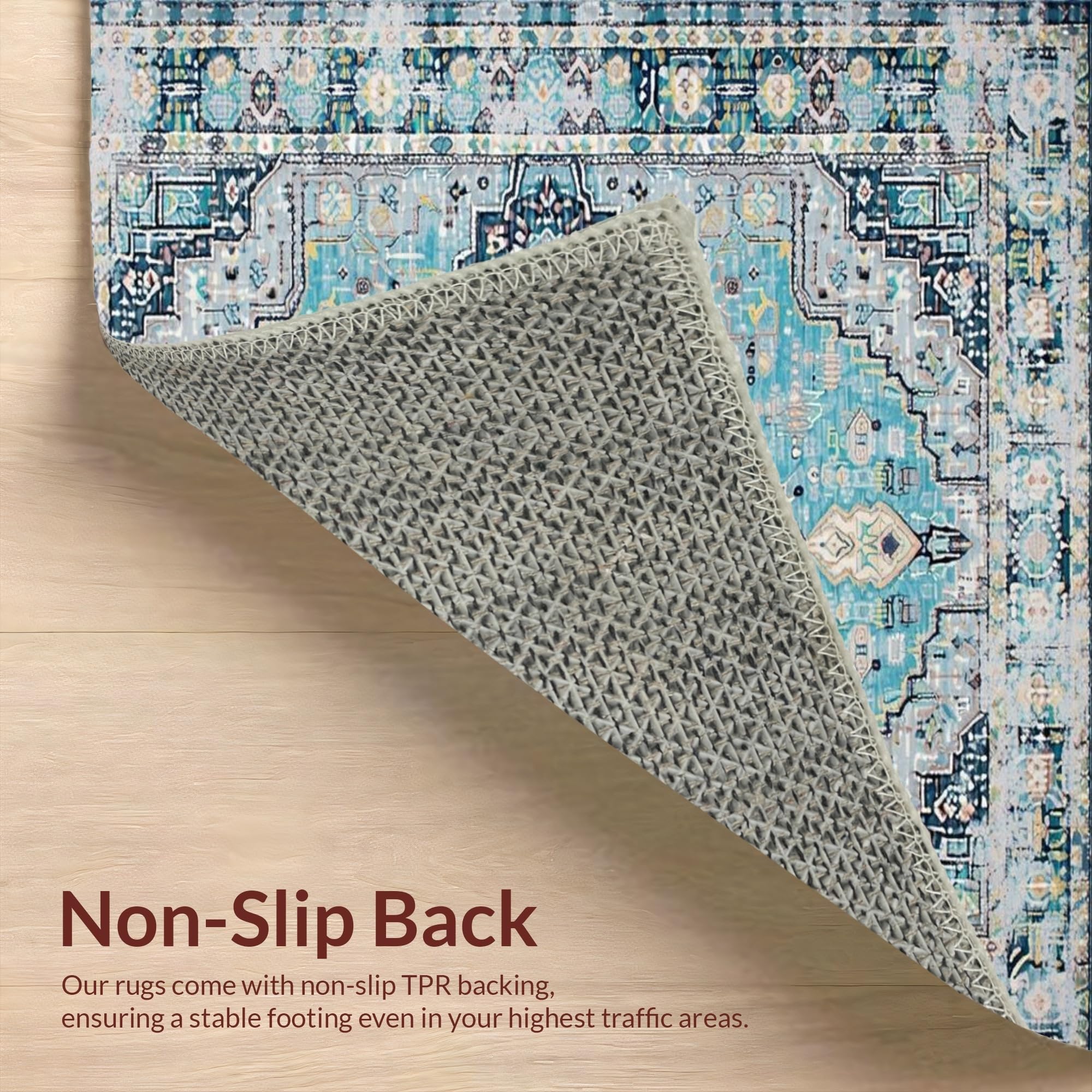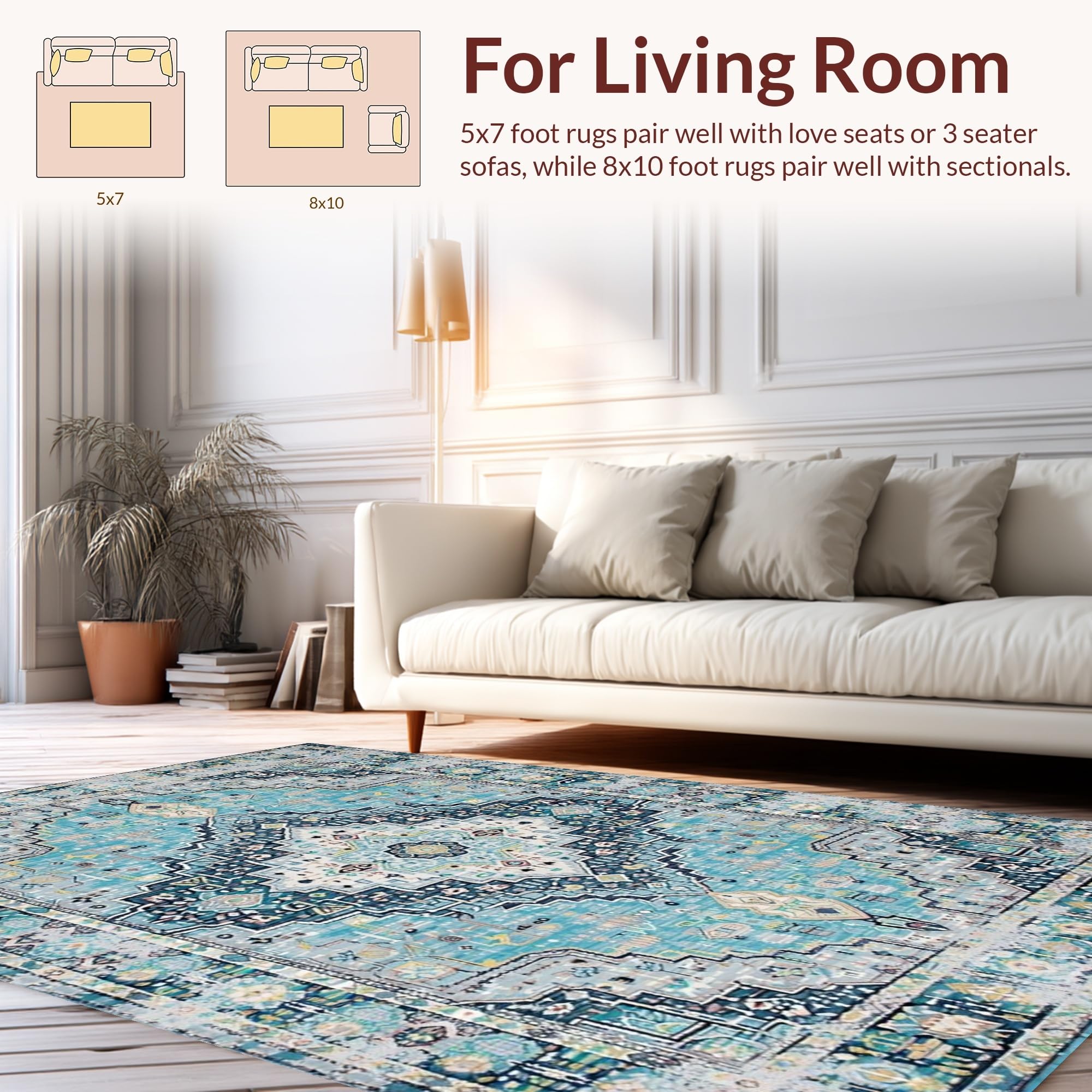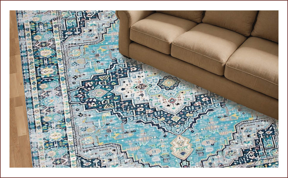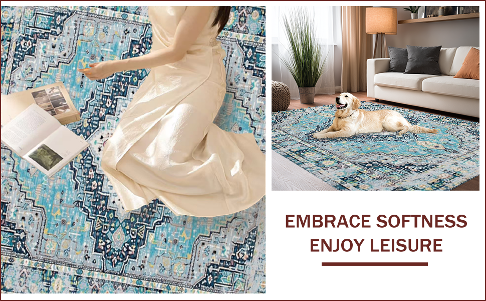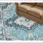 Ultra Soft Area Rug, Non Slip, Stain Resistant, Washable Area Rugs for Living Room, Bedroom, Soft Blue Abstract Graphic Motif(Blue) Overview: