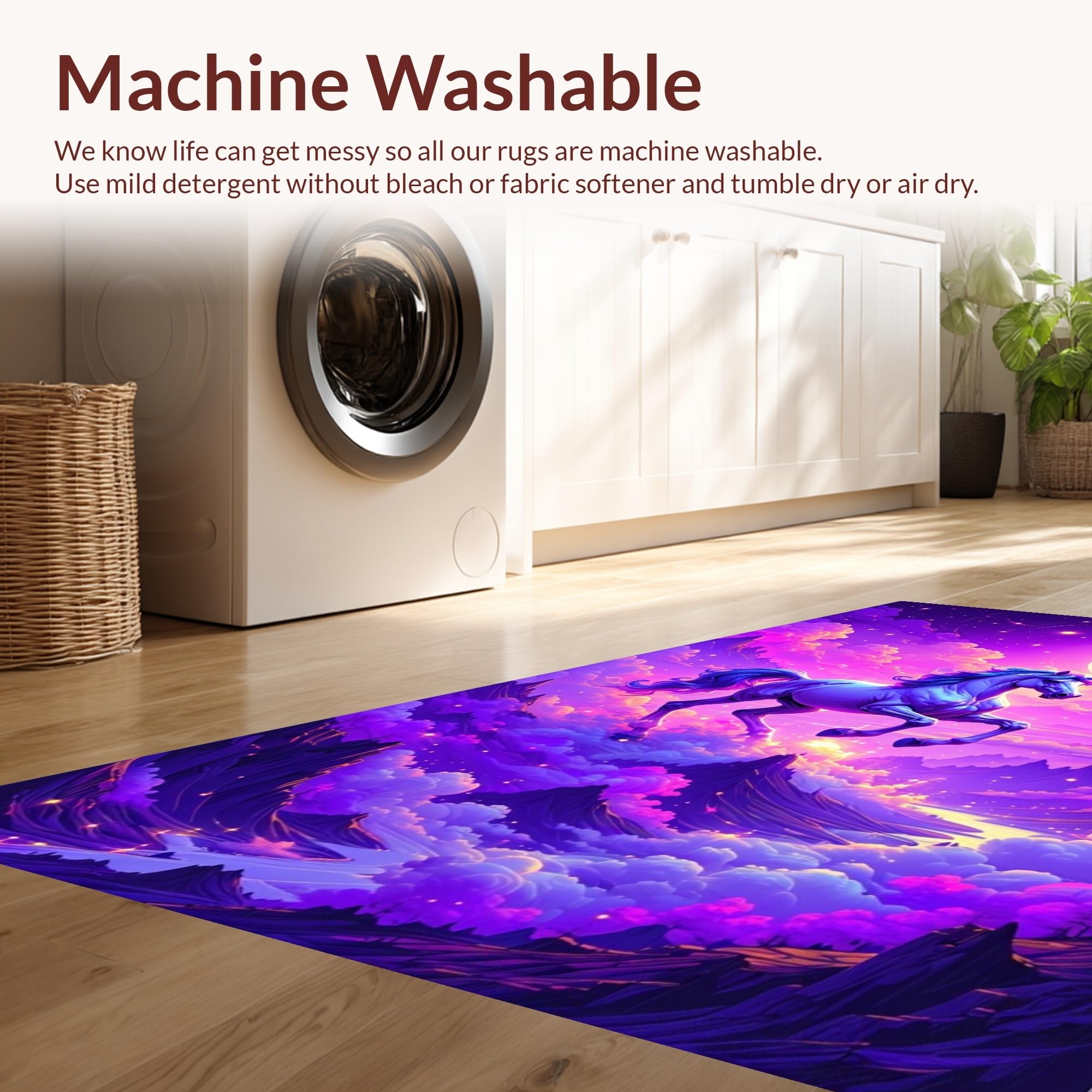 - Machine Washable: Our rugs can be easily thrown in the wash machine.