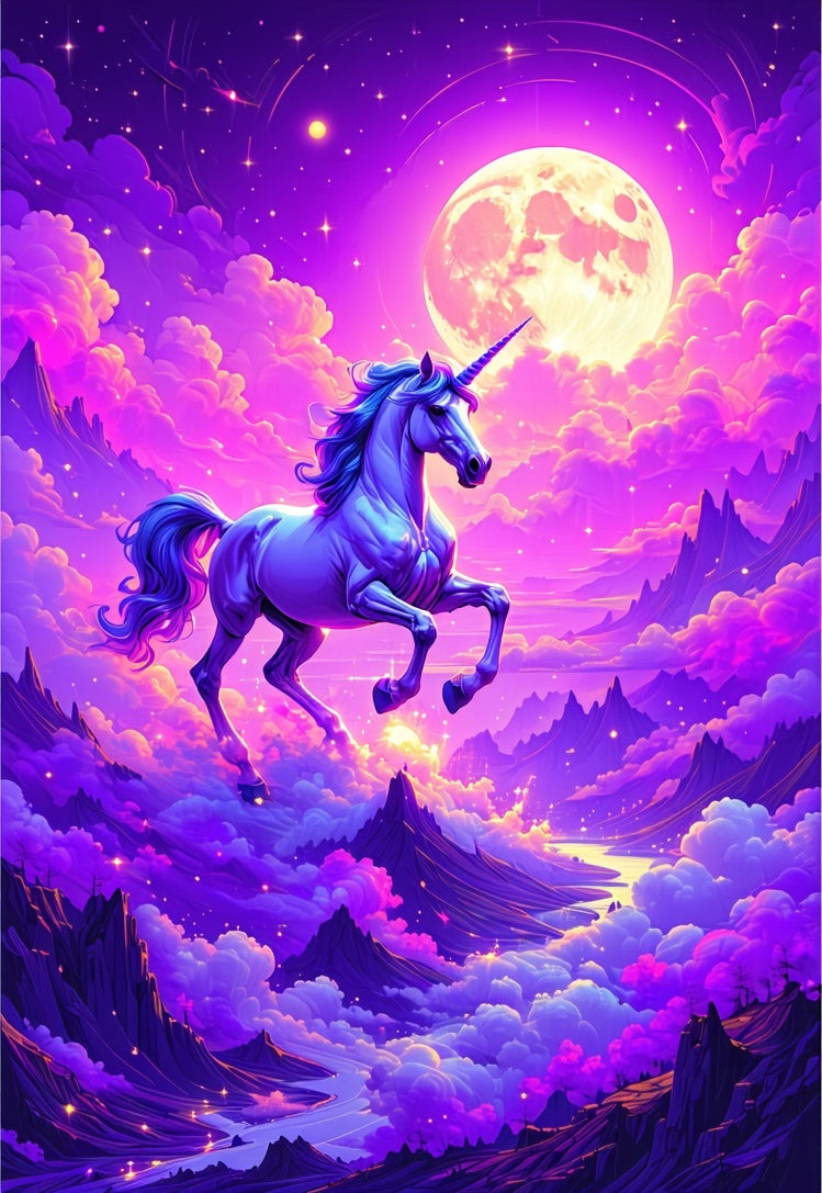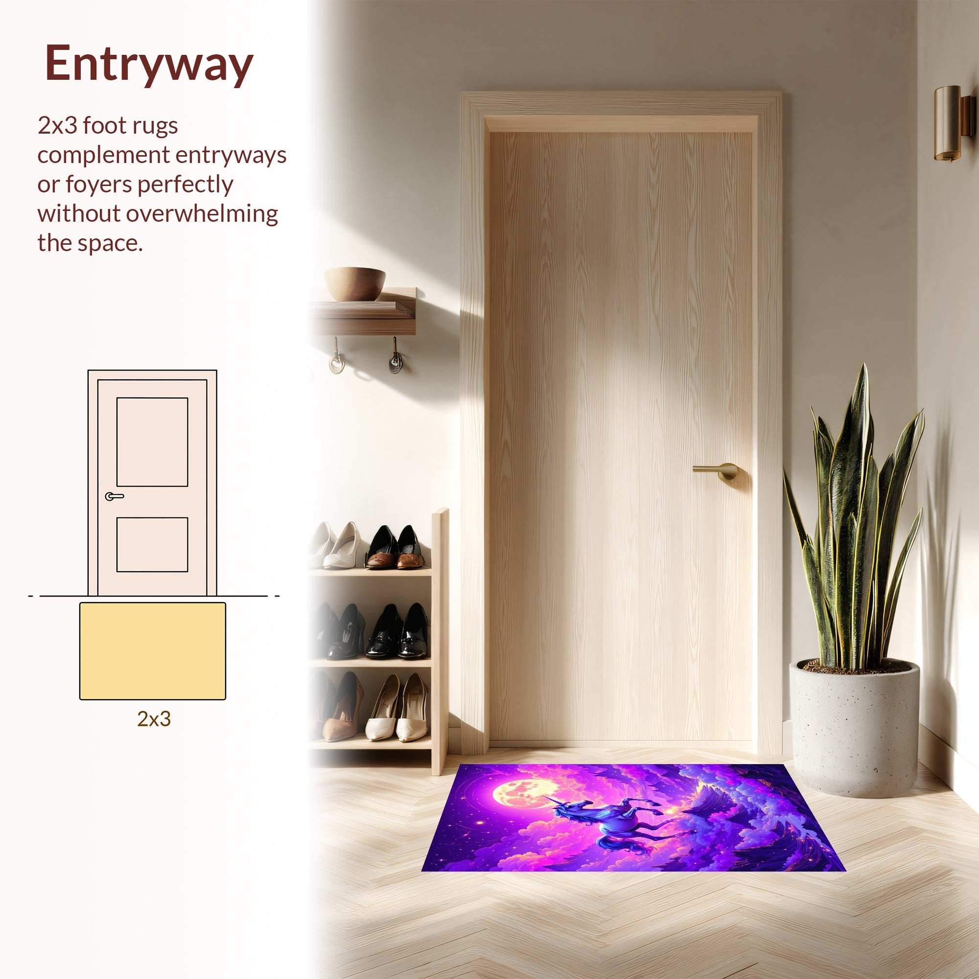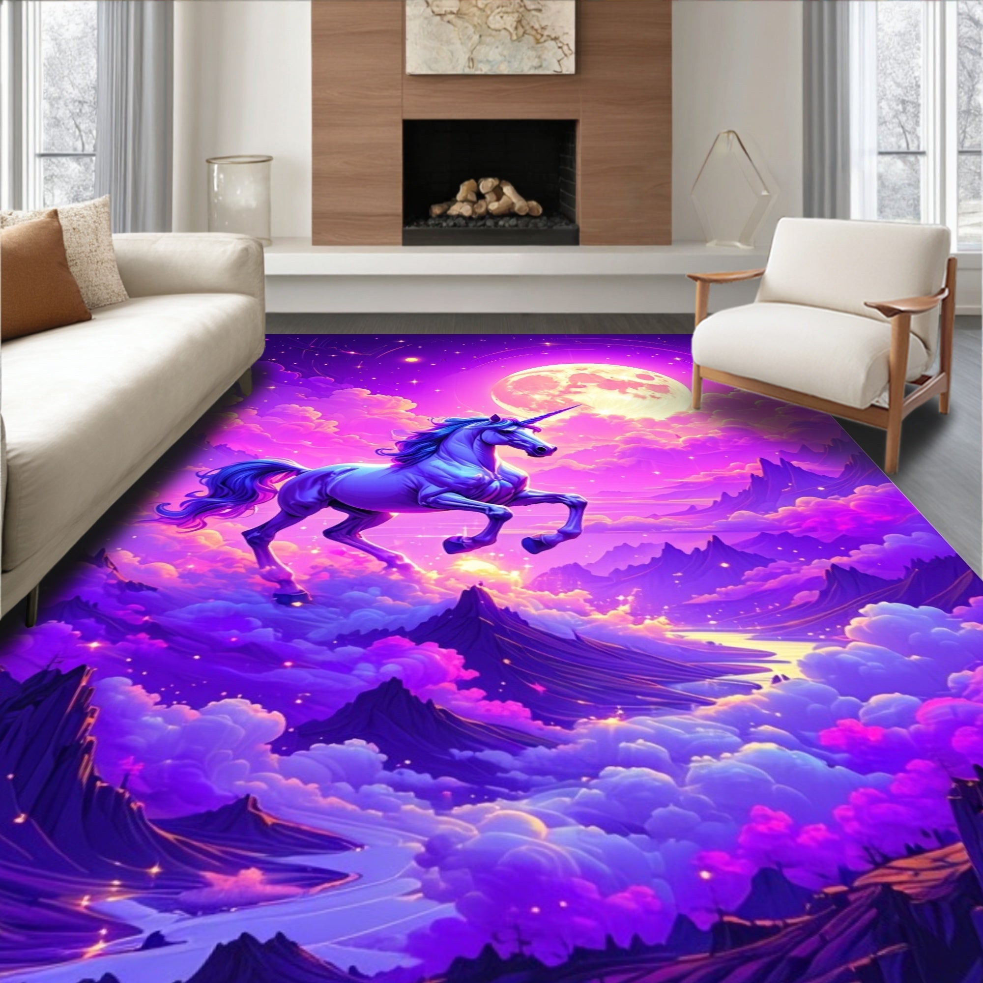Flatwoven High Traffic Area Rug, Dreamlike Unicorn Visuals, Non Slip, Stain Resistant, Washable Area Rugs for Living Room, Bedroom (Purple) Overview: