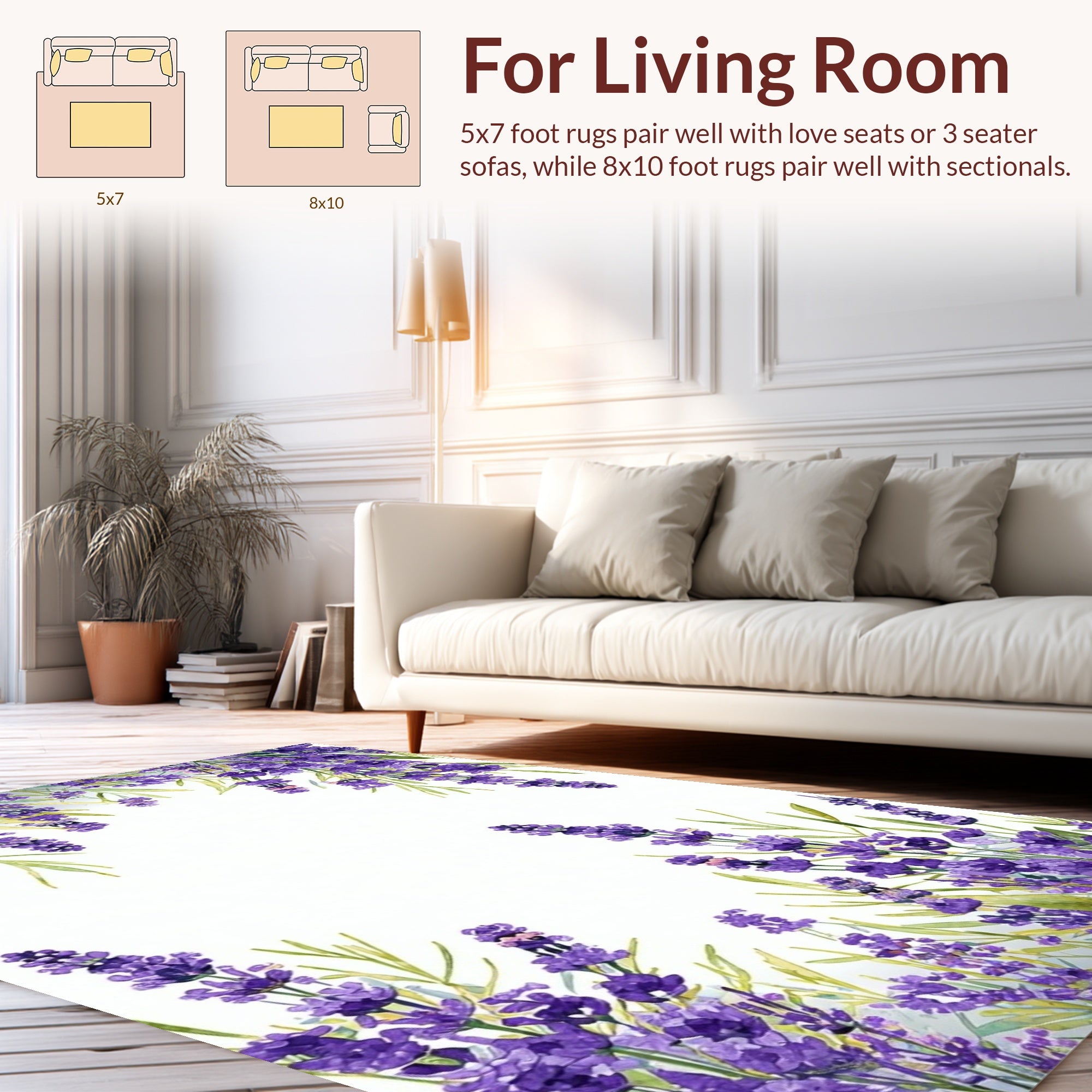 Flatwoven High Traffic Area Rug, Dreamy Floral Elegance, Non Slip, Stain Resistant, Washable Area Rugs for Living Room, Bedroom (Purple) Overview: