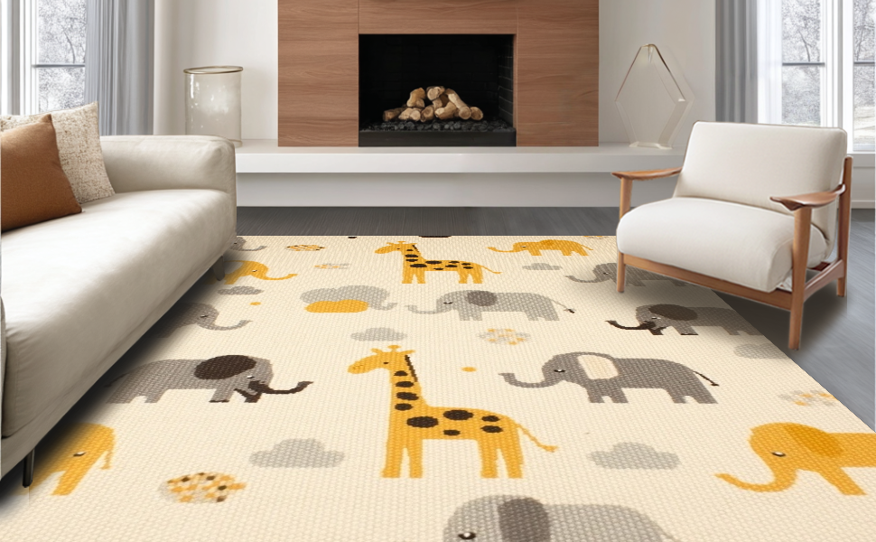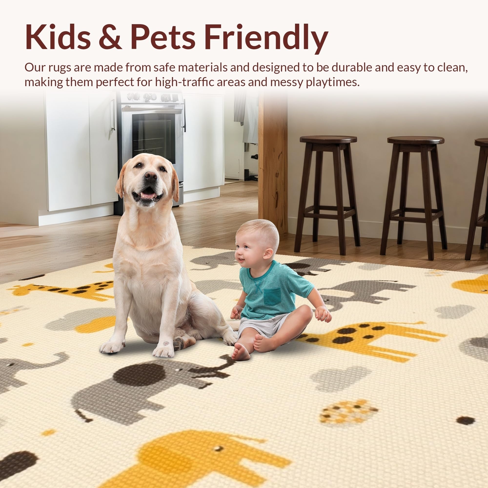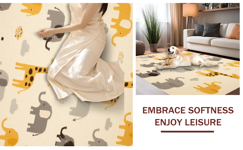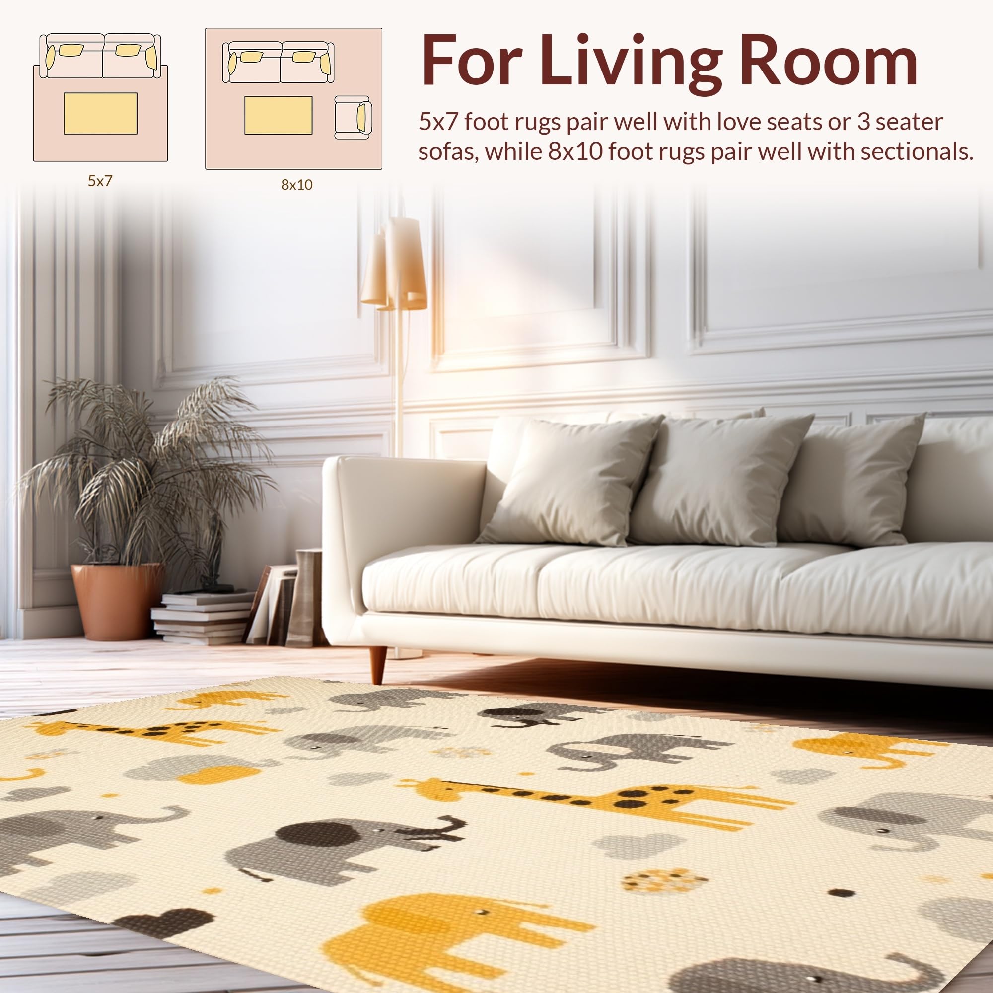 Ultra Soft Area Rug, Non Slip, Stain Resistant, Washable Area Rugs for Living Room, Bedroom, Soft Earthy Tones with Cute Creatures(Beige) Overview: