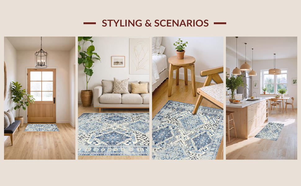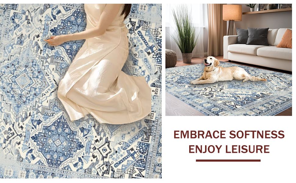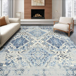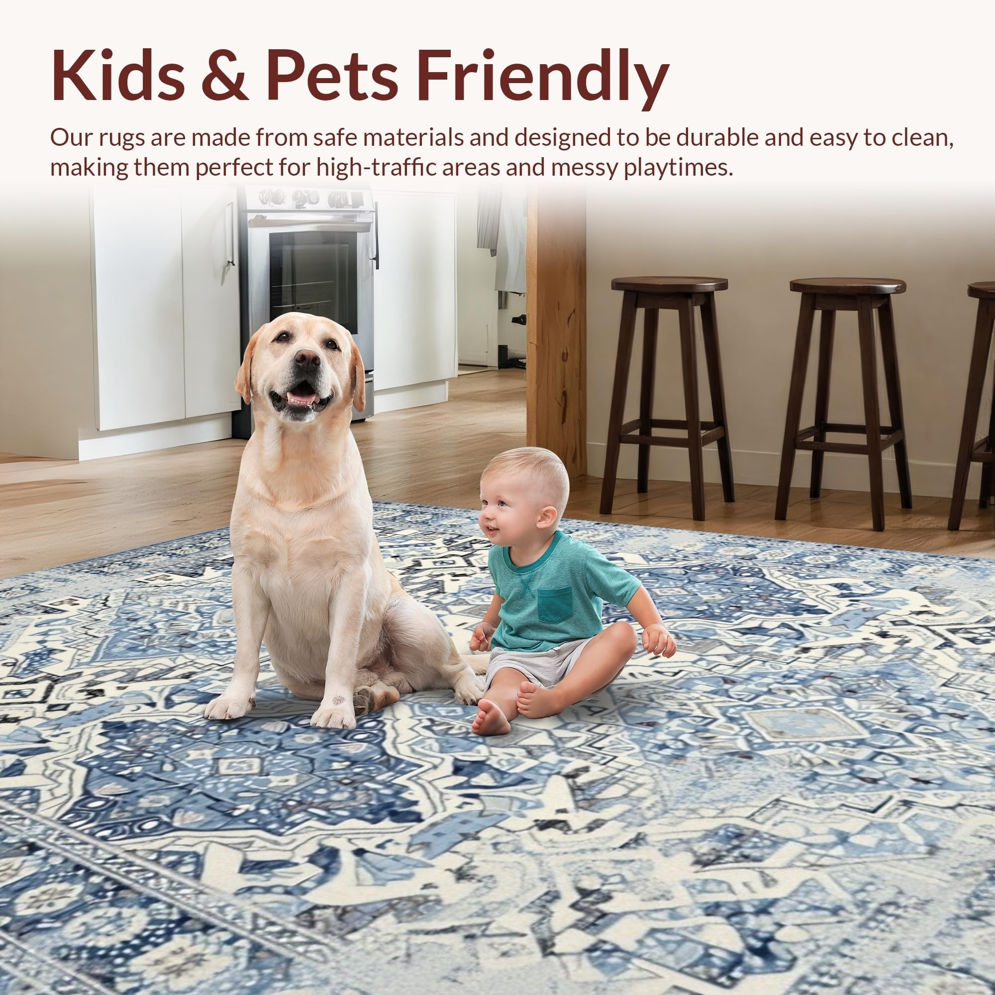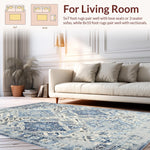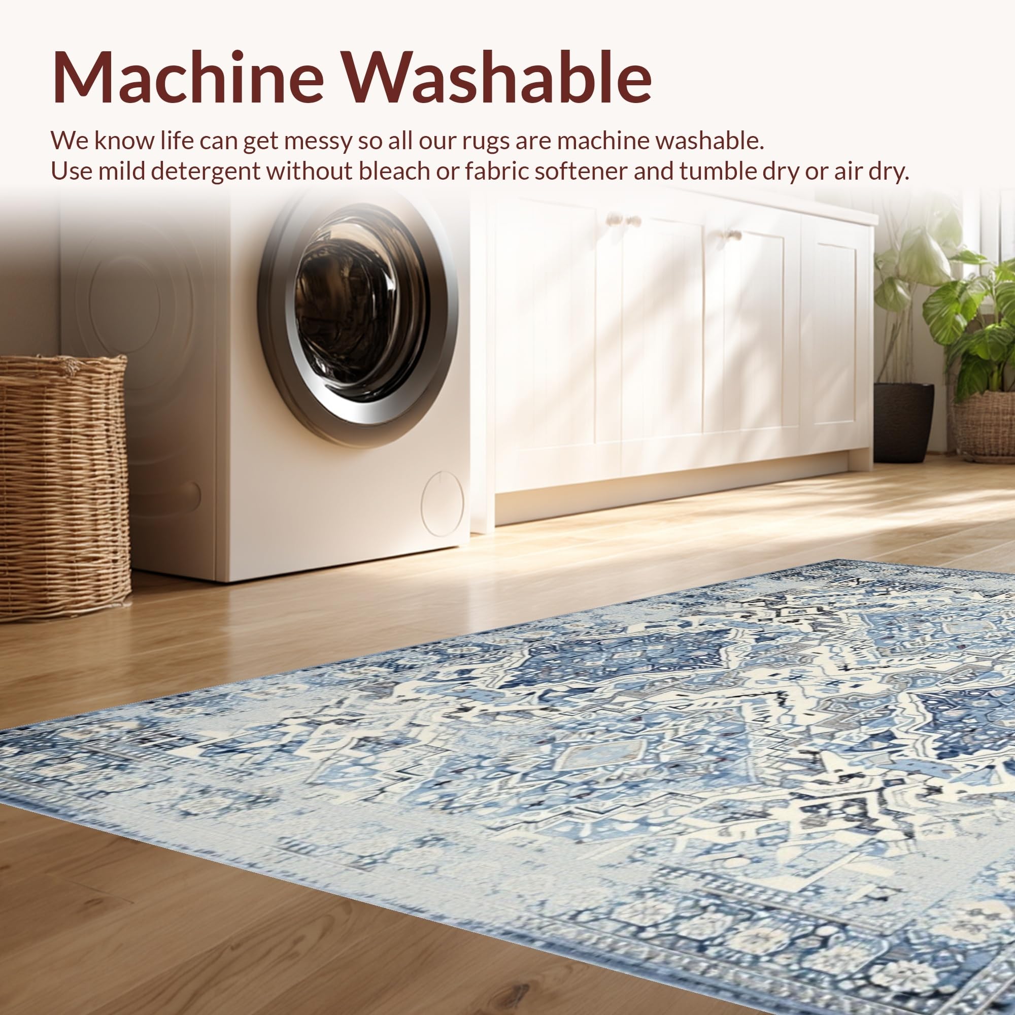 Ultra Soft Area Rug, Non Slip, Stain Resistant, Washable Area Rugs for Living Room, Bedroom, Soft Ivory Distressed Medallion(Blue) Overview: