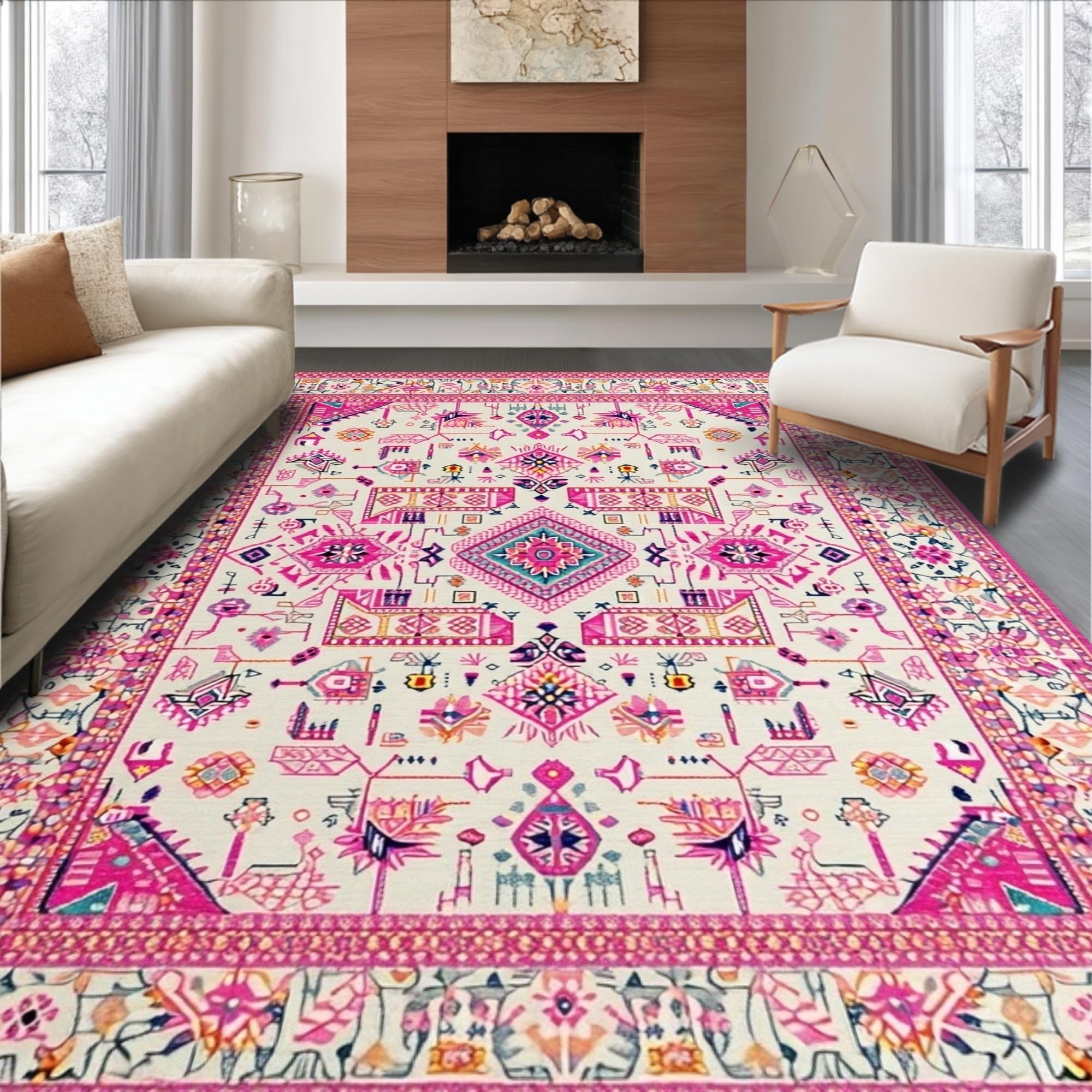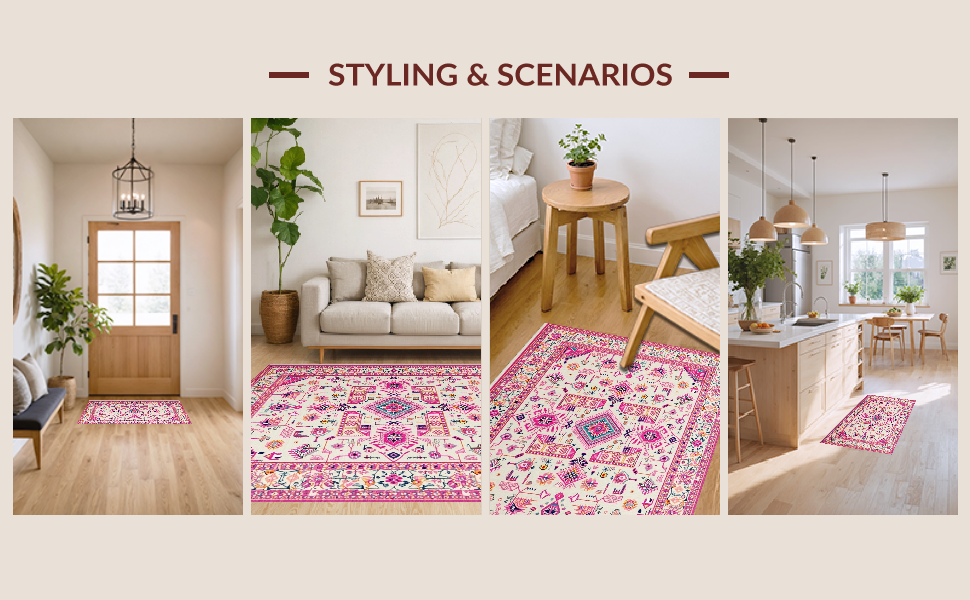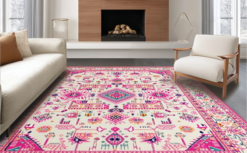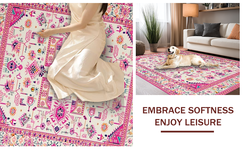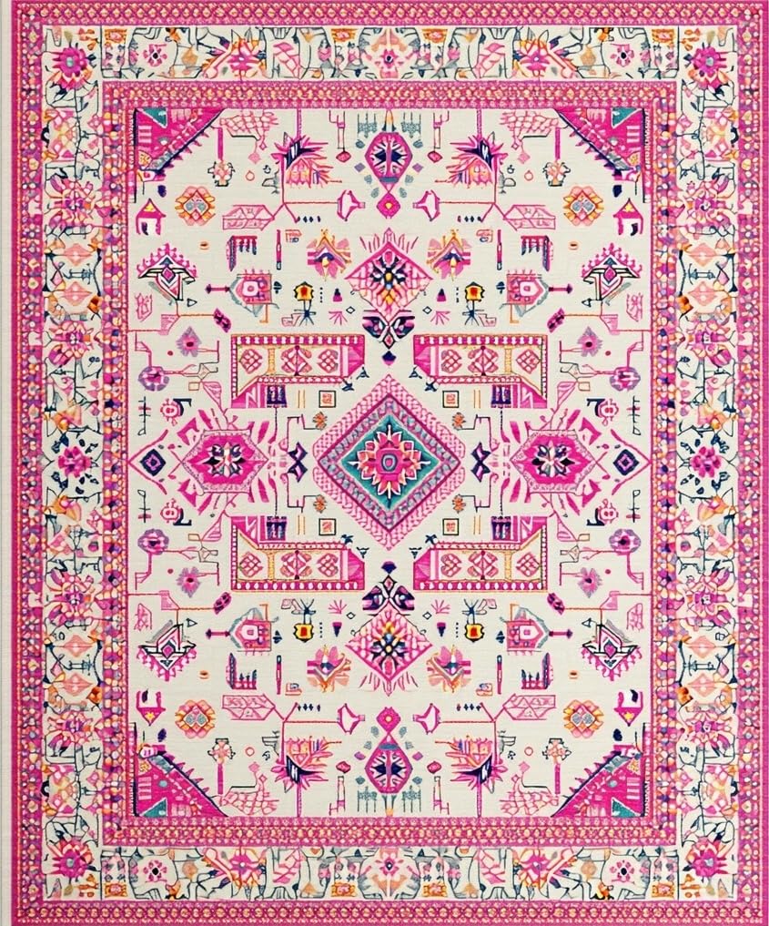 Ultra Soft Area Rug, Non Slip, Stain Resistant, Washable Area Rugs for Living Room, Bedroom, Soft Ivory Tiled Textures(Pink) Overview: