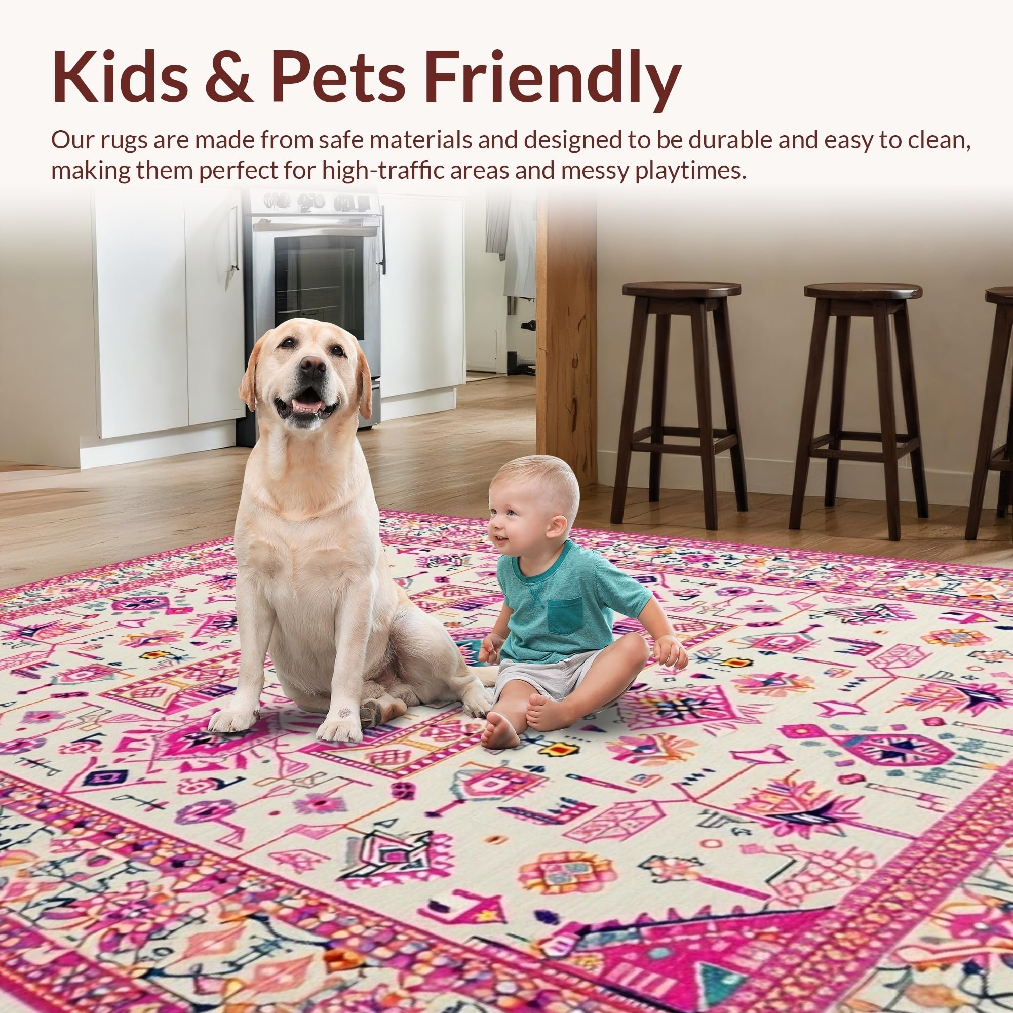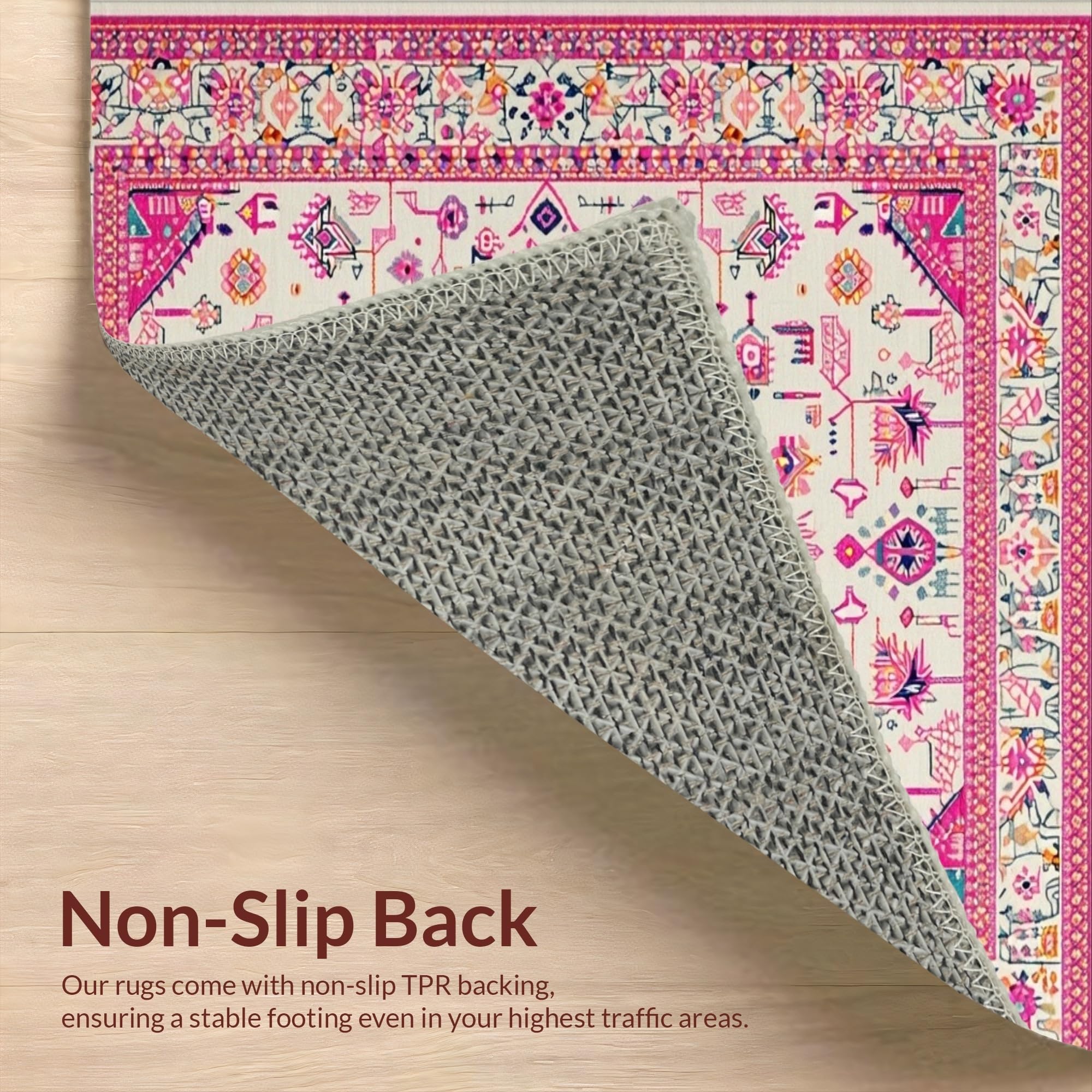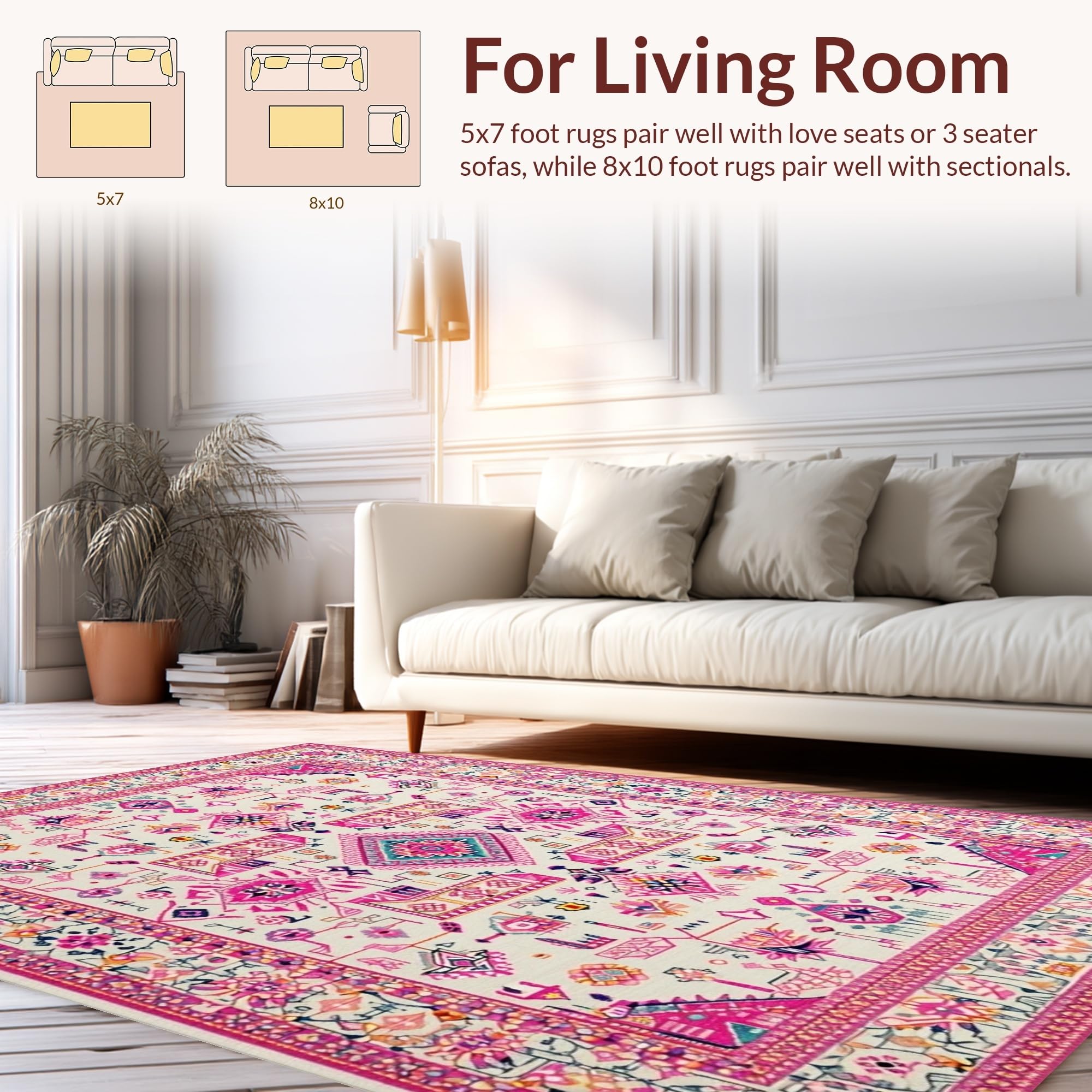 Ultra Soft Area Rug, Non Slip, Stain Resistant, Washable Area Rugs for Living Room, Bedroom, Soft Ivory Tiled Textures(Pink) Overview: