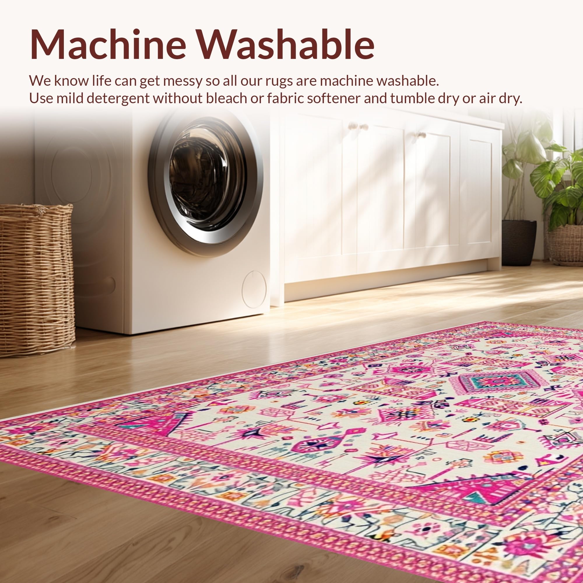 - Machine Washable: Our rugs can be easily thrown in the wash machine.